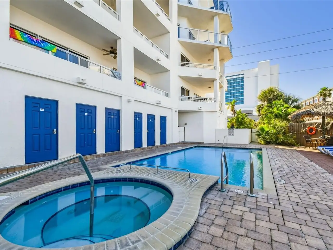 • Panoramic views of the heated pool and spa