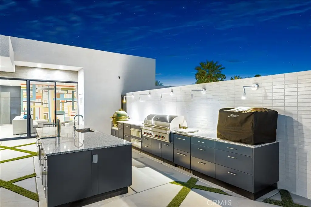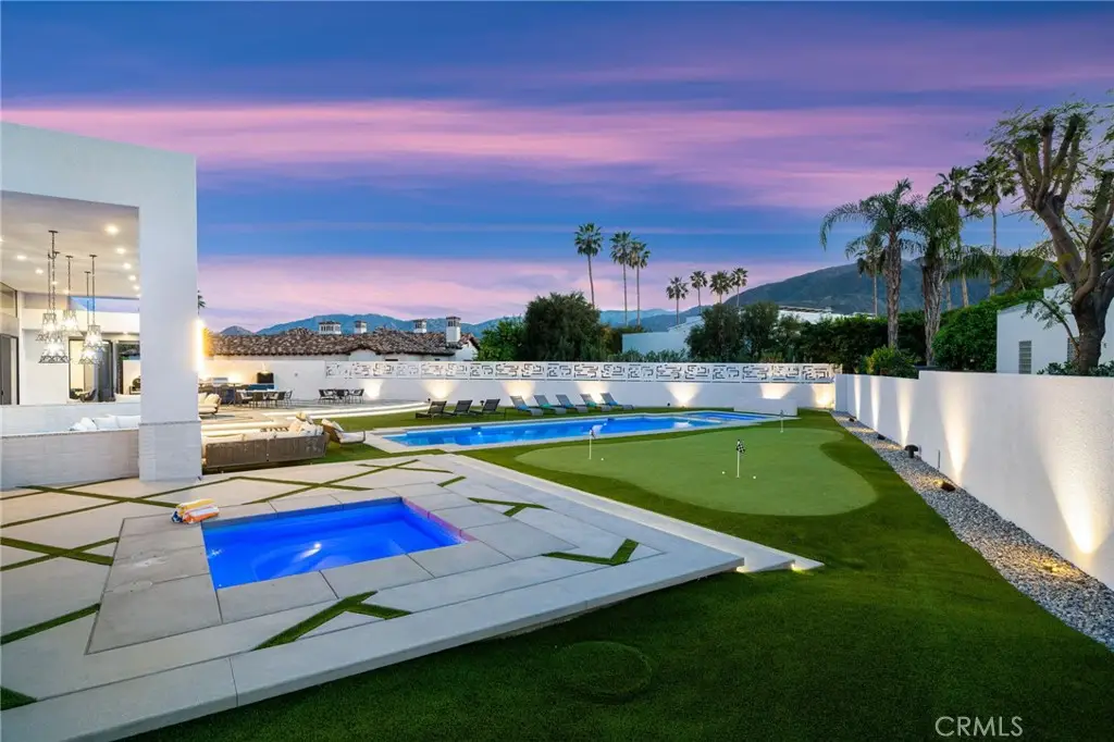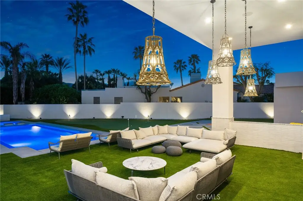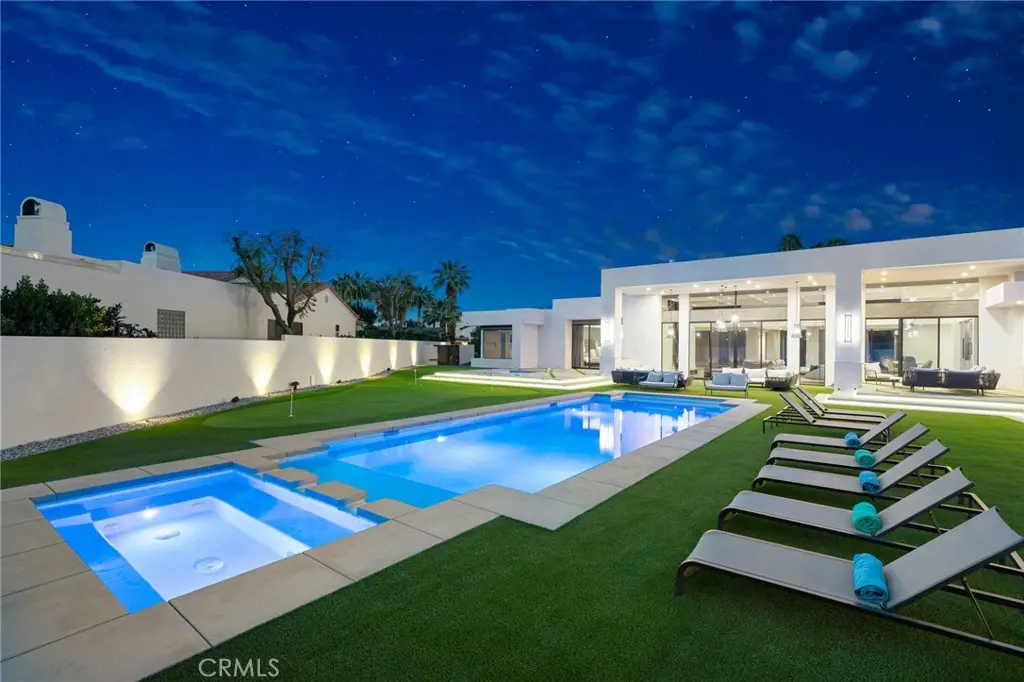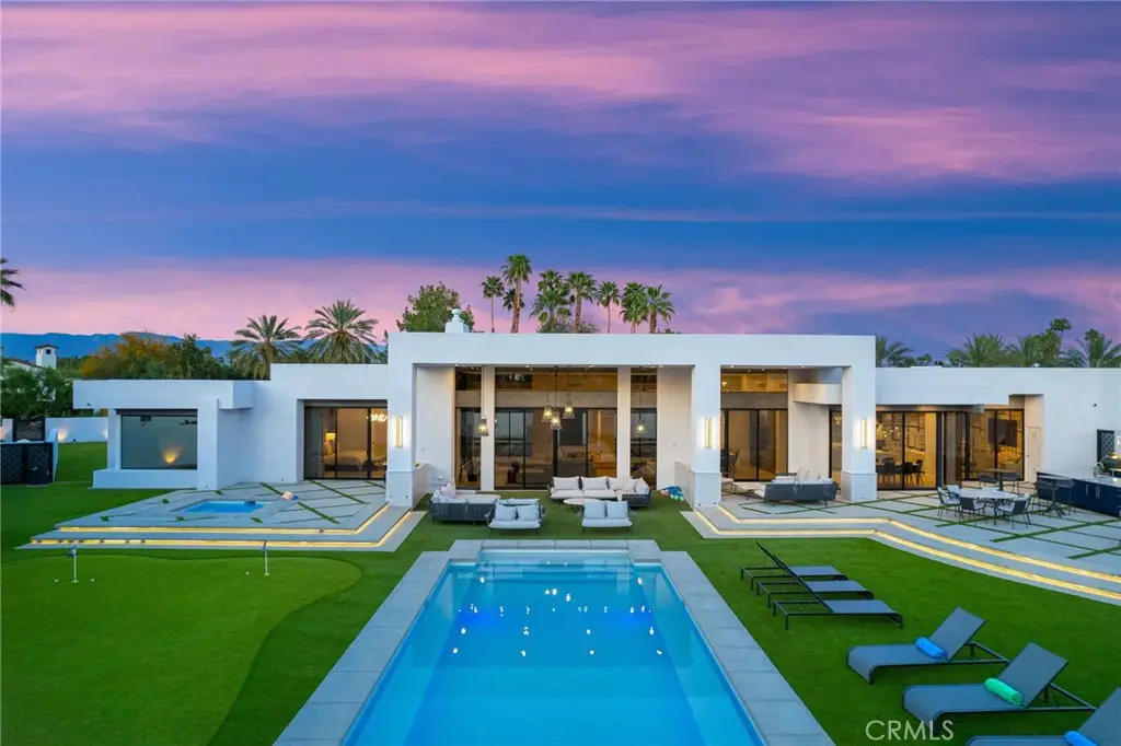 Modern Luxury in Prestigious Clancy Lane Estates Step into the epitome of refined living in this exquisite FULLY FURNISHED estate located within the coveted Clancy Lane Estates of Rancho Mirage. A harmonious blend of modern luxury and contemporary design, this stunning home offers a seamless indoor-outdoor lifestyle, curated for the most discerning buyer. As you enter, you're welcomed by an expansive open-concept living space, adorned with sophisticated finishes and designer touches throughout. At the heart of the home lies a custom-crafted gourmet kitchen, a true haven for culinary enthusiasts. Featuring a Lacanche oven, custom range hood, Wolf and Sub-Zero appliances, bespoke cabinetry, and an oversized island, this space is as functional as it is beautiful. Adjacent to the kitchen, a stylish den offers the perfect setting for intimate gatherings, while the formal dining room, complete with a built-in bar, flows effortlessly into a grand living room highlighted by a dramatic floor-to-ceiling marble fireplace and a suspended lounger designed for ultimate relaxation. Smart home living is at your fingertips with a state-of-the-art Control4 automation system managing lighting, audio/visual, climate, shades, and security. Additional features include surround sound, a new roof, OWNED SOLAR PANELS, and a Tesla Powerwall for energy efficiency. Walls of floor-to-ceiling glass create a seamless transition to the outdoors, revealing a resort-inspired backyard oasis. Enjoy al fresco dining and entertaining with a custom BBQ and pizza oven center, an ozone-treated pool and spa, and a separate 12-person spa, all framed by breathtaking mountain views. The primary suite is a sanctuary unto itself, featuring spa-like amenities including a custom teak shower, infrared sauna, Bauformat walk-in closet, and a Japanese smart toilet. Outdoor amenities abound, including a private pickleball court, putting green, and a fully turfed yard for year-round greenery. Completing the estate is a climate-controlled 3-car garage equipped with ample storage and a beverage refrigerator. Truly a desert dream home, where luxury meets innovation in one of Rancho Mirage's most prestigious enclaves.