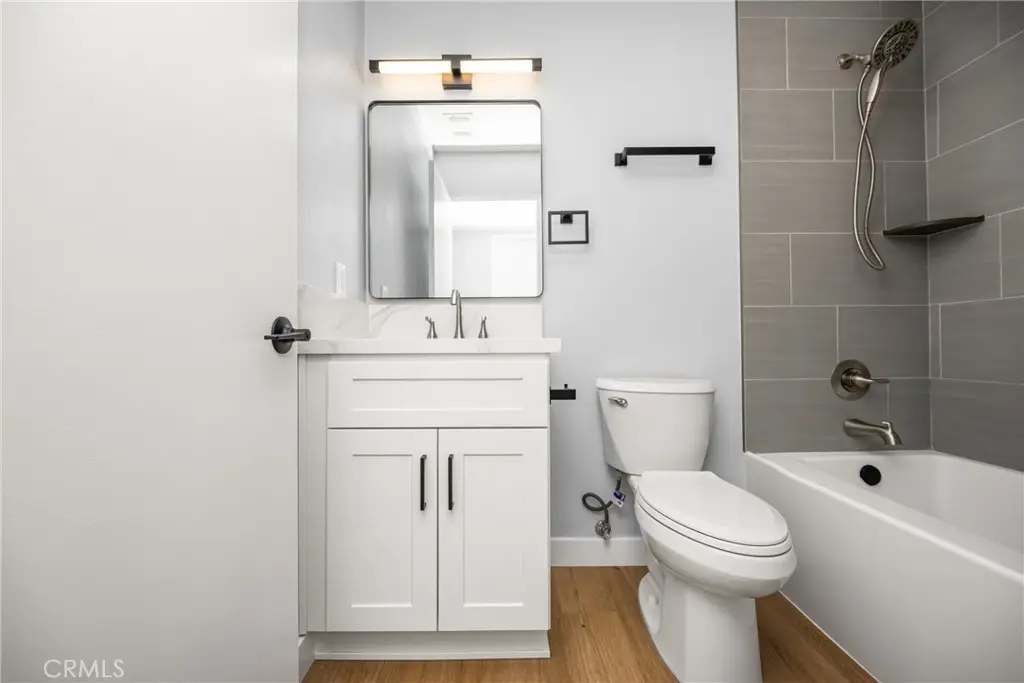 Welcome to The Colony! Nestled in a beautiful, well-established, and family-oriented neighborhood, this stunning four-bedroom, three-bath home has been completely remodeled. The bright, modern kitchen features stainless appliance, crisp white cabinetry, oversized island, breakfast bar and dinning area, beautiful countertops, and natural-toned flooring throughout. Enjoy a cozy family room with high ceilings and modern fireplace. There is a convenient downstairs primary bedroom, along with two guest bedrooms and a hallway bath. Upstairs, you'll find an enormous primary suite offering elegant bathroom with privacy and comfort. Landscape front and back with fruit trees and new sod. Additional upgrades include high ceilings, laminate flooring, ceiling fans, new air conditioning, heating system, water heater, new windows, new roof, and fresh paint. Enjoy the association amenities with private clubhouse, Olympic-size pool, spacious parks, BBQ Area, Clubhouse, tennis courts and basketball courts, and tree lined jogging paths. Located on a quiet cul-de-sac, this home is centrally positioned near shopping centers, freeways, and award-winning schools. This is one property you won't want to miss!