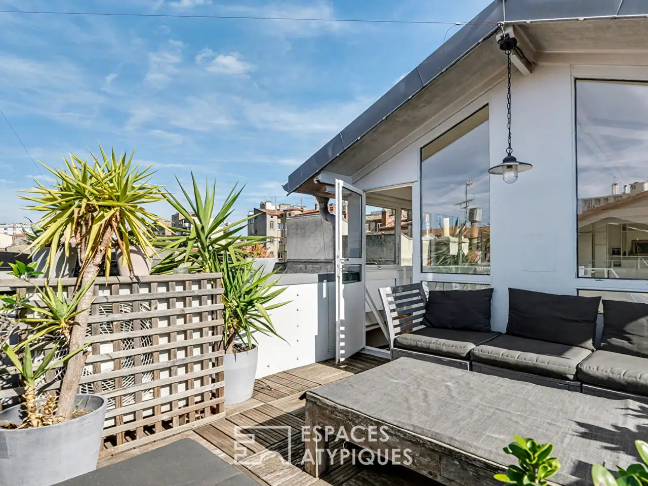 Located between the Chalets and Matabiau districts of Toulouse, this top-floor apartment with a terrace impresses with its spaciousness and offers over 270m2 of living space (including 233.81m2 under the Carrez law).Formerly an architect's office and private apartment, this space has been completely redesigned by its owners to create a true urban haven.Access is via a private door opening onto the courtyard, preserving the space's privacy and privacy. The wrought iron staircase, a true backbone, leads to a unique space.From the entrance, the eye is drawn to the spectacular proportions of the approximately 155m2 living area. Under a skylight, light floods in at all hours of the day, revealing the subtle contrasts between Toulouse brick, metal, and wood.It is undoubtedly the skylight that defines the space's identity. Elevated above the Toulouse rooftops, it acts like a suspended belvedere.Light constantly flows through it, gliding across the roof structure, changing in intensity over the hours, revealing every architectural detail. This feeling of urban pilothouse, bathed in light, gives the space a rare charm.Slightly set back, the kitchen extends the space.Suspended in the space, the minimalist staircase leads to the unoverlooked terrace, a true breath of fresh air above the rooftops.On the other side, an office space overlooks the living room, complemented by a water feature; adaptable as desired - workshop, guest bedroom, or workspace.The sleeping area extends to both ends of the loft.The first overlooks the entrance with two spacious bedrooms with bathrooms.On the other side, two further bedrooms, including a suite, complete this unique property.A rare combination of light, height, and character, this loft perfectly embodies the Espaces Atypiques spirit, blending architectural heritage with contemporary lifestyle.A 30m2 garage is included in the sale.A 29.43m2 apartment could be sold as an additional unit.Co-ownership of 30 units, including 16 residential units.No pending proceedings.REF. 13150Additional information* 7 rooms* 5 bedrooms* 4 bathrooms* Floor : 3* 3 floors in the building* Outdoor space : 15 SQM* 30 co-ownership lots* Annual co-ownership fees : 140 €* Property tax : 4 083 €Energy Performance CertificatePrimary energy consumptiond : 184 kWh/m2.yearHigh performance housing*A*B*C*184kWh/m2.year23*kg CO2/m2.yearD*E*F*GExtremely poor housing performance* Of which greenhouse gas emissionsc : 23 kg CO2/m2.yearLow CO2 emissions*A*B*23kg CO2/m2.yearC*D*E*F*GVery high CO2 emissionsEstimated average annual energy costs for standard use, indexed to specific years 2021, 2022, 2023 : between 3 € and 5 € Subscription IncludedAgency feesThe fees include VAT and are payable by the vendorMediatorMediation Franchise-Consommateurswww.mediation-franchise.com29 Boulevard de Courcelles 75008 ParisInformation on the risks to which this property is exposed is available on the Geohazards website : www.georisques.gouv.fr