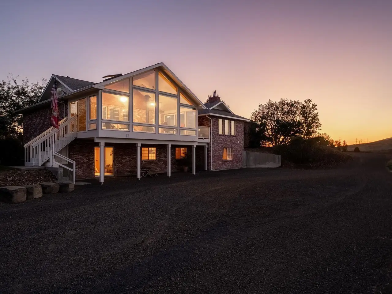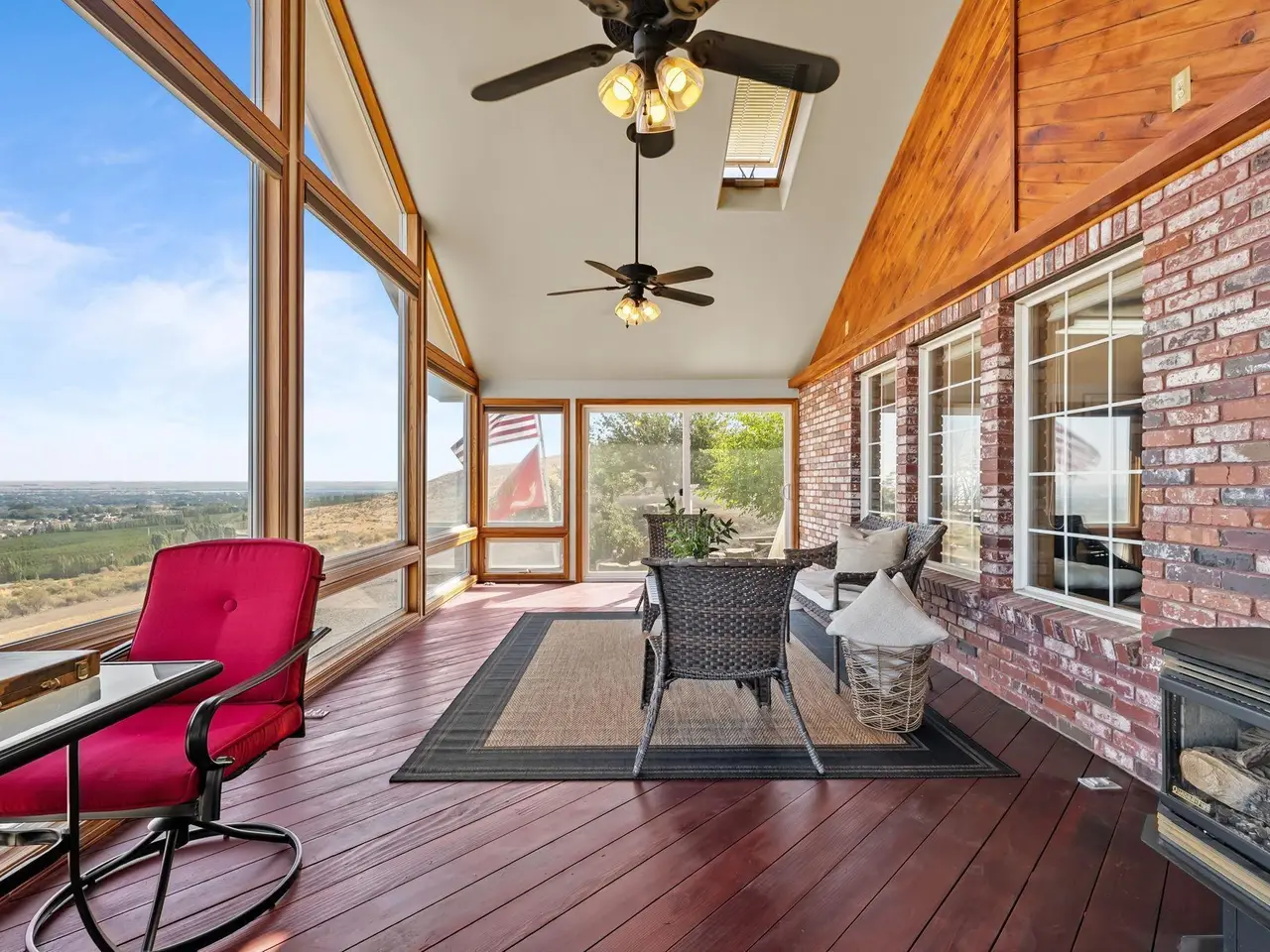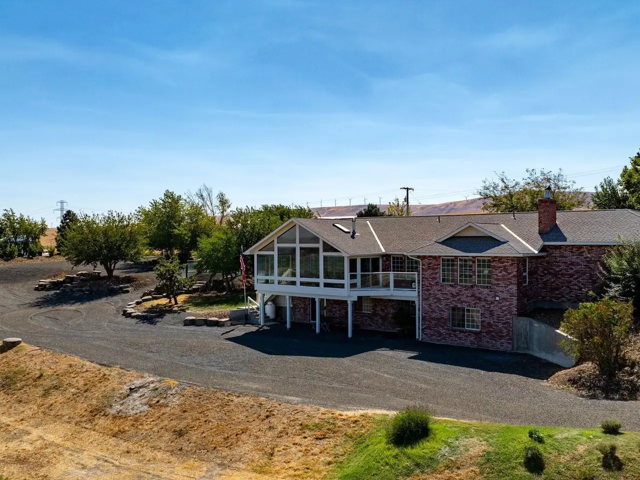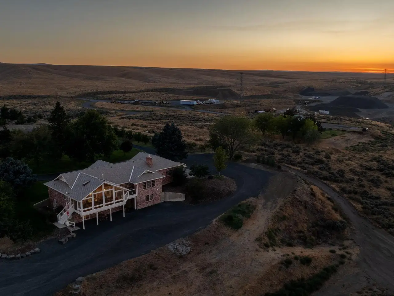 Experience the freedom of nearly 20 acres and some of the most breathtaking views in town. This private retreat blends wide-open spaces with a comfortable 4-bedroom home designed to capture the surrounding beauty. The main level features an open living and dining area with a cozy wood-burning fireplace, where windows frame the rolling landscape. A vaulted sunroom with gas fireplace provides a year-round sanctuary to enjoy the sunrise, sunsets, and changing seasons. The home includes one main-floor bedroom (currently an office) and a daylight basement with four additional bedrooms downstairs that include the primary suite. Outdoors, you'll find room for animals, gardening, and hobbies. A large shop with two full bays, an air compressor, a pellet stove for heating during cold months, and generous storage is perfect for projects and toys. Attached is a fully finished 2-bedroom, 2-bath apartment with laundry - ideal for guests, multi-generational living, or rental income. The property also features a chicken coop for fresh eggs, and a fire pit where family and friends can gather under the stars. Here you'll enjoy the best of both worlds: the tranquility of country acreage and the convenience of being just 10 minutes from shopping, schools, and everyday needs.
