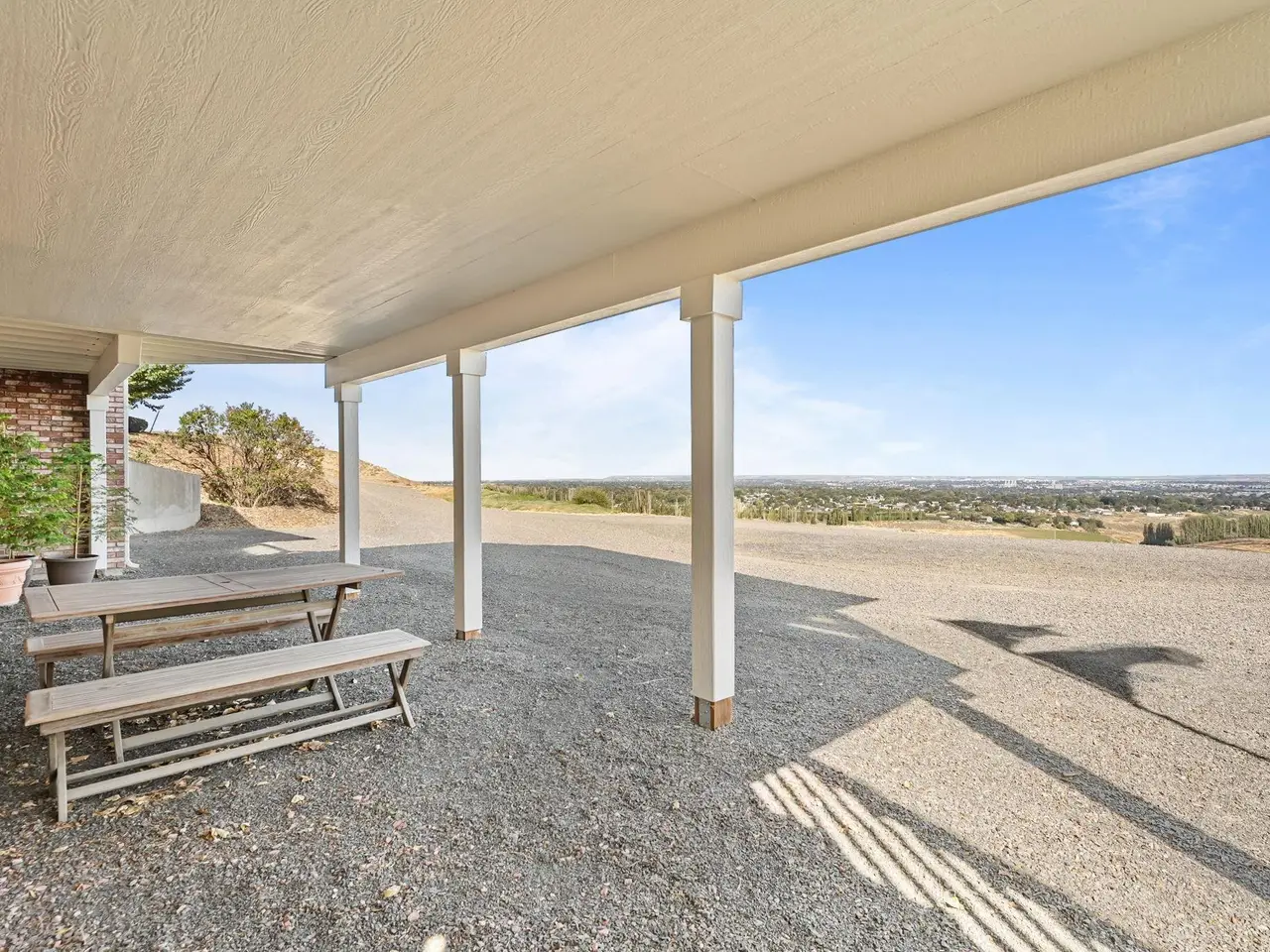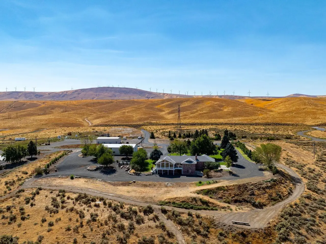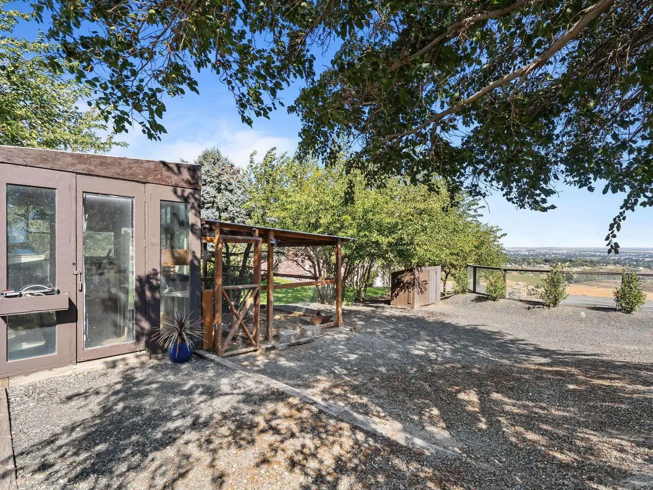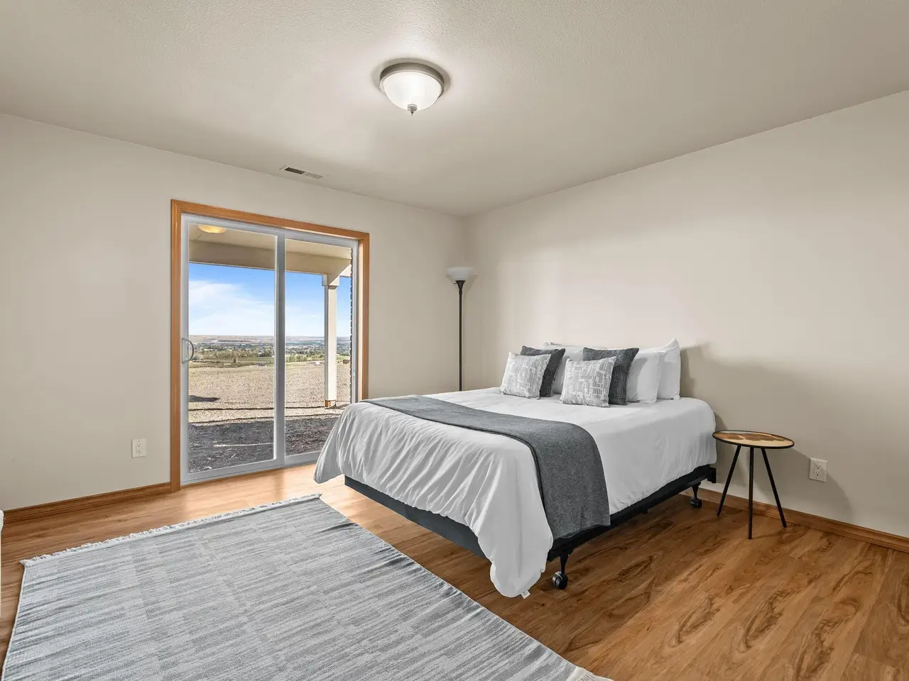 Experience the freedom of nearly 20 acres and some of the most breathtaking views in town. This private retreat blends wide-open spaces with a comfortable 4-bedroom home designed to capture the surrounding beauty. The main level features an open living and dining area with a cozy wood-burning fireplace, where windows frame the rolling landscape. A vaulted sunroom with gas fireplace provides a year-round sanctuary to enjoy the sunrise, sunsets, and changing seasons. The home includes one main-floor bedroom (currently an office) and a daylight basement with four additional bedrooms downstairs that include the primary suite. Outdoors, you'll find room for animals, gardening, and hobbies. A large shop with two full bays, an air compressor, a pellet stove for heating during cold months, and generous storage is perfect for projects and toys. Attached is a fully finished 2-bedroom, 2-bath apartment with laundry - ideal for guests, multi-generational living, or rental income. The property also features a chicken coop for fresh eggs, and a fire pit where family and friends can gather under the stars. Here you'll enjoy the best of both worlds: the tranquility of country acreage and the convenience of being just 10 minutes from shopping, schools, and everyday needs.
