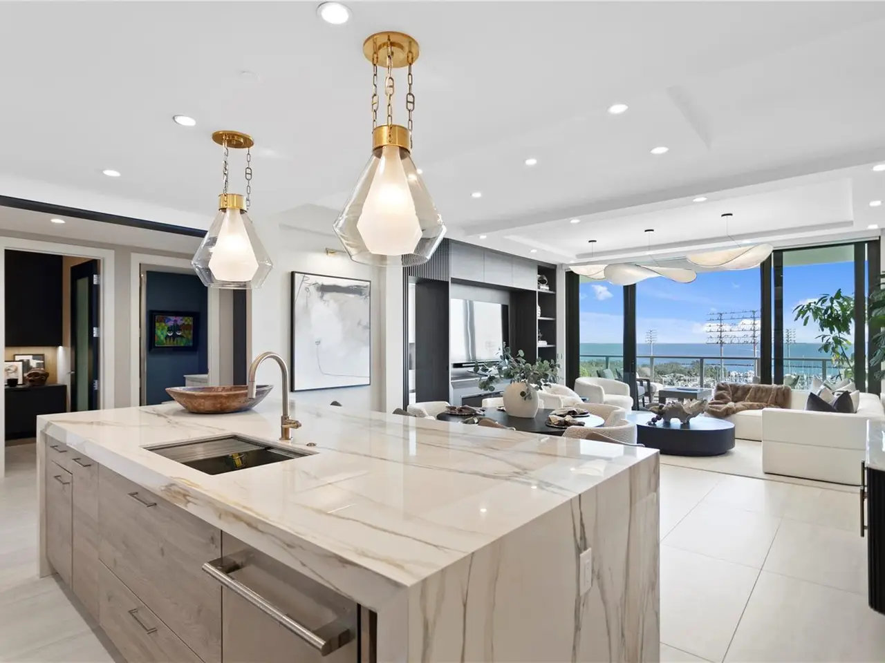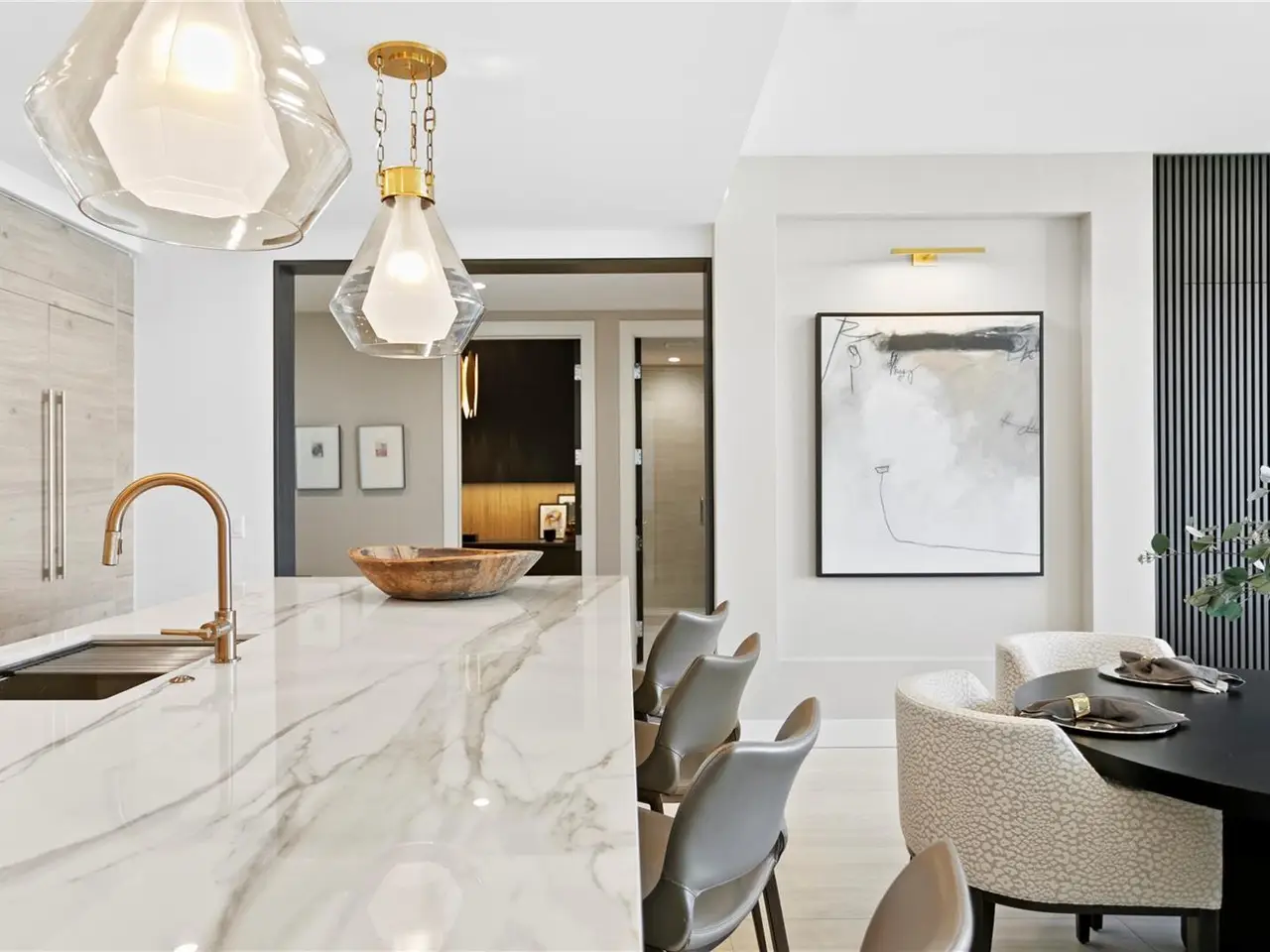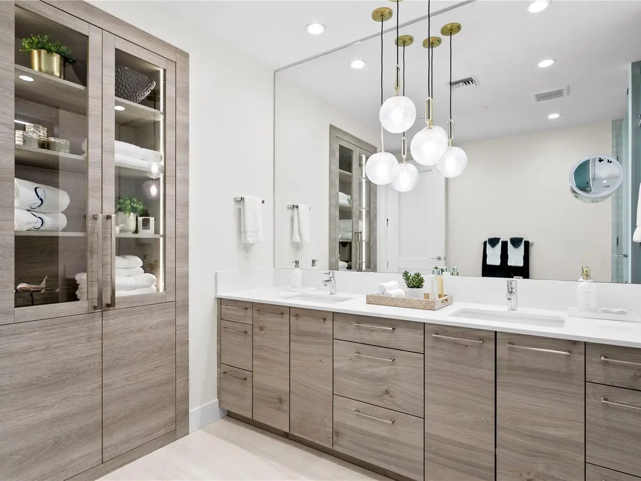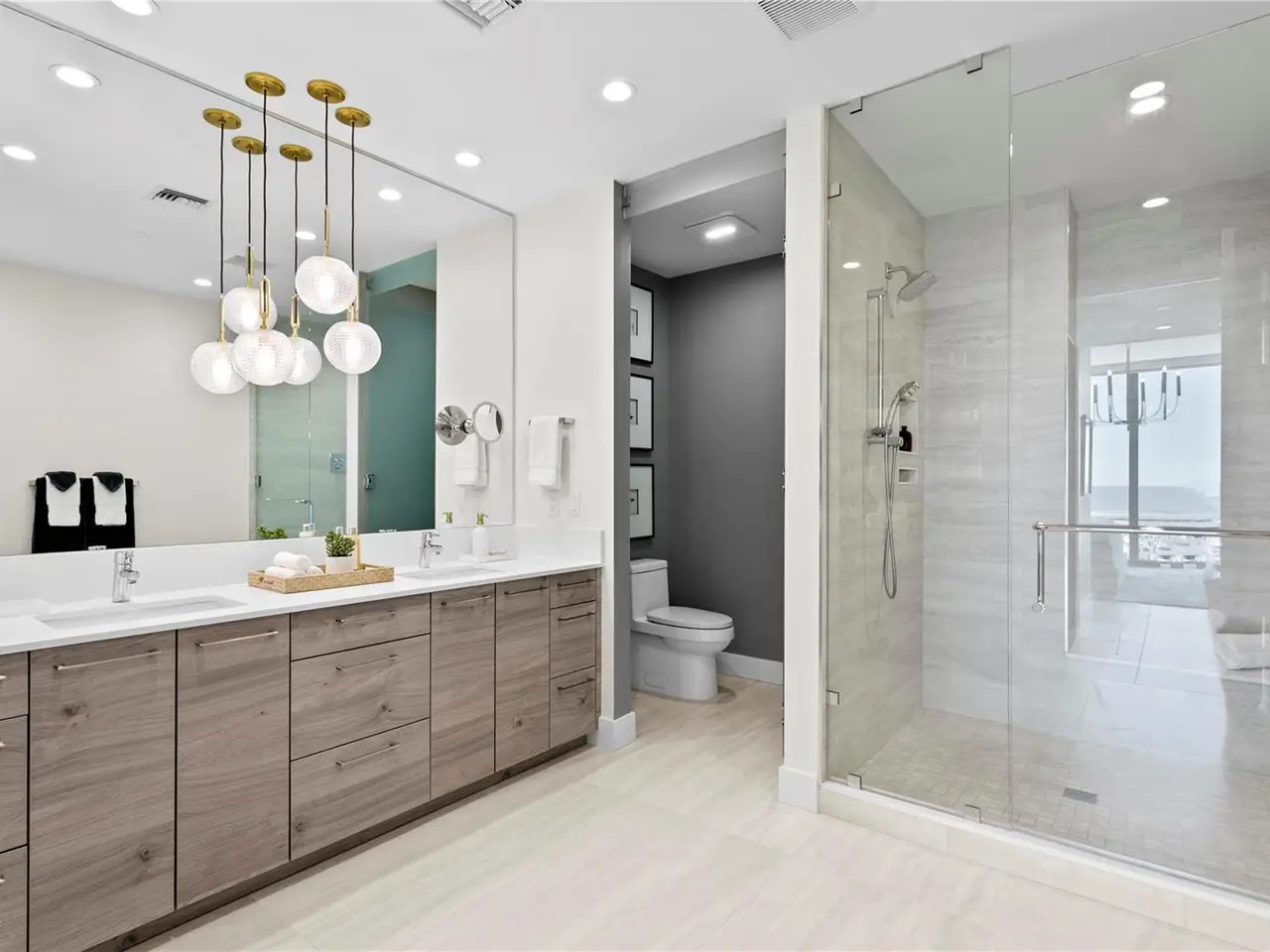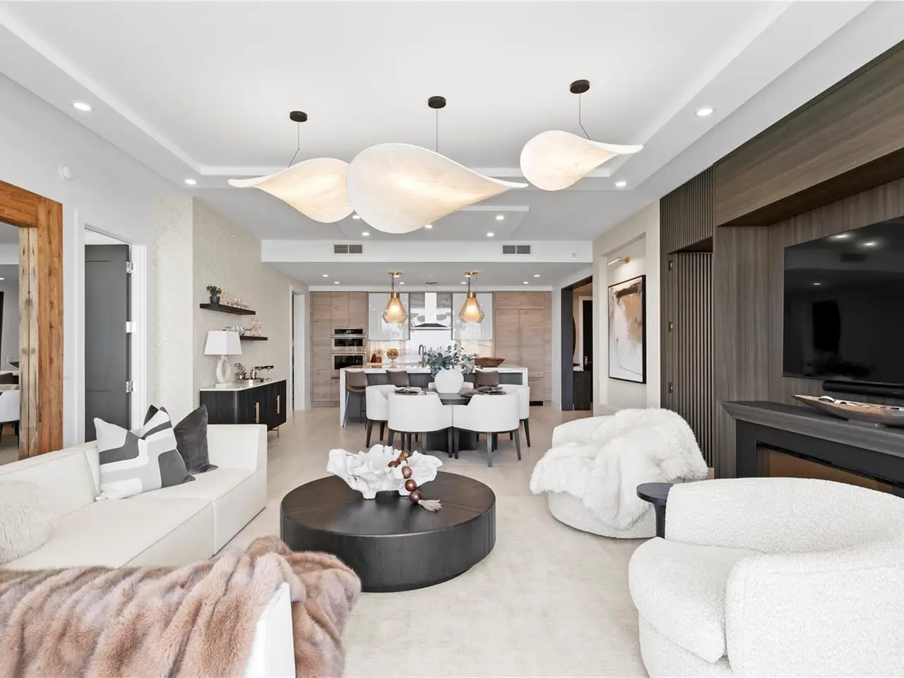 Fully Reimagined and designed in 2024, this new condo is a true masterpiece where every inch has been thoughtfully curated for the most discerning tastes. From the moment you step through the custom archway, the level of craftsmanship is evident, setting the tone for what's to come. The OPEN-CONCEPT LIVING SPACES are an absolute showstopper, featuring exquisite, HAND-SELECTED DESIGNER TOUCHES that elevate the space to another level of elegance. The main attraction is the CUSTOM MEDIA WALL WITH HIDDEN GUEST ROOM DOOR. The tone in the living room is set with THREE SILK-WRAPPED CHANDELIERS that illuminate, while a FRAMED ART WALL with TEXTURED WALLPAPER creates a bold statement. The ELEGANT TRAY CEILING with RECESSED LIGHTING enhances the sense of grandeur throughout the home. At the heart of this residence is a CHEF'S KITCHEN that is as beautiful as it is functional. The approx. 5'x11' EXPANDED ISLAND WITH A DOUBLE WATERFALL EDGE and concealed cabinetry, all WRAPPED IN SLEEK PORCELAIN, is a true work of art. The matching backsplash ties the entire space together in perfect harmony. The BUTLER'S PANTRY is a fusion of practicality and indulgence, complete with a WINE COOLER, QUARTZ COUNTERTOPS, CUSTOM CABINETRY, and laundry space, offering an unparalleled level of convenience. The DEN IS AN OASIS OF FUNCTIONALITY AND ELEGANCE, equipped with FULL-HEIGHT CUSTOM CABINETRY, an oversized chandelier that demands attention, and wallpapered accents for a refined, personalized touch. The OWNER'S SUITE OFFERS THE ULTIMATE RETREAT, combining peace and luxury with a WALLPAPERED ACCENT WALL, a DESIGNER CHANDELIER, and CUSTOM CLOSETS that are as stunning as they are spacious. The SPA-LIKE EN-SUITE BATH takes relaxation to the next level, boasting a CUSTOM LINEN CLOSET illuminated to highlight its beauty, along with three luxurious pendant lights. Every aspect of this home has been meticulously upgraded, from TILE FLOORING and LUTRON ELECTRIC BLINDS to thoughtfully curated designer finishes on walls, trim, and ceilings. As a resident of Saltaire, you'll enjoy world-class amenities including a resort-style pool, a state-of-the-art fitness center, expansive club rooms surrounded by glass that bring the outdoors in, and a pet-friendly dog park with a washing station. The 7th-floor terrace offers breathtaking panoramic views of the bay and downtown skyline, while the vibrant city life is just steps away from your front door. This is truly an extraordinary opportunity to live in a LUXURY HOME WHERE UNPARALLELED DESIGN MEETS EXTRAORDINARY CONVENIENCE. With the added peace of mind of the builder's warranty, this is a rare find in the heart of downtown.