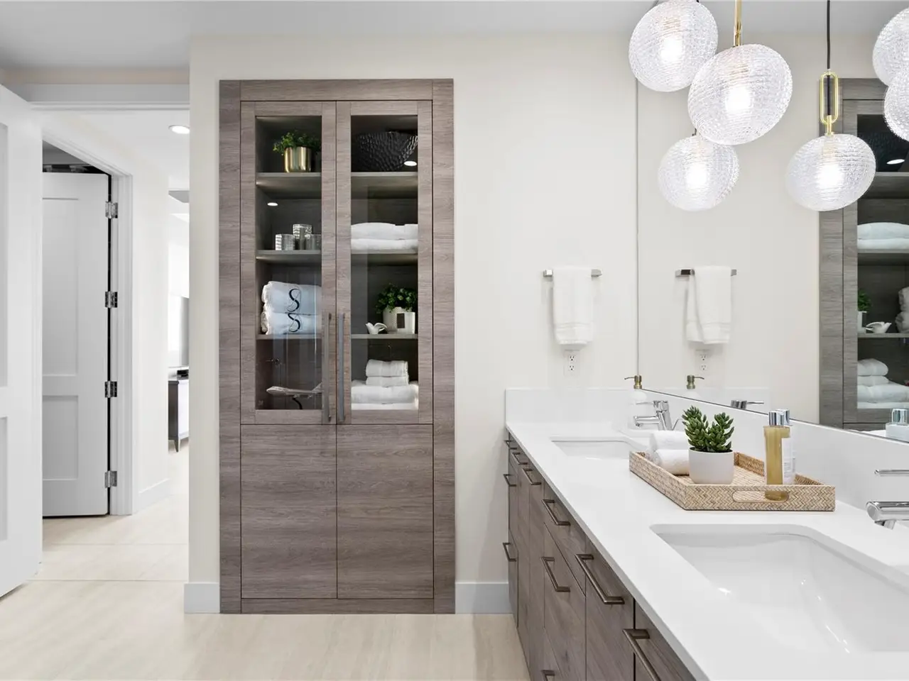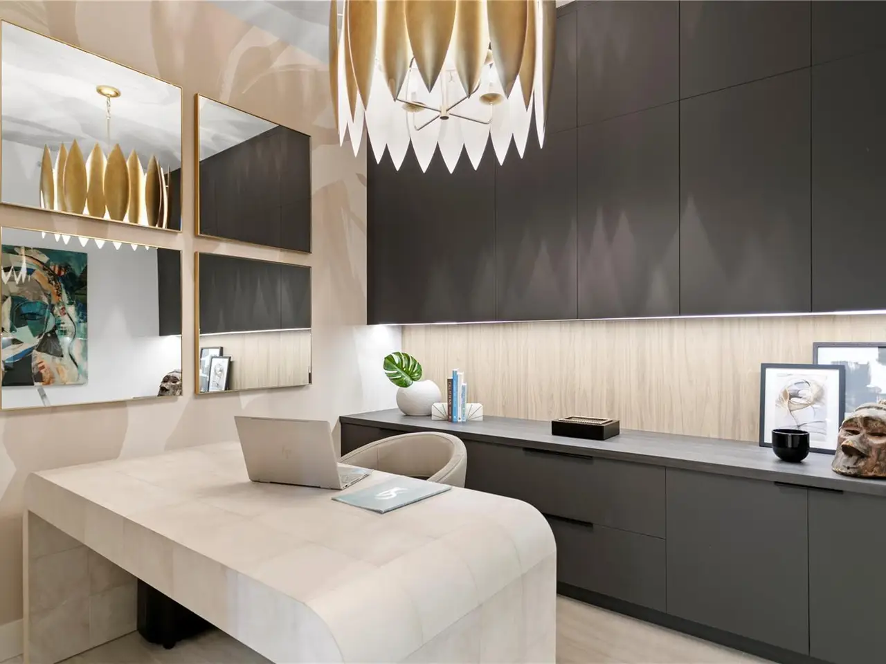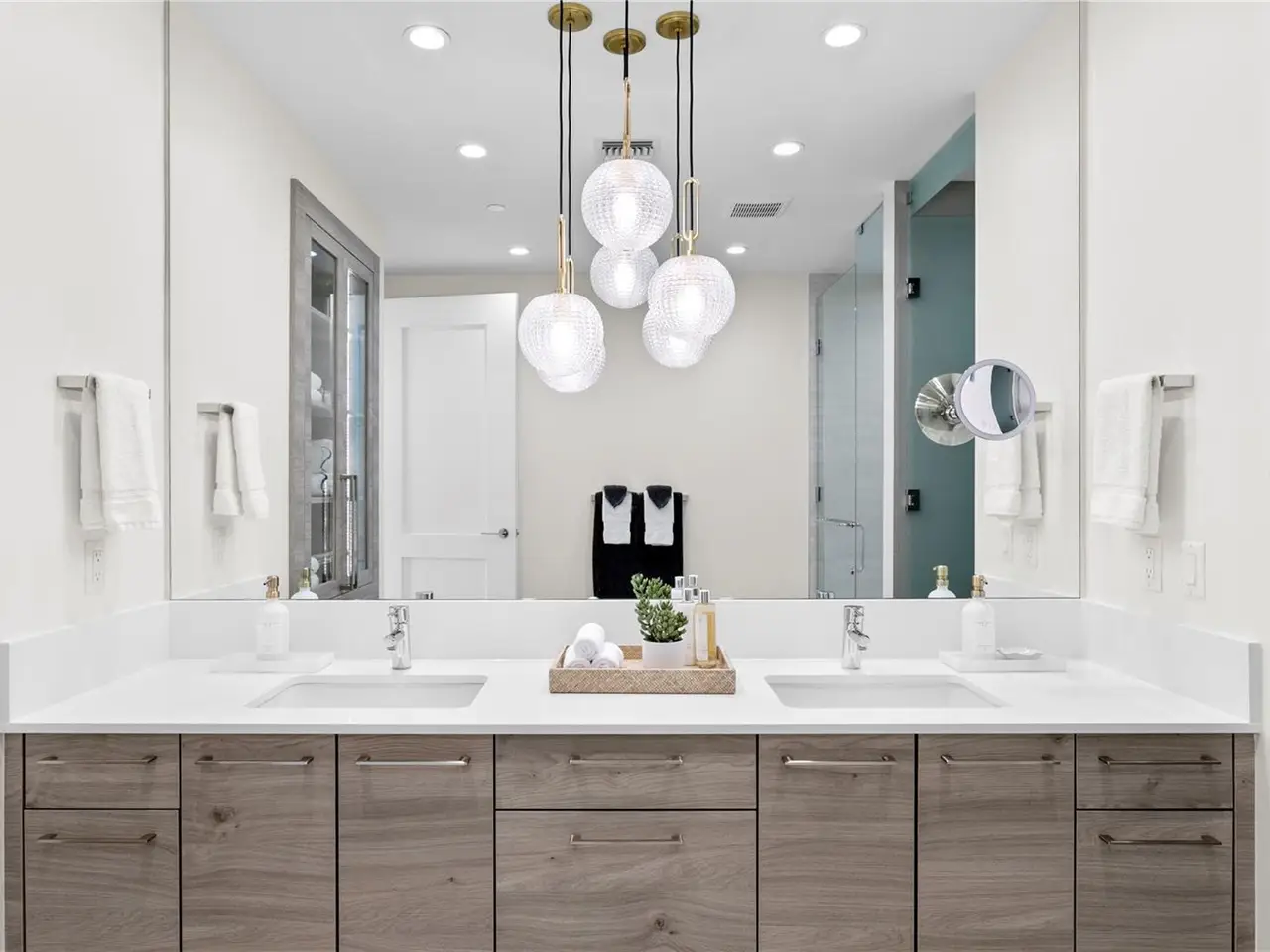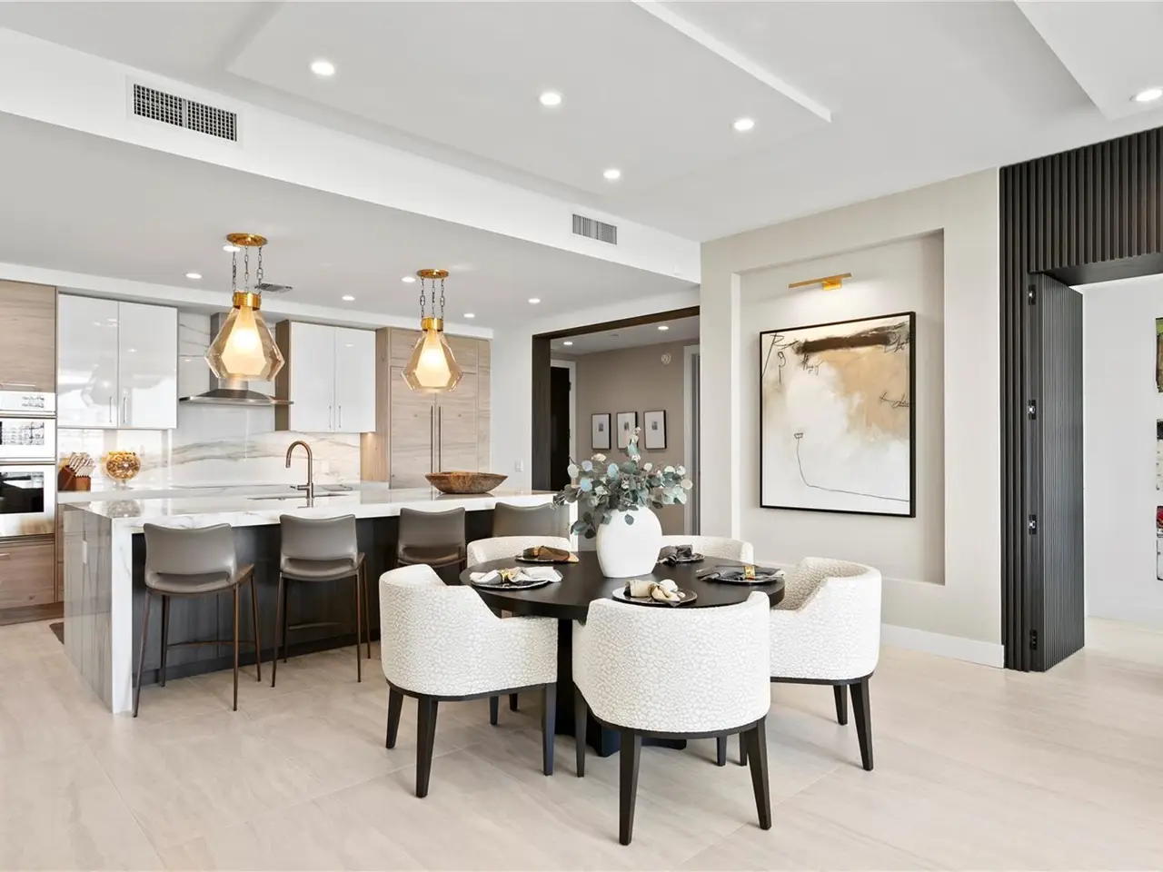 Fully Reimagined and designed in 2024, this new condo is a true masterpiece where every inch has been thoughtfully curated for the most discerning tastes. From the moment you step through the custom archway, the level of craftsmanship is evident, setting the tone for what's to come. The OPEN-CONCEPT LIVING SPACES are an absolute showstopper, featuring exquisite, HAND-SELECTED DESIGNER TOUCHES that elevate the space to another level of elegance. The main attraction is the CUSTOM MEDIA WALL WITH HIDDEN GUEST ROOM DOOR. The tone in the living room is set with THREE SILK-WRAPPED CHANDELIERS that illuminate, while a FRAMED ART WALL with TEXTURED WALLPAPER creates a bold statement. The ELEGANT TRAY CEILING with RECESSED LIGHTING enhances the sense of grandeur throughout the home. At the heart of this residence is a CHEF'S KITCHEN that is as beautiful as it is functional. The approx. 5'x11' EXPANDED ISLAND WITH A DOUBLE WATERFALL EDGE and concealed cabinetry, all WRAPPED IN SLEEK PORCELAIN, is a true work of art. The matching backsplash ties the entire space together in perfect harmony. The BUTLER'S PANTRY is a fusion of practicality and indulgence, complete with a WINE COOLER, QUARTZ COUNTERTOPS, CUSTOM CABINETRY, and laundry space, offering an unparalleled level of convenience. The DEN IS AN OASIS OF FUNCTIONALITY AND ELEGANCE, equipped with FULL-HEIGHT CUSTOM CABINETRY, an oversized chandelier that demands attention, and wallpapered accents for a refined, personalized touch. The OWNER'S SUITE OFFERS THE ULTIMATE RETREAT, combining peace and luxury with a WALLPAPERED ACCENT WALL, a DESIGNER CHANDELIER, and CUSTOM CLOSETS that are as stunning as they are spacious. The SPA-LIKE EN-SUITE BATH takes relaxation to the next level, boasting a CUSTOM LINEN CLOSET illuminated to highlight its beauty, along with three luxurious pendant lights. Every aspect of this home has been meticulously upgraded, from TILE FLOORING and LUTRON ELECTRIC BLINDS to thoughtfully curated designer finishes on walls, trim, and ceilings. As a resident of Saltaire, you'll enjoy world-class amenities including a resort-style pool, a state-of-the-art fitness center, expansive club rooms surrounded by glass that bring the outdoors in, and a pet-friendly dog park with a washing station. The 7th-floor terrace offers breathtaking panoramic views of the bay and downtown skyline, while the vibrant city life is just steps away from your front door. This is truly an extraordinary opportunity to live in a LUXURY HOME WHERE UNPARALLELED DESIGN MEETS EXTRAORDINARY CONVENIENCE. With the added peace of mind of the builder's warranty, this is a rare find in the heart of downtown.