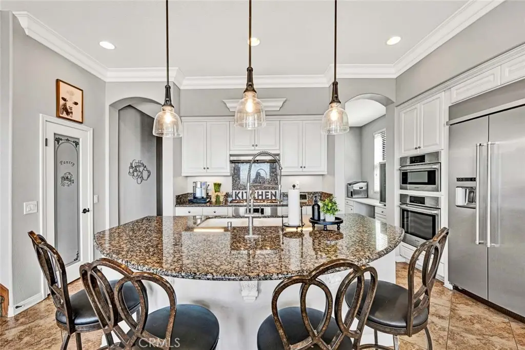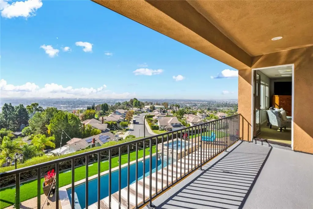 Imagine standing on a hill in Orange County with the entire OC basin laid out at your feet.By day you can see all of the landmarks-Disneyland,the Honda Center, Angels Stadium and more, and on a clear day, you can see Catalina Island and all the way to LA. The show starts when the sun sets and you're treated to magnificent works of art on the horizon.After sunset, the city lights start to shine and sparkle like jewels in a treasure chest. Now imagine this hill is in your own backyard! You enjoy this breathtaking view from the pool and spa, from the outdoor kitchen with barbecue, hibachi grill, pizza oven, refrigerator and bar seating for your friends & family.There are outdoor living areas under the awning and on the corner patio and there's even a putting green, all with a breathtaking view! Your private paradise also includes a magnificent,sprawling 4,345 square foot home! You traverse the hill and arrive at a gated enclave of incredible homes. When arriving at the home, you notice the meticulously manicured landscaping leading to a secluded porch and custom leaded glass double entry doors and a lovely fountain.They open to an elegant foyer with soaring 2 story ceilings and a gorgeous chandelier.To the right is the formal living room with elegant fireplace and the adjacent home office accessed through double doors from the living room or a separate entry door off the front porch.To the left is a formal dining room with ample space for large gatherings.A butler's pantry leads to a gourmet kitchen and breakfast room, both creating a great room with the family room with fireplace.Beyond the family room is an ensuite bedroom with private bath and access to the back and side yards.Rounding out the first floor is a powder room,walk-in pantry & laundry room.Upstairs,the staircase splits with the right side leading to the elegant owner's suite that takes in the magnificent view from indoors or a large balcony.There are 2 huge walk-in closets,an opulent spa style bath with jetted tub and separate shower & an exercise niche.Up the left staircase,there's a bonus room with limitless uses and access to the front balcony.The spacious secondary bedrooms all have big closets and consist of an ensuite bedroom with private bath and a pair of Jack 'n Jill bedrooms that share a bath.There are far too many wonderful things to say and list about this fabulous home.You really need to see it and experience it.Once you do that, you'll never want to leave! Come make it yours!