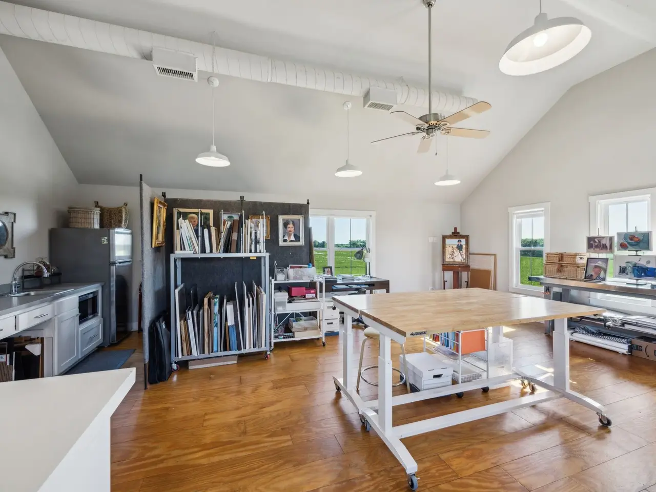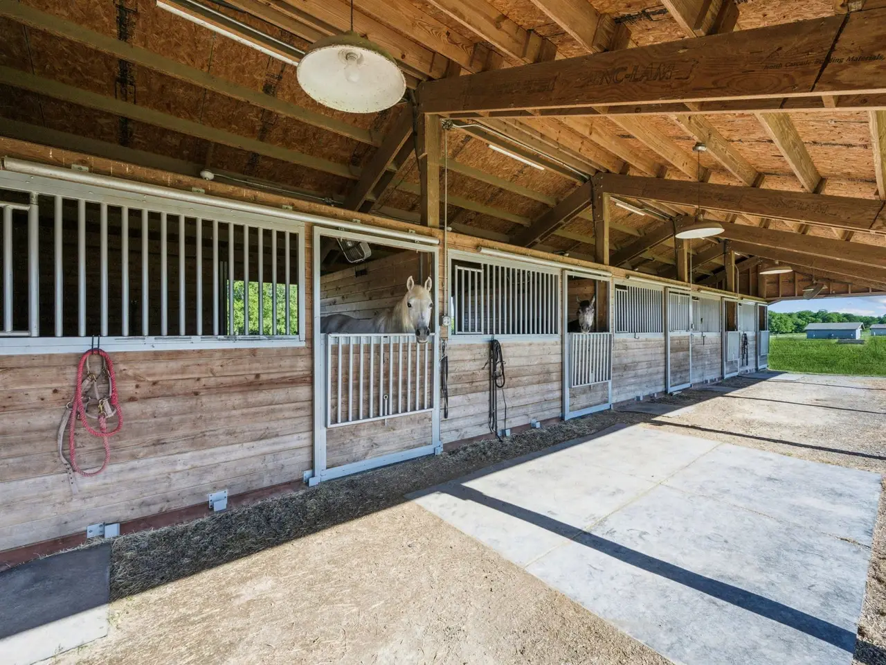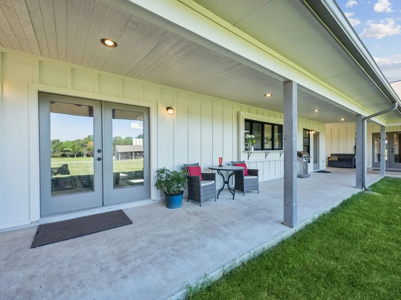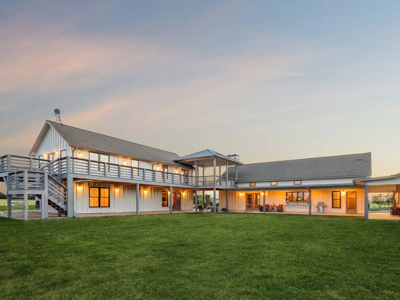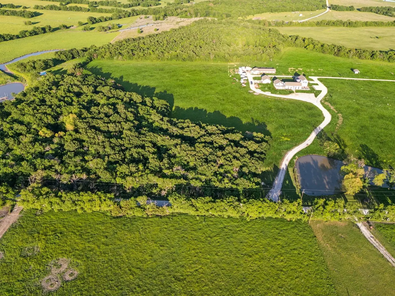 Welcome to Circle B Retreat, a rare 46-acre ag-exempt ranch just 50 miles from Dallas, perfectly planned to escape the city. Creatively designed with a nod to the Hill Country, this carefully planned ensemble of buildings is connected by an extensive wrap-around porch and courtyard encouraging easy indoor - outdoor flow. Inside, slate floors extend through the main living area with vaulted ceilings and a stone fireplace. The kitchen is built to host large gatherings with an expansive island and extra-large pantry for storage. A separate office with mini-split offers flexibility, while multiple dwellings make it a perfect multi-generational living setup. A working art studio offers lots of space for creative activities or could easily be converted to sleeping spaces. Enjoy expansive sky views, sunsets, stars, and reflections in the pond from the outdoor fireplace and open patio area. The private drive wraps around the home and barn providing unlimited parking. The sturdy, pole-built, 5-stall barn with tack and storage rooms, shelters horses and other animals, and - or a place to store ATVs or dirt bikes. Wooded spaces invite exploration, and the homes set-back location ensures privacy and safety for kids and animals. Evenings bring chirping frogs and the coyote chorus under the Texas stars. Welcome home!