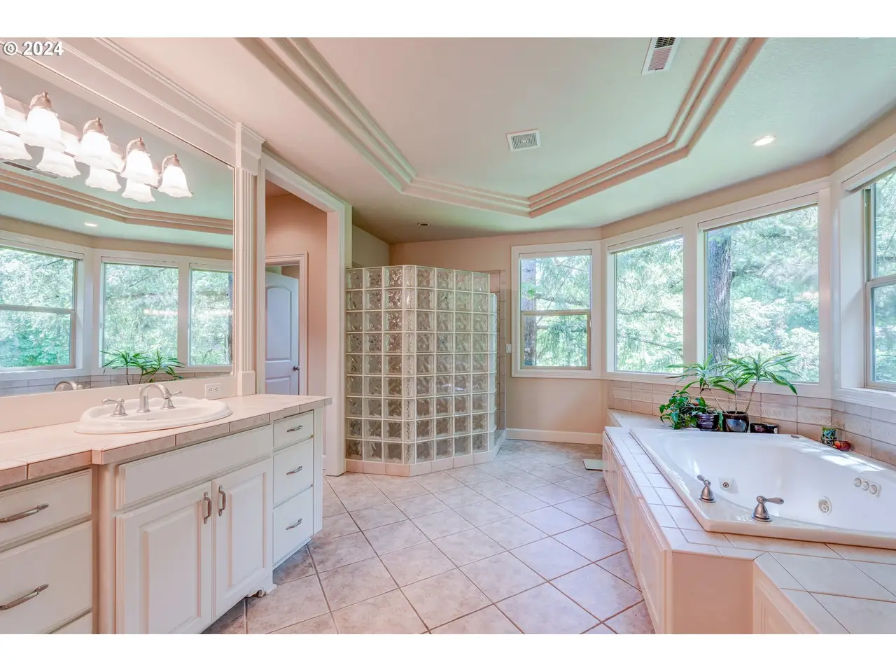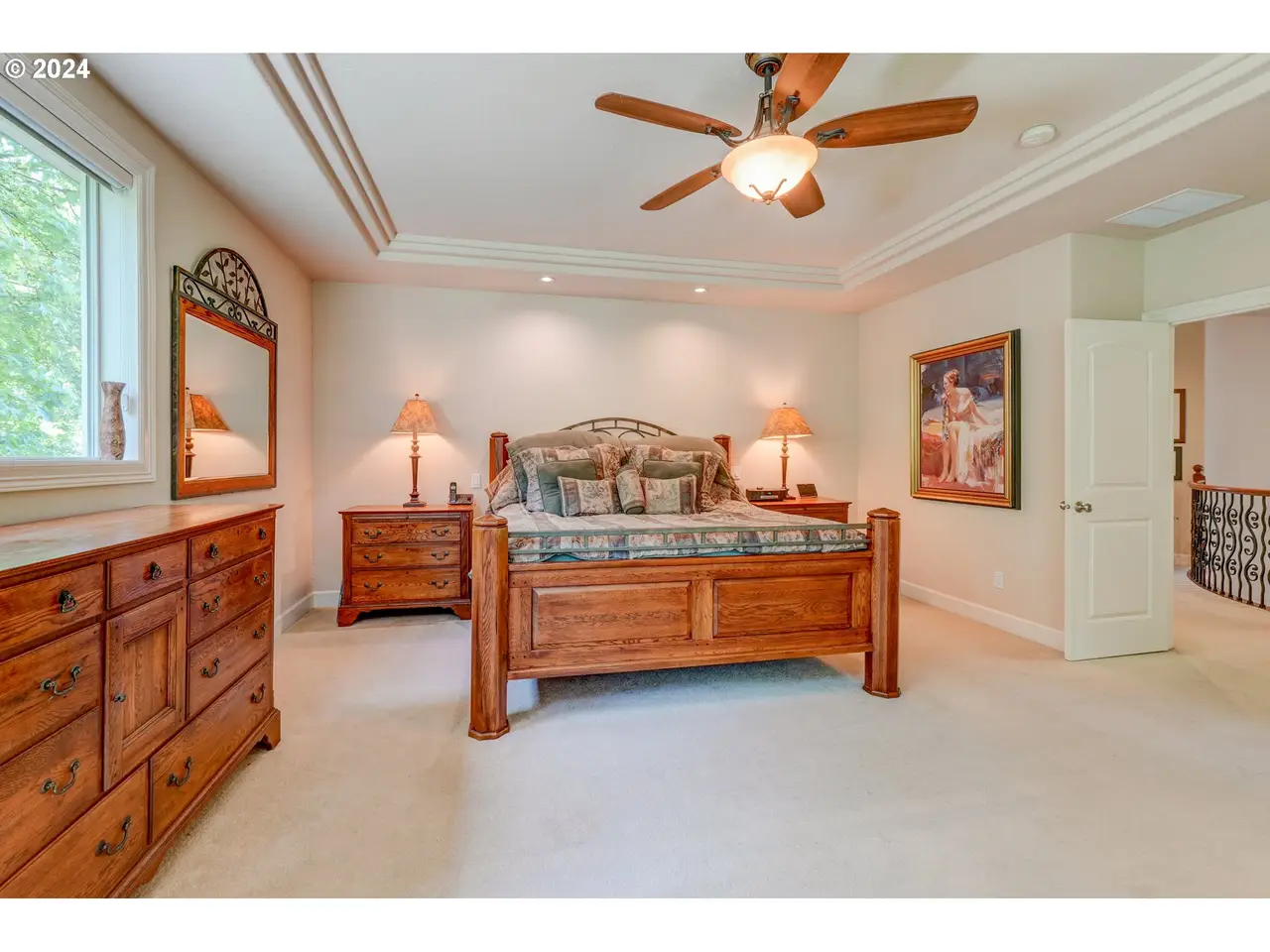 A wonderful Cooper Mountain Classic Traditional Home. Custom built by Gemini Homes/Michael Arnett with custom features throughout. First time on the market by original owners, customized features were added in construction when built in 2004. Outstanding millwork throughout this home. Original Brazilian Cherry true hardwood floors lead one from the grand foyer down an open hallway, passing the living room, formal dining room and then to the gourmet kitchen. From the front foyer, there is a vaulted den/office currently showcasing a grand piano as the music room. The living room is a very comfortable space for relaxing or entertaining guests. This room features high, coffered ceilings, a wall of windows showcasing the vast green space and its own deck, one of three on the property. There are two dining areas, the formal dining room and then a large breakfast nook next to the kitchen for more casual dining. The kitchen features slab granite counters, beautiful cabinetry, two level island, built in stainless steel appliances, & professional grade gas range. Truly a cooks dream kitchen! There is junior primary bedroom just off kitchen, currently used as an office, which has a full bath and walk-in closet. Upstairs, the Owners Suite is found, along with four other spacious bedrooms. Please note, every bedroom in this home is connected to a full bathroom. House guests will love visiting! On the lower level, there is a family room with a wet bar & an additional wine cooler. On the other end of the family room is a bonus room space with room enough for a pool table and flex space. The seventh bedroom is found on the lower level and again, it is connected to a full bath. Being located on Cooper Mountain, it is only three minutes or less drive to the Cooper Mountain Nature Park & Winkleman Dog Park. Oregon Wineries are as close as an eight minute drive and Progress Ridge shopping & restaurants are as close as seven minutes away! Wonderful home situated in an equally wonderful neighborhood!