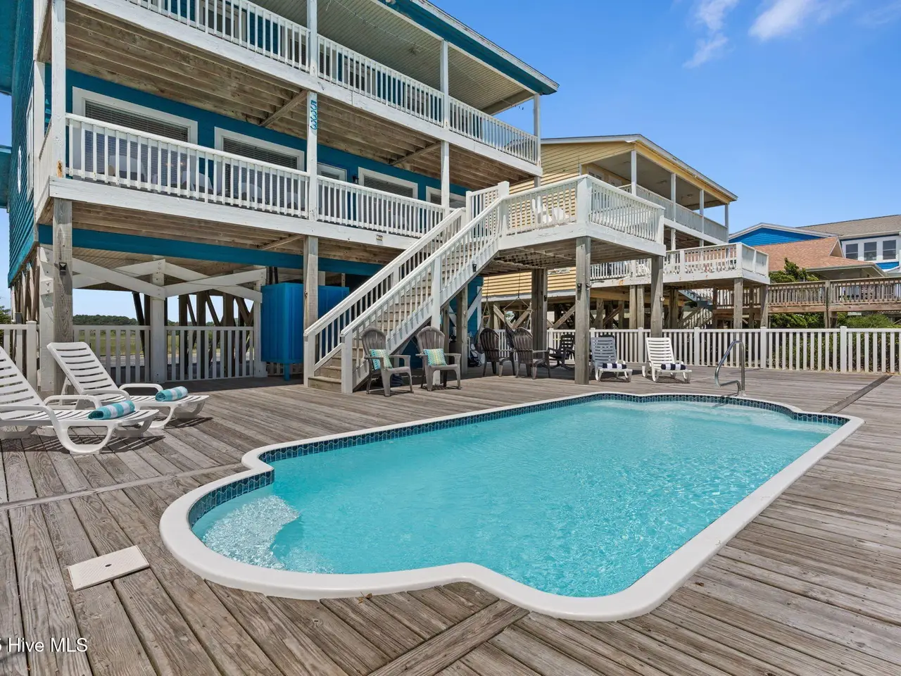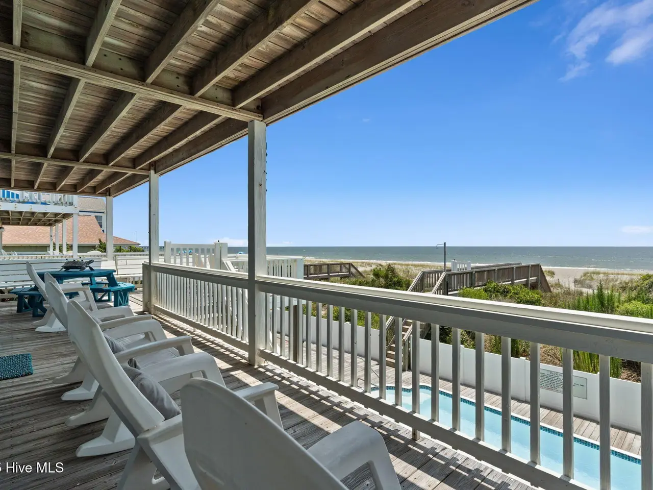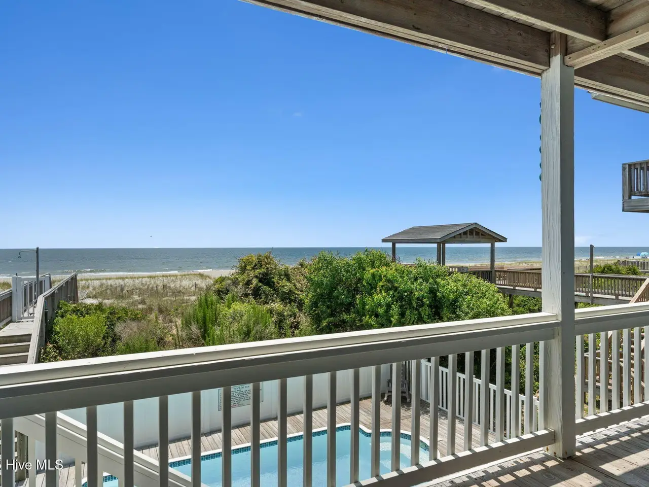 Exceptional Oceanfront Retreat with Expansive Pool Deck, Breathtaking Views & Prime Island Location Experience the ultimate in coastal living and investment opportunity with this incredible oceanfront beach house, perfectly situated in the heart of Holden Beach. Featuring 4 spacious bedrooms, 4.5 bathrooms, and amazing views of both the Atlantic Ocean and tranquil marshlands, this thoughtfully updated home offers a rare dual-waterview perspective that's increasingly hard to find. The centerpiece of the outdoor living space is a show-stopping oceanfront pool, framed by an expansive deck ideal for sunbathing, entertaining, or simply soaking in the sea breeze. Three covered decks offer multiple vantage points to enjoy sunrises over the ocean and sunsets across the marsh - an extraordinary backdrop for unforgettable coastal moments. A private dune walkover ensures direct beach access, while an enclosed outdoor shower, ground-level storage, and newly added guest parking enhance convenience. Inside, the desirable open-concept layout is flooded with natural light from picturesque windows that perfectly frame the ocean views. The updated kitchen features natural stone countertops with full-height backsplash, and flows seamlessly into the dining and living areas—perfect for gathering with friends and family. Two guest bedrooms with private bathrooms and a stylish powder room complete the main level. Upstairs, a spacious secondary living area offers flexible space for a fifth bedroom, office, or media room, along with two additional bedrooms and baths. The oceanfront primary suite is a serene sanctuary, boasting direct deck access to oceanfront deck and en suite bath. Recent upgrades include beach-ready flooring throughout, fresh interior and exterior paint, updated bathroom vanities and lighting, and enhanced guest parking. Ideally located just moments from local shops, restaurants, seafood markets, and a public boat launch, this home combines comfort, lifestyle, and income potential in one of Holden Beach's most desirable settings. Whether you're seeking a high-performing investment property or a refined personal retreat, this oceanfront gem offers the best of both worlds. Schedule your private tour today.