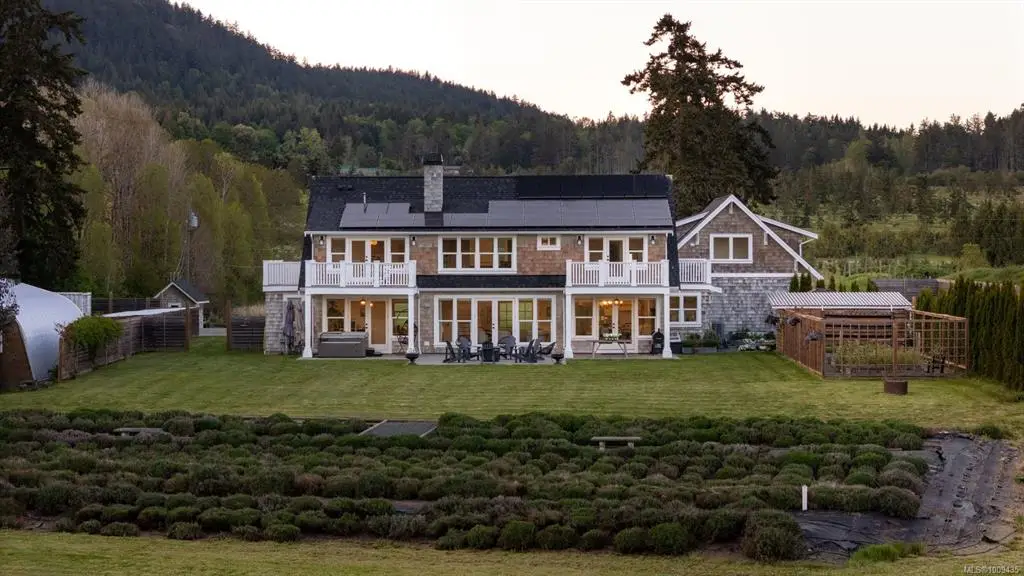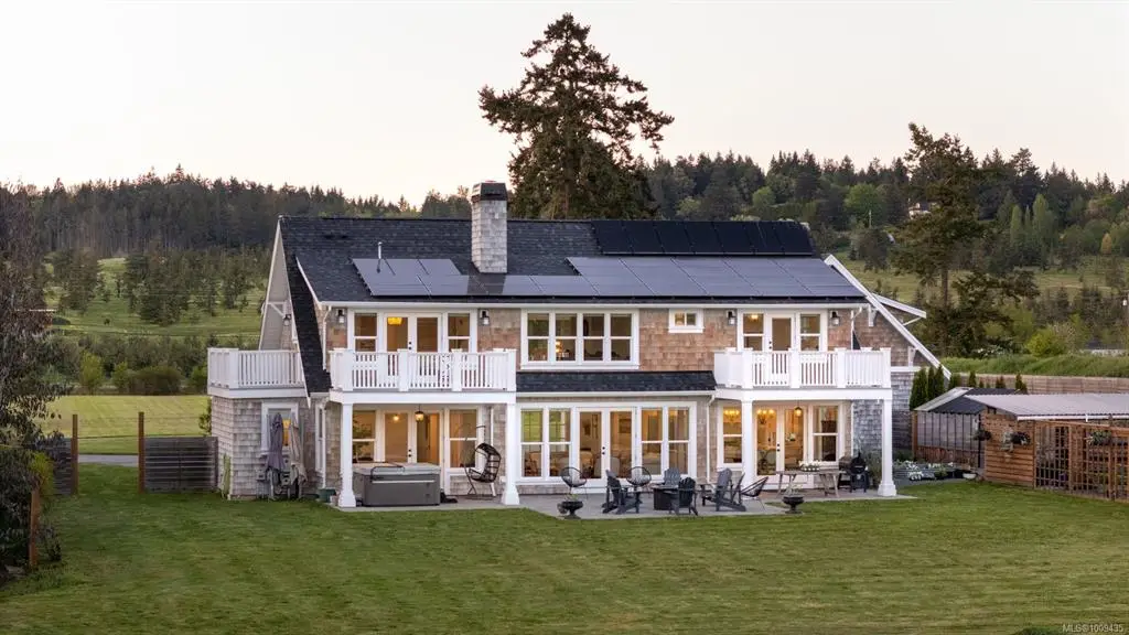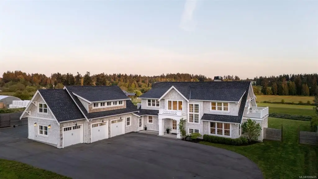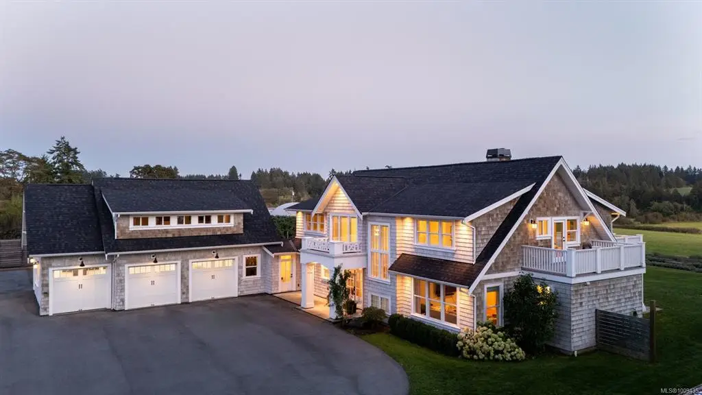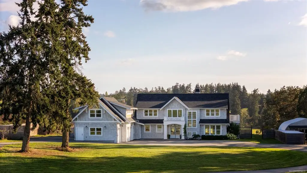 Discover effortless elegance in this cedar shingle, Hamptons-style home. Newly built by award-winning, Villamar Construction, this five bed, six bath, 4,796 square foot home blends timeless architecture with modern sophistication. The property, set on a pristine 62 acres, welcomes symmetrical design, gracious proportions, and clean lines while offering a seamless indoor/outdoor flow, light-filled interiors, and luxurious natural finishes throughout. An open floorplan, soaring ceilings, and wall-to-wall windows invite views into every room. A thoughtful layout offers two primary suites – one on the main floor and another on the second story. Keeping its connection to the outdoors, the home offers over 1,500 square feet of patio space and private verandas, enjoying exposures from sunrise to sunset. The picturesque property also includes an upper-level one bed, one bath carriage house and additional workshop. Located in the heart of Central Saanich, close to schools, parks, beaches, and trails.