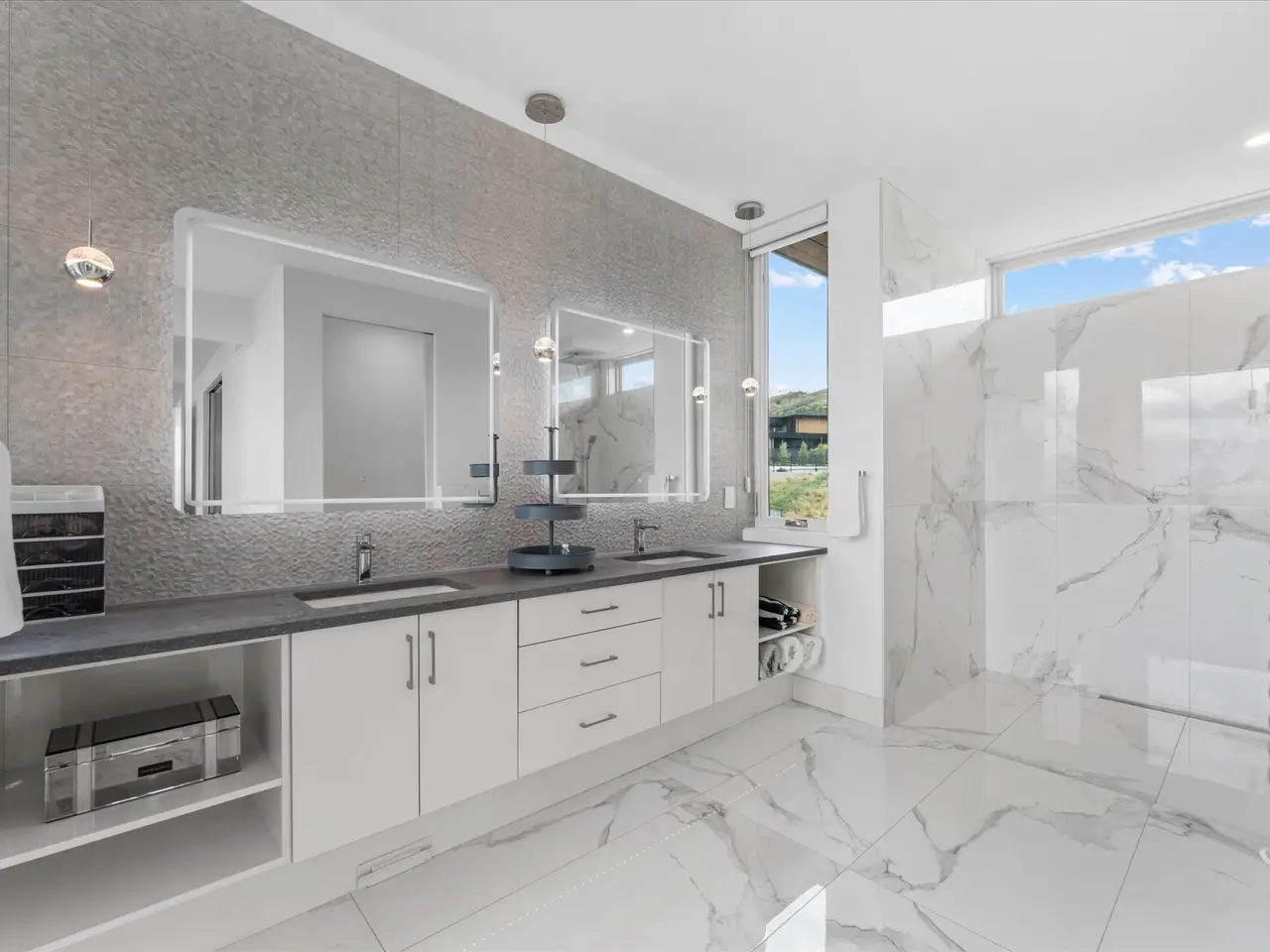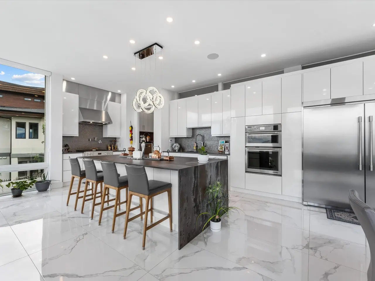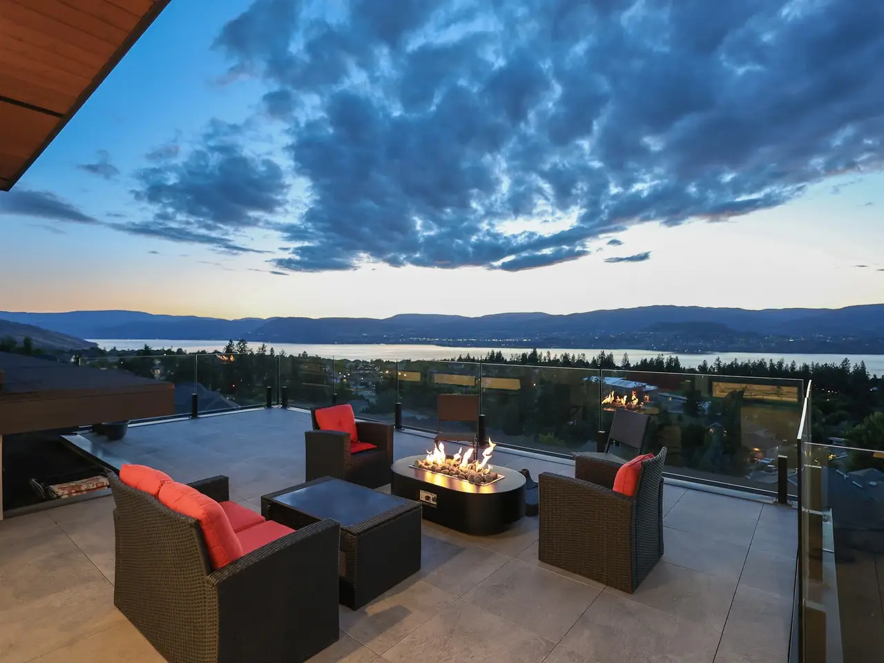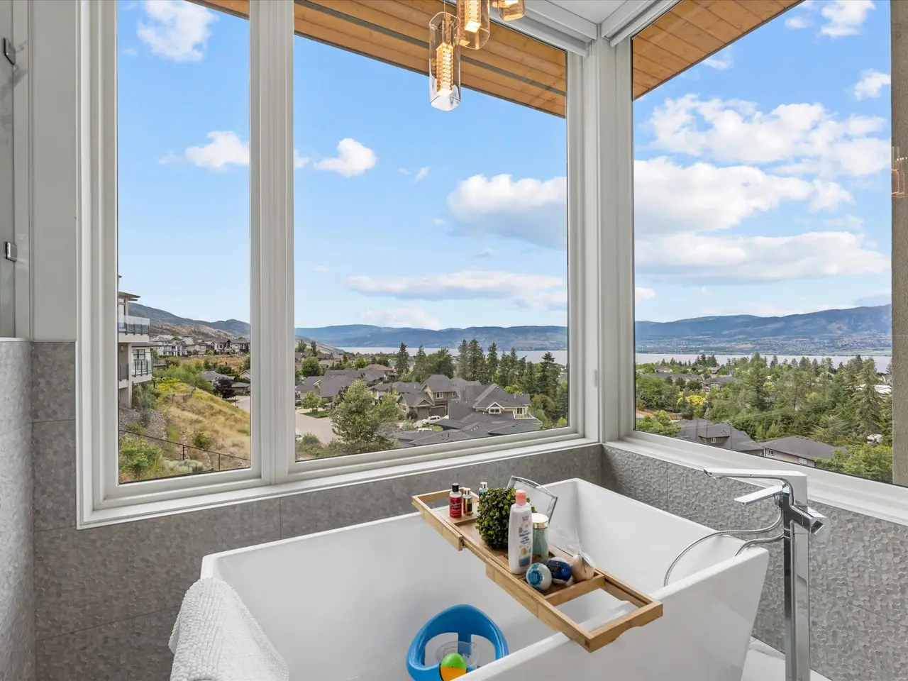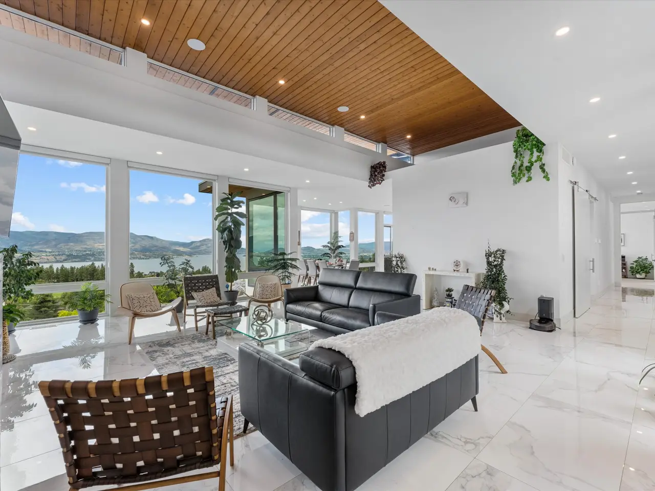 Listed by Unison Jane Hoffman Realty | Framed by breathtaking lake, city, and valley views, this modern masterpiece – designed by Carl Scholl – pairs architectural sophistication with exceptional craftsmanship. From the self-locking solid wood door imported from Croatia to the floating staircases and Anderson window package, every detail has been curated for form and function. Spanning 6,600+ sq. ft., this 6-bedroom, 7-bath residence offers radiant heated floors, Italian tile, solid core doors with transom windows, and seamless indoor-outdoor flow. The chef’s kitchen features quartz counters, a Dekton waterfall island, Fulgor gas cooktop, JennAir ovens, and a full butler’s pantry with second kitchen. Expansive living and dining areas are framed by floor-to-ceiling windows, while the primary retreat boasts a spa-inspired ensuite, boutique-style walk-in closet, and rooftop deck access. Outdoors, the backyard is a private oasis designed for both relaxation and entertaining—featuring a saltwater infinity pool with power cover, sunken hot tub, fire table, and lush landscaping. The covered patio with wood inlay ceilings, built-in speakers, and a full outdoor kitchen offers the perfect setting for alfresco dining. A fully self-contained suite with private entrance, heated floors, and sweeping views adds flexibility for multigenerational living, or guests. This is elevated Okanagan living thoughtfully designed, beautifully finished, and truly unforgettable.