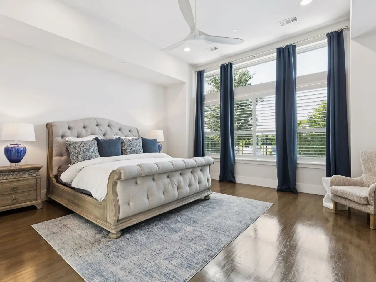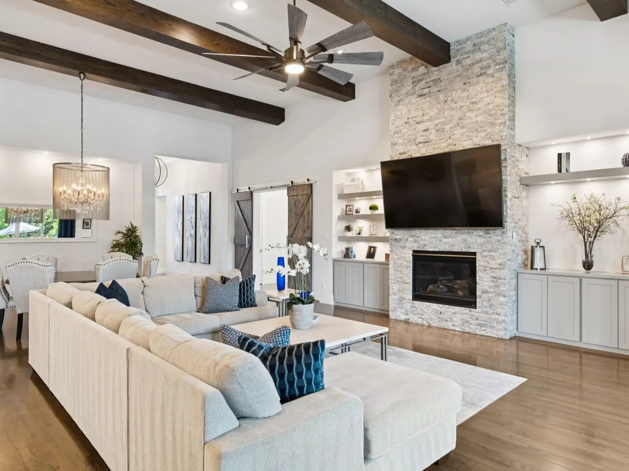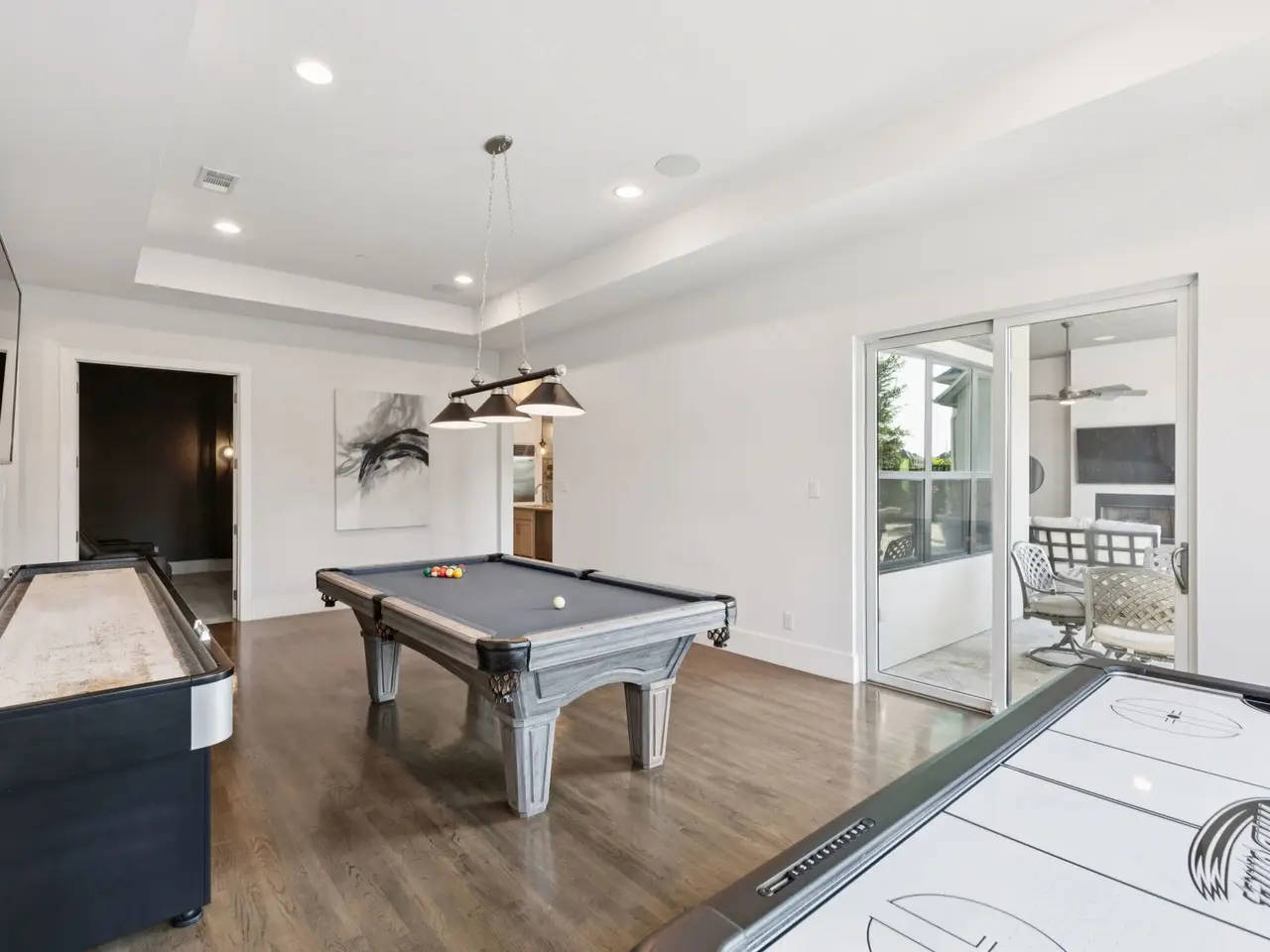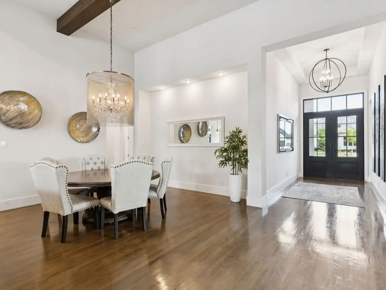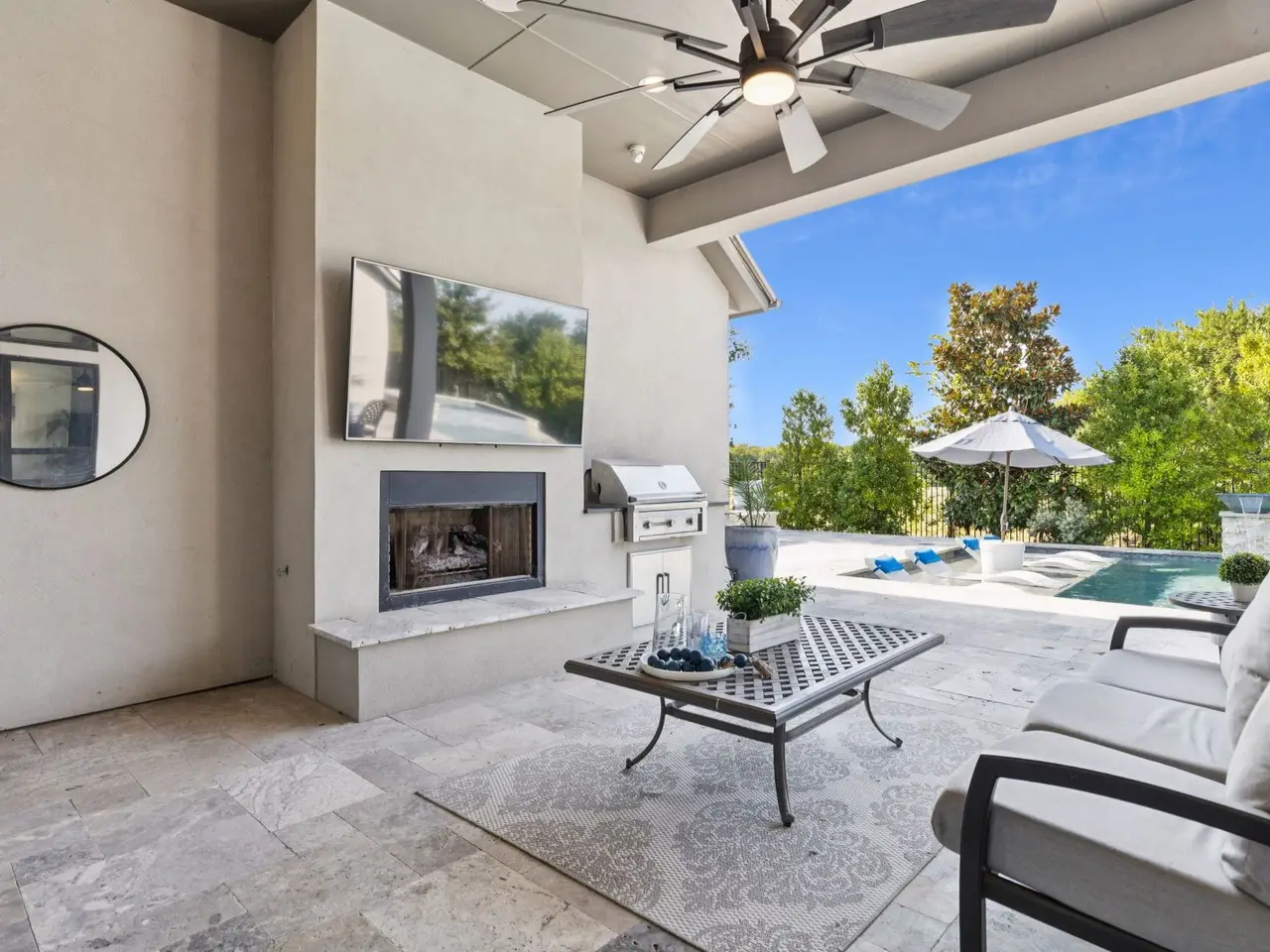 Luxury, comfort, and function come together in this stunning single-level custom home offering five bedrooms, a study, game room, media room, and two oversized two-car garages. From the moment you enter, soaring ceilings, rich wood floors, and expansive windows fill the home with natural light and set a tone of refined elegance. The heart of the home is the showpiece kitchen featuring a dramatic waterfall quartz island, professional-grade appliances, an oversized wine chiller, glass-front cabinetry for displaying your finest pieces, and a huge walk-in pantry. The open layout flows seamlessly to spacious living and dining areas, creating an ideal space for entertaining or relaxing with family. The owner’s suite is a private retreat with a spa-inspired bathroom boasting a walk-thru shower, stand-alone soaking tub, and two large walk-in closets. Secondary bedrooms with ensuite baths, are generously sized, offering comfort for family or guests. Step outside to your own private resort. A gorgeous pool and spa with water features, dramatic fire bowls, and a state-of-the-art water chiller ensure perfect swimming temperatures year-round. Enjoy evenings by the fire pit or gather under the expansive covered patio with its own fireplace and built-in grill. Every detail of this home was designed for both beauty and function inside and out. Located in an upscale boutique community in the highly sought after Prosper ISD. Close to shopping, dining and minutes from the PGA, this property delivers an unparalleled lifestyle for the discerning buyer.