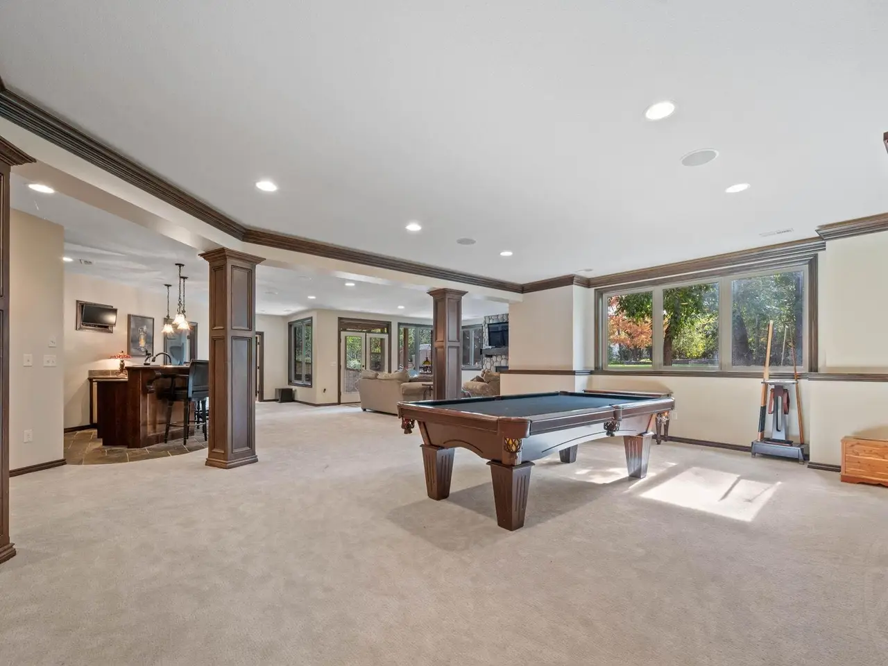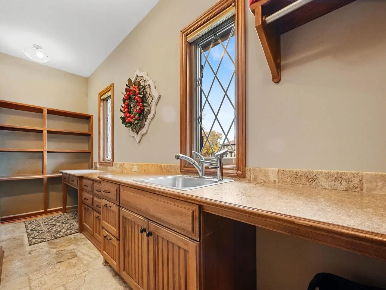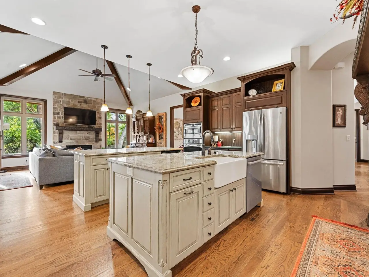 Welcome Home to 8219 W. Meadow Park, located in the sought-after gated Fossil Rim Estates neighborhood of west Wichita. This full brick and stone residence combines craftsmanship, comfort, and natural beauty on nearly one acre backing to mature trees. Designed for everyday living and memorable entertaining, the home offers 6 bedrooms, 4.5 baths, and approximately 6,082 sq ft of finely finished space. Step inside to find architectural detail at every turnarched entries, custom millwork, crown moulding, and gleaming hardwood floors. The open main level showcases a formal living and dining area with built-ins, gas fireplace, and tall windows that frame peaceful tree views. The adjoining hearth room features a stone fireplace with beam accents, creating a warm gathering space connected to the gourmet kitchen. Well-appointed for cooks and hosts alike, the kitchen includes granite countertops, double ovens, gas cooktop, stainless appliances, two large islands, and a walk-in pantry with prep sink. A main-floor office provides an ideal workspace, while the laundry room offers built-in cabinetry, sink, and drop-zone bench. The spacious primary suite is a private retreat with a coved, lighted ceiling and a wall of windows overlooking the wooded yard. The spa-style bath offers dual vanities, jetted tub, custom tile shower, and an impressive walk-in closet with built-ins. Two additional bedrooms and a full bath complete the main level. The finished walk-out basement extends the living space with a large family room centered around a stone fireplace, full wet bar with granite counters and slate flooring, billiards area, exercise room, two bedrooms, concrete safe room, and abundant storage. Natural light and patio access make the lower level ideal for entertaining or relaxation. Outdoor living shines here with a covered composite deck featuring a stone fireplace, perfect for year-round enjoyment, and a lower brick patio surrounded by landscaped beds. The expansive yard includes fencing, fire pit, and a private well and sprinkler system. The side-load three-car garage offers epoxy flooring and extra workspace. A concrete tile roof and full masonry exterior provide exceptional durability and timeless curb appeal. Located in Maize School District 266, within minutes of Sedgwick County Park, NewMarket Square shopping and dining, Ridge Road corridor amenities, and the Northwest YMCA, this property delivers the perfect balance of privacy and convenience. Experience refined living in Fossil Rim Estateswhere design, setting, and quality craftsmanship come together in one remarkable west-side Wichita address.