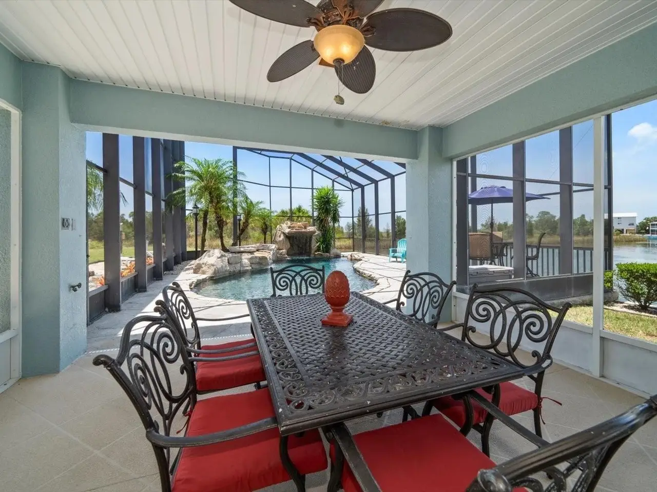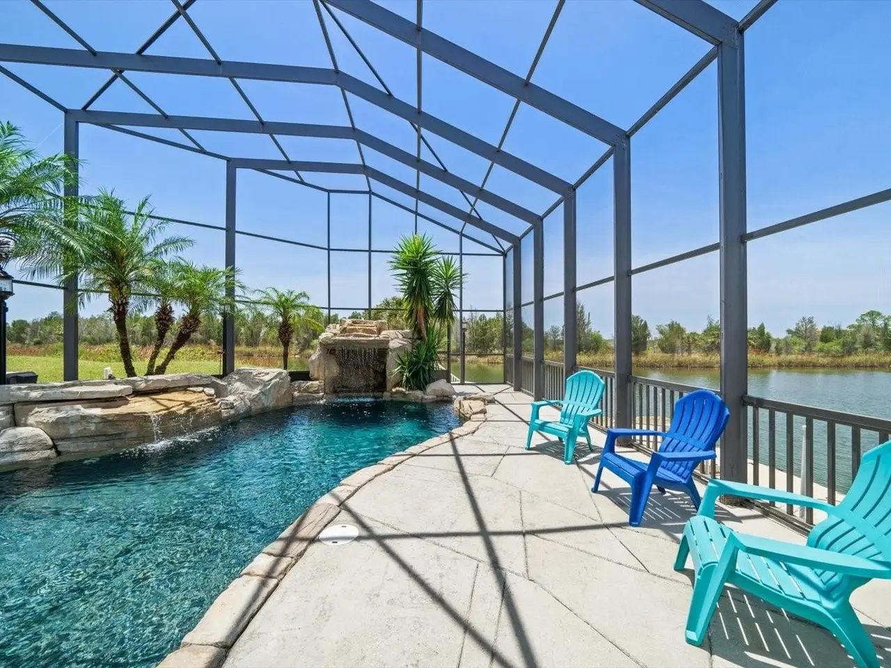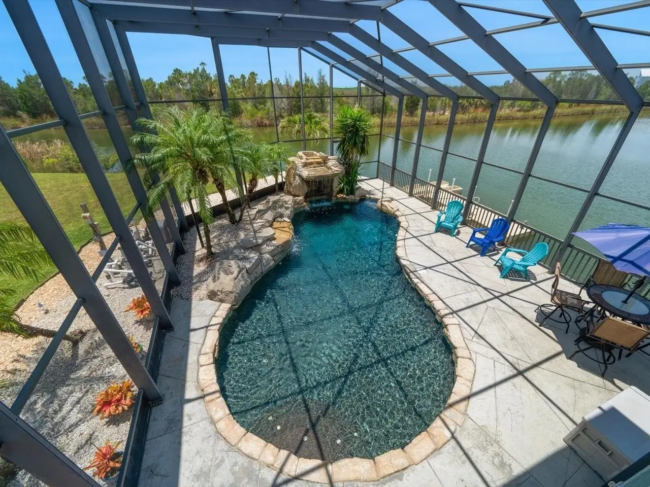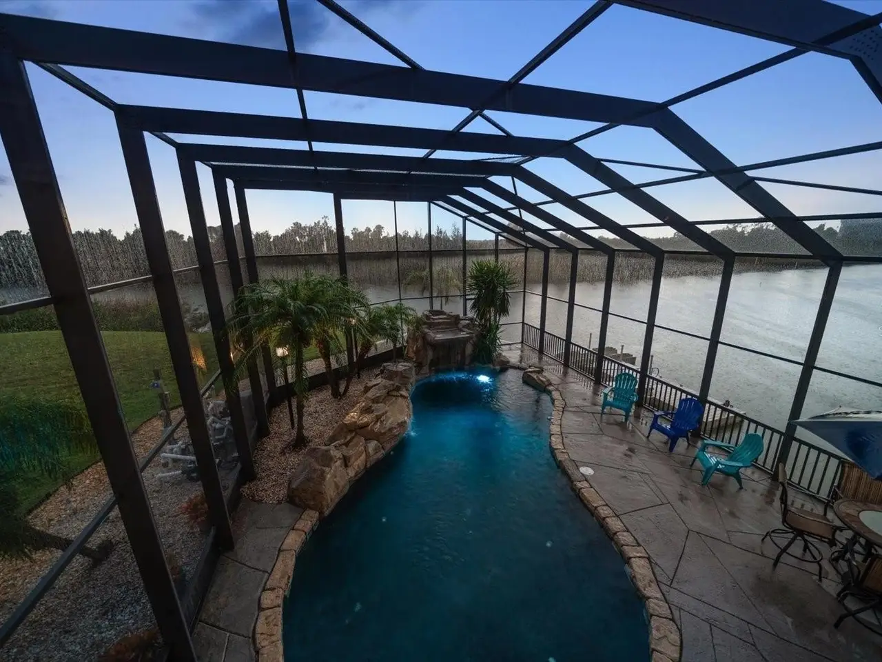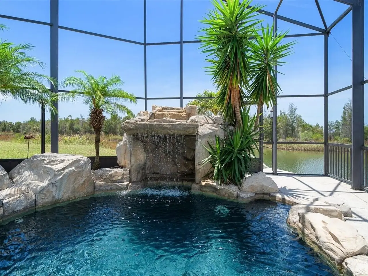• Resort-style saltwater pool with grotto waterfall