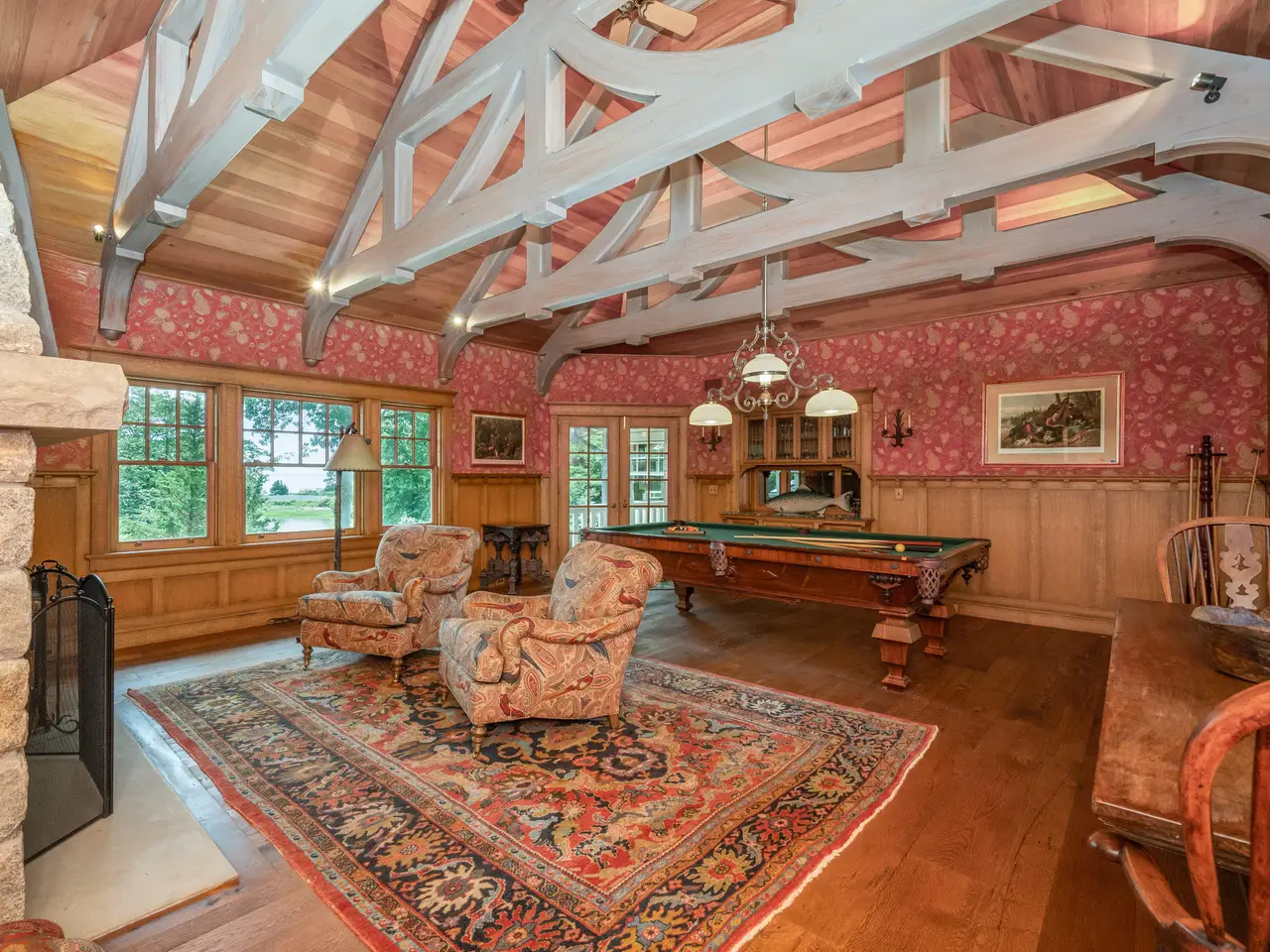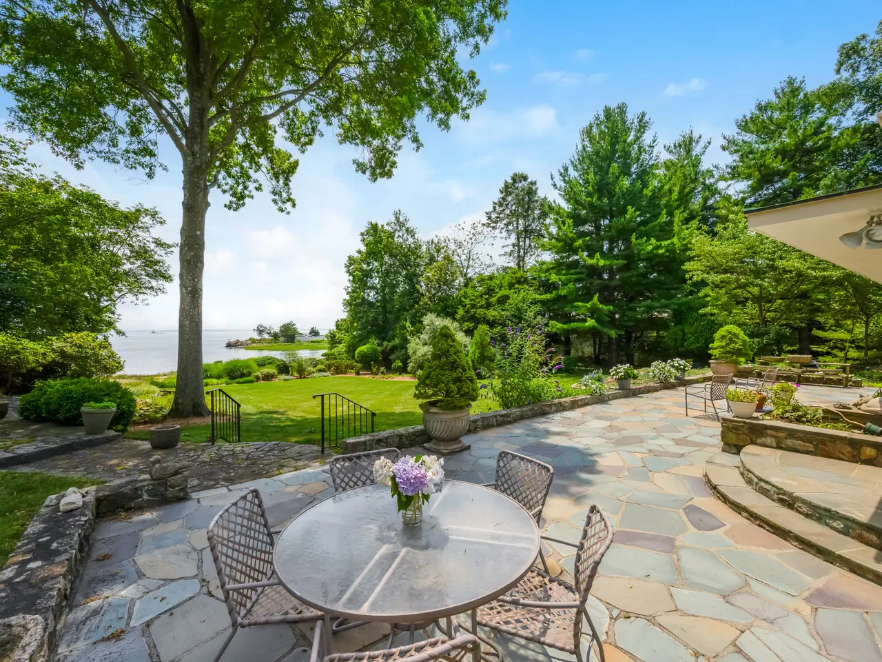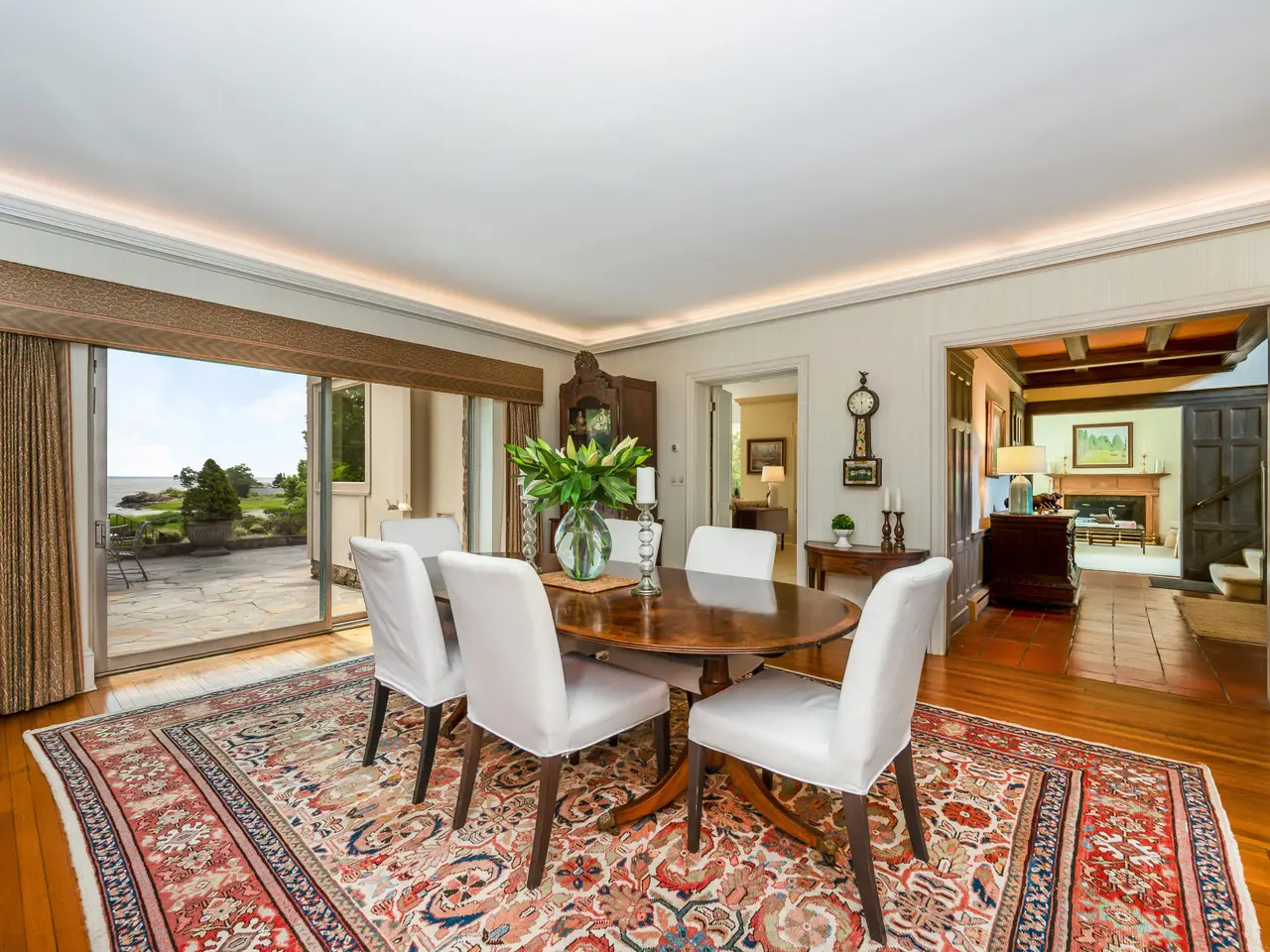 Introducing one of Tokeneke's most iconic waterfront estates-available for the first time in 50 years. This rare and storied compound is set on 2.4 acres of exquisitely landscaped grounds with 180 feet of private shoreline along Long Island Sound. It offers an unrivaled blend of historic charm, timeless elegance, and breathtaking coastal beauty. A sweeping two-story paneled foyer leads to a gracious formal living and dining rooms with soaring ceilings, fireplaces, and uninterrupted views of the water. Sunlight pours into the sophisticated sunroom-an ideal setting for quiet mornings or refined entertaining. The expansive kitchen and breakfast area open seamlessly to a family room with a granite fireplace, while a discreet back stairway leads to a stunning double-height billiards room with vaulted, beamed ceilings. The second floor is anchored by a grand primary suite with an oversized waterfront balcony, offering a private vantage point for sunsets over the Sound. Two additional bedrooms complete this level, with three more on the top floor to accommodate family or guests in style. A separate three-car garage includes a fully finished upper level with a full bath - ideal for a guest suite, gym, or private office. This exceptional estate embodies the quiet prestige of a bygone era, offering privacy, beauty, and unparalleled access to the water-all in the heart of Darien's most coveted private enclave. A once-in-a-generation opportunity to own a true coastal masterpiece.
