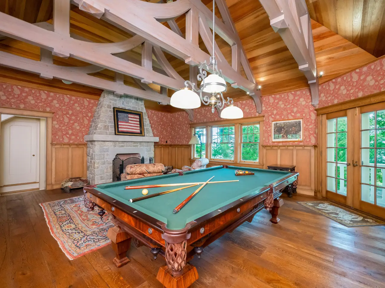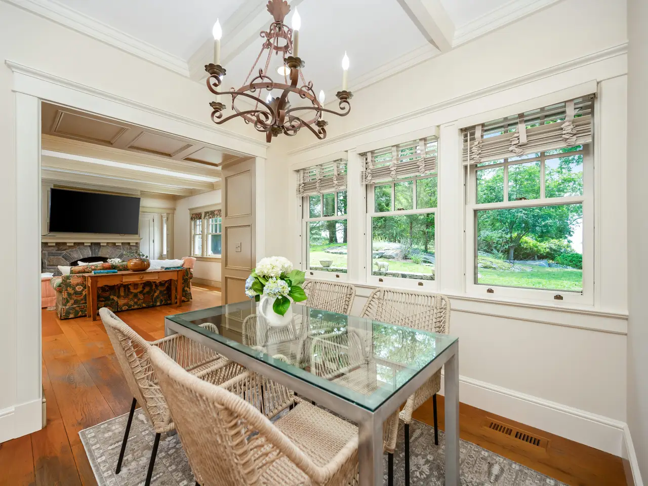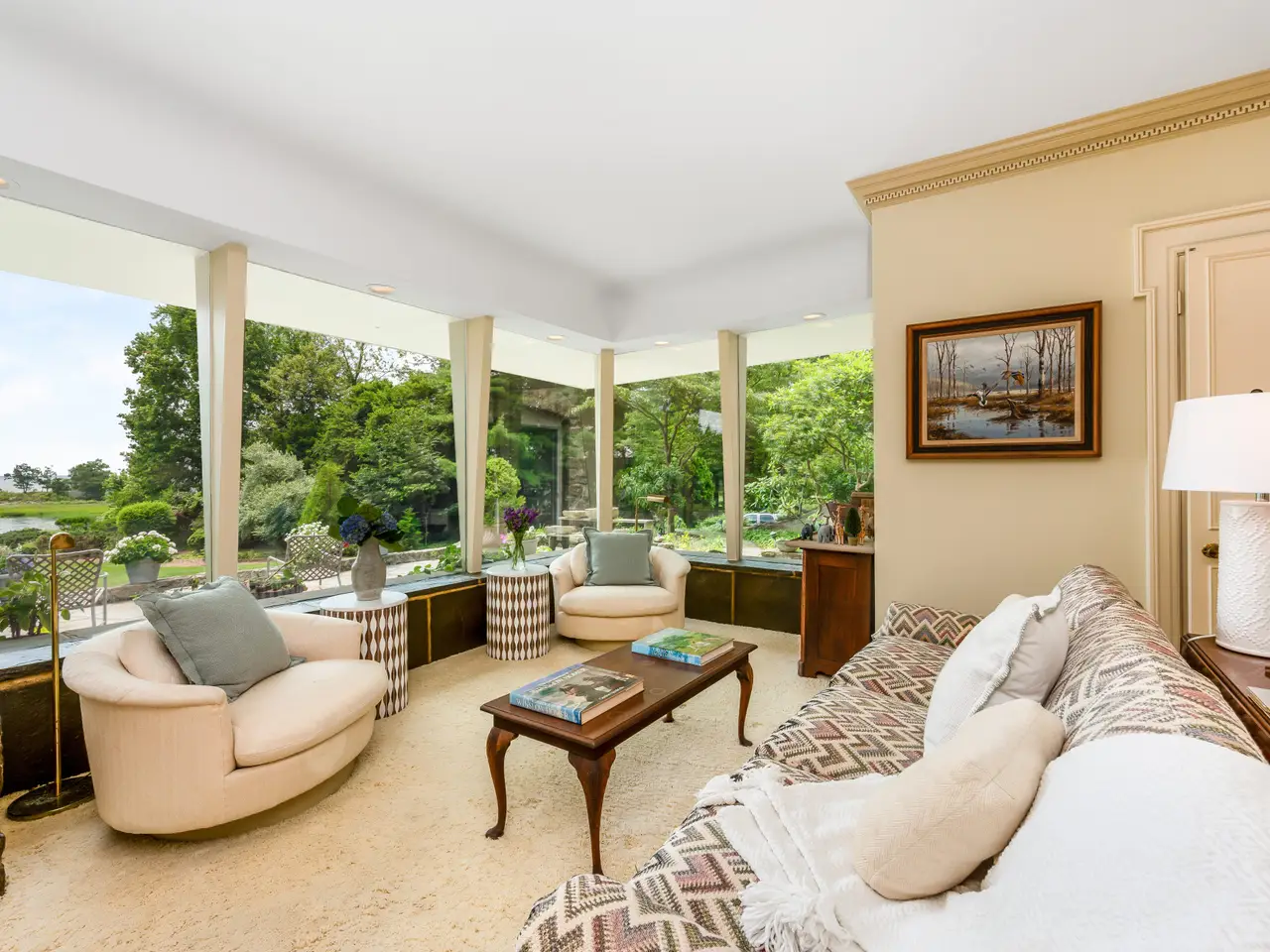 Introducing one of Tokeneke's most iconic waterfront estates-available for the first time in 50 years. This rare and storied compound is set on 2.4 acres of exquisitely landscaped grounds with 180 feet of private shoreline along Long Island Sound. It offers an unrivaled blend of historic charm, timeless elegance, and breathtaking coastal beauty. A sweeping two-story paneled foyer leads to a gracious formal living and dining rooms with soaring ceilings, fireplaces, and uninterrupted views of the water. Sunlight pours into the sophisticated sunroom-an ideal setting for quiet mornings or refined entertaining. The expansive kitchen and breakfast area open seamlessly to a family room with a granite fireplace, while a discreet back stairway leads to a stunning double-height billiards room with vaulted, beamed ceilings. The second floor is anchored by a grand primary suite with an oversized waterfront balcony, offering a private vantage point for sunsets over the Sound. Two additional bedrooms complete this level, with three more on the top floor to accommodate family or guests in style. A separate three-car garage includes a fully finished upper level with a full bath - ideal for a guest suite, gym, or private office. This exceptional estate embodies the quiet prestige of a bygone era, offering privacy, beauty, and unparalleled access to the water-all in the heart of Darien's most coveted private enclave. A once-in-a-generation opportunity to own a true coastal masterpiece.