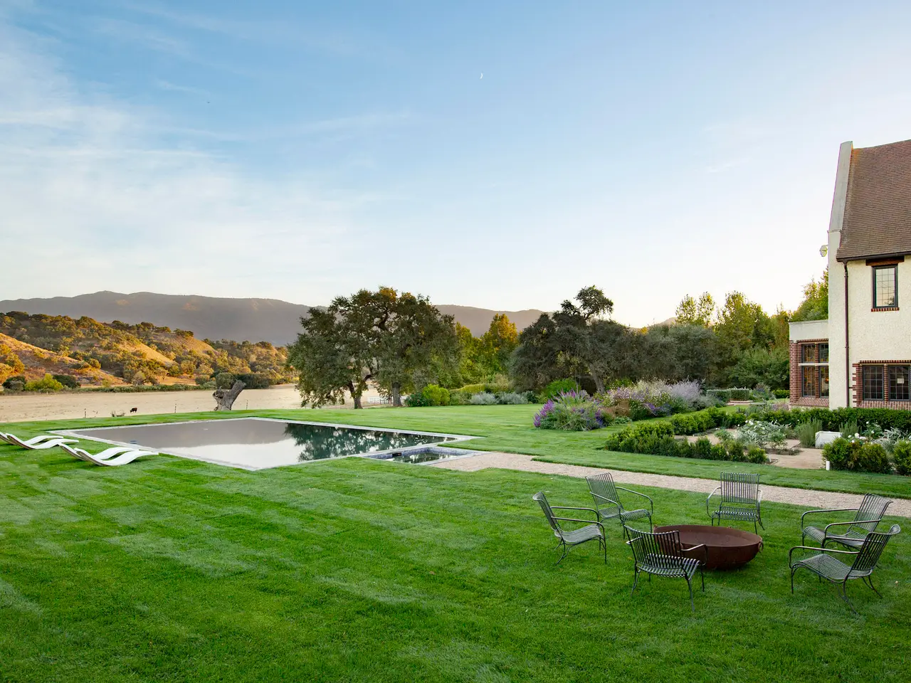 Public Remarks: An enchanting 103+/- acre estate in prestigious Happy Canyon, Santa Ynez, crowned by a residence inspired by classic English manors. Completed in 2022 and reimagined by designer Jane Hallworth, the interiors blend heritage and contemporary elegance. A zero-edge pool overlooks manicured lawns and oak-studded mountains, while the pool house includes an exercise room, four-car garage, and potting room. An allee of sycamores leads to stables bordered by a kitchen garden and Rosa Rugosa hedge. The stables feature pine interiors, 4 stalls, a tack room, and a turret-designed manager's quarters. This private retreat offers breathtaking landscapes and refined living on the Central Coast.