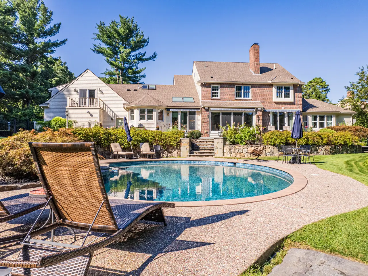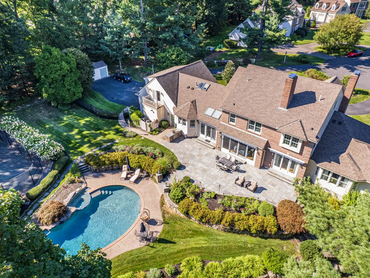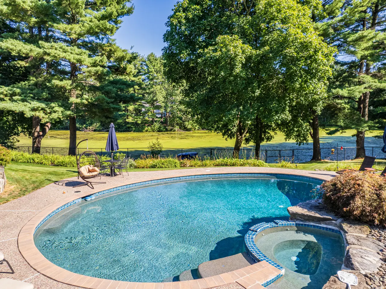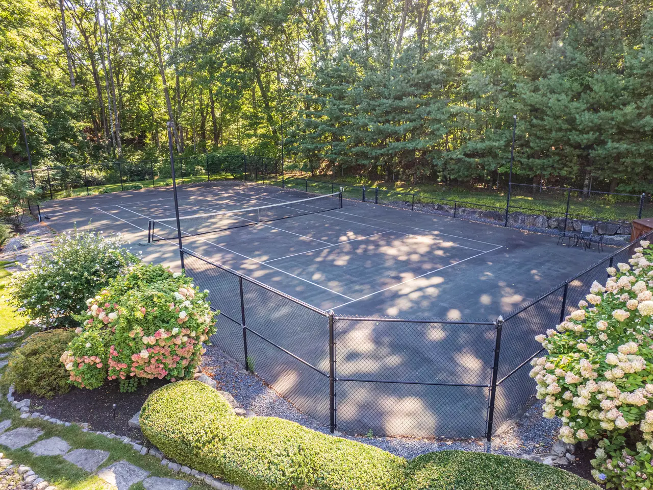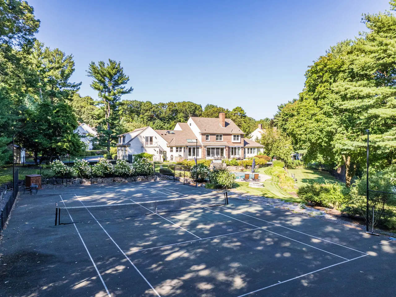 This is a truly spectacular estate nestled on a picturesque cul-de-sac lot abutting Hussey’s Pond. This meticulously crafted 5 bed, 6 bath home features custom built-ins, unique ceiling designs & high-end finishes. The sunken family room impresses w/a stone FP & floor-to-ceiling windows framing breathtaking water views. The fully applianced gourmet kitchen is a chef’s dream w/quartz counters, S/S appliances, skylights & a spacious layout. Enjoy the ease of 1st flr living w/a primary suite w/two walk-in closets & spa-like en-suite bath. The main level also includes a fireplaced living room, formal dining room, study, & laundry room. Upstairs, a large great room, 4 beds & 3 baths including a Jack+Jill provide comfort & flexibility. The finished LL is complete w/a gym, wet bar, 2nd kitchen, & sauna. Step outside to your own private resort, featuring a tennis court, heated pool, hot tub, outdoor kitchen, fire pit, patio w/retractable awning, & lushly landscaped grounds.