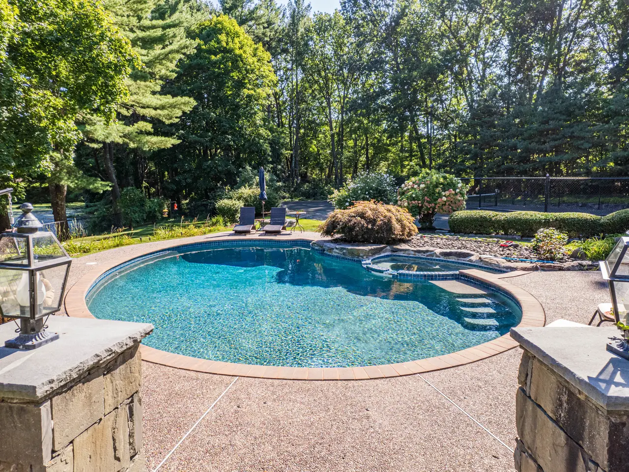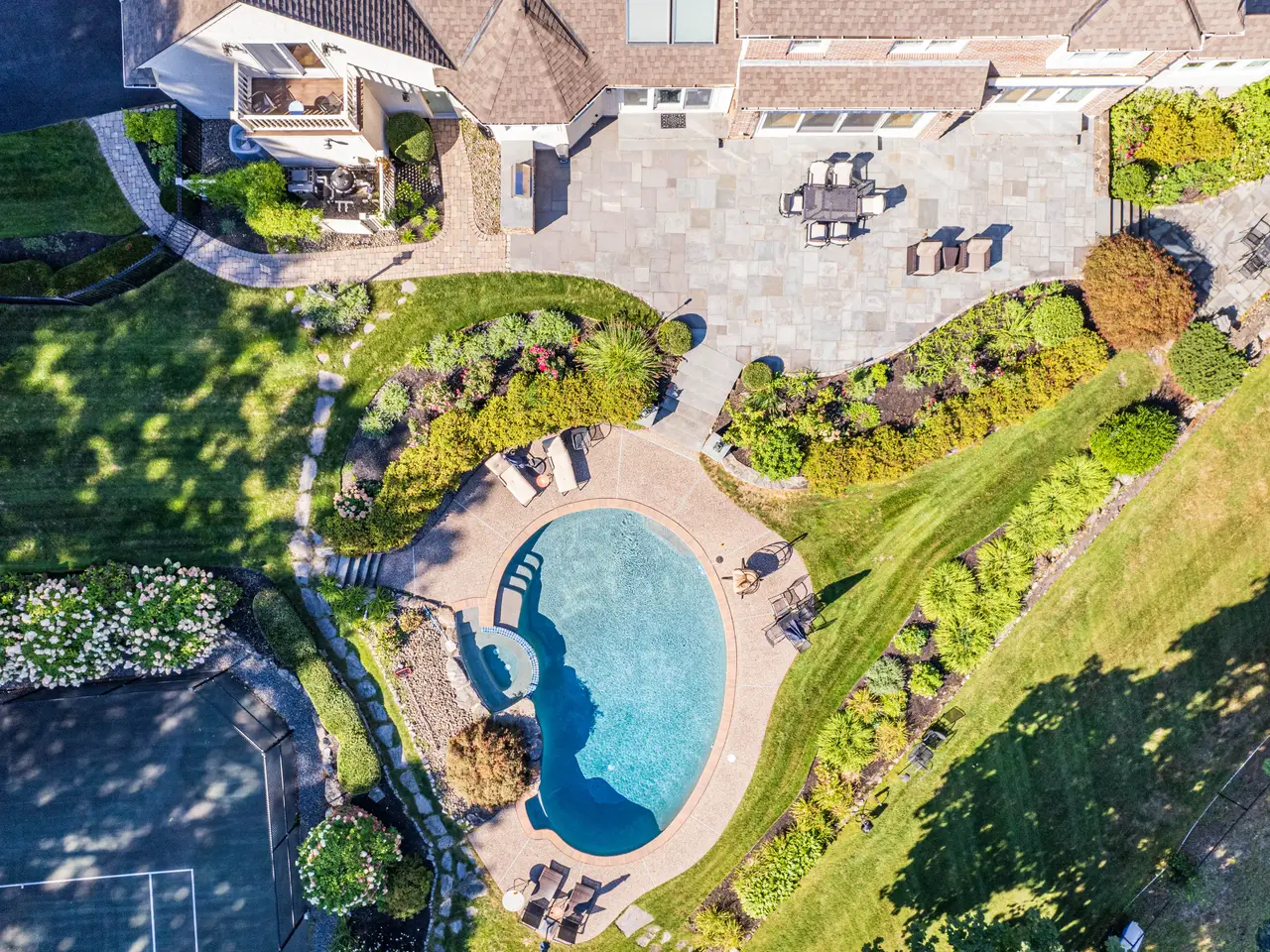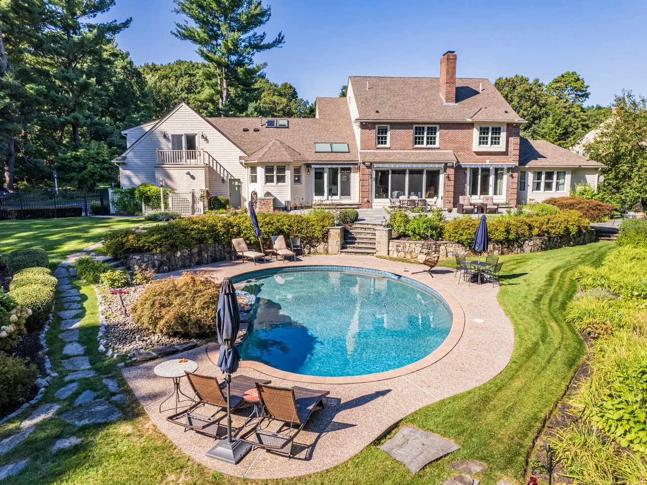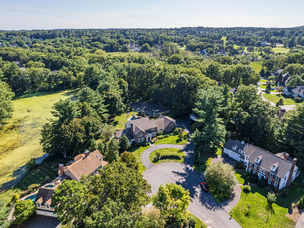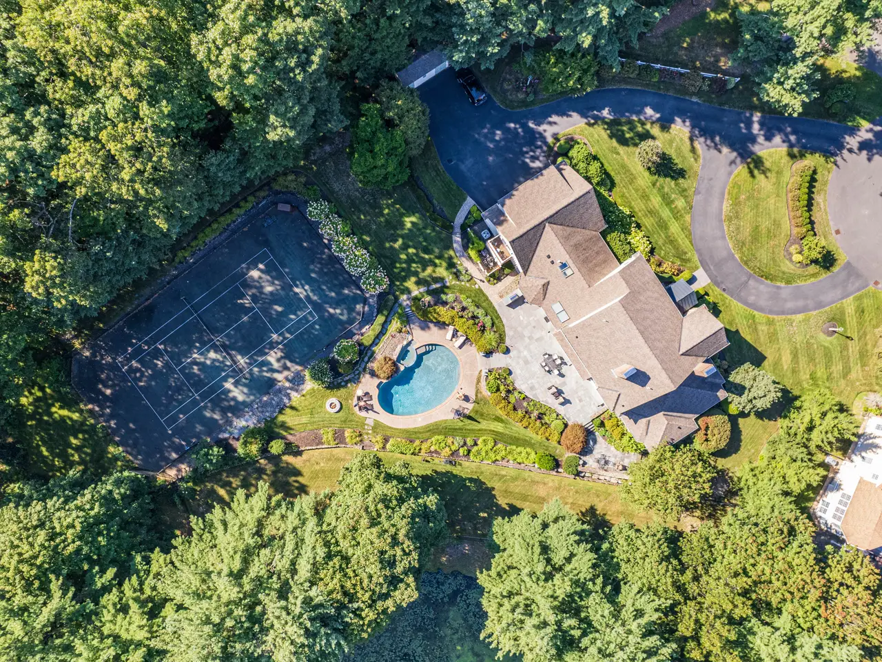 This is a truly spectacular estate nestled on a picturesque cul-de-sac lot abutting Hussey’s Pond. This meticulously crafted 5 bed, 6 bath home features custom built-ins, unique ceiling designs & high-end finishes. The sunken family room impresses w/a stone FP & floor-to-ceiling windows framing breathtaking water views. The fully applianced gourmet kitchen is a chef’s dream w/quartz counters, S/S appliances, skylights & a spacious layout. Enjoy the ease of 1st flr living w/a primary suite w/two walk-in closets & spa-like en-suite bath. The main level also includes a fireplaced living room, formal dining room, study, & laundry room. Upstairs, a large great room, 4 beds & 3 baths including a Jack+Jill provide comfort & flexibility. The finished LL is complete w/a gym, wet bar, 2nd kitchen, & sauna. Step outside to your own private resort, featuring a tennis court, heated pool, hot tub, outdoor kitchen, fire pit, patio w/retractable awning, & lushly landscaped grounds.