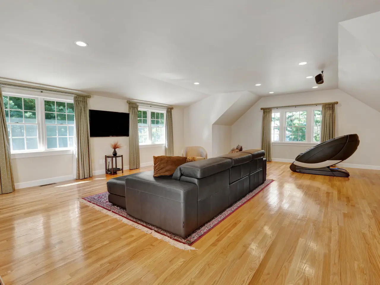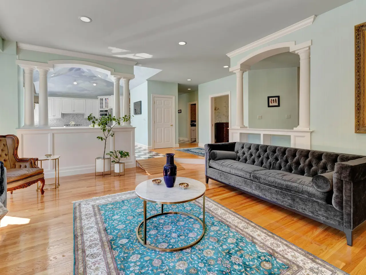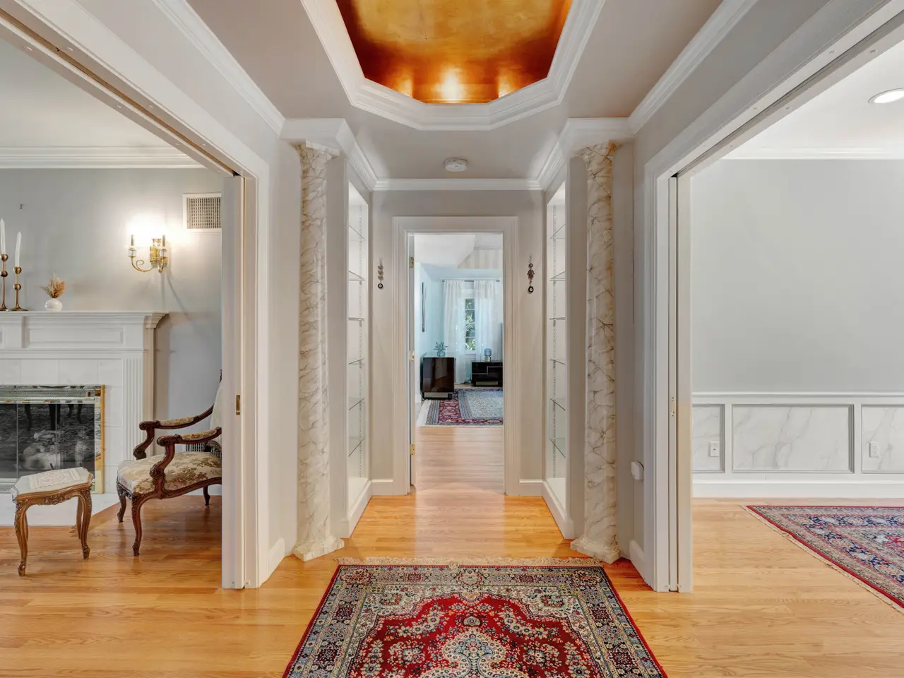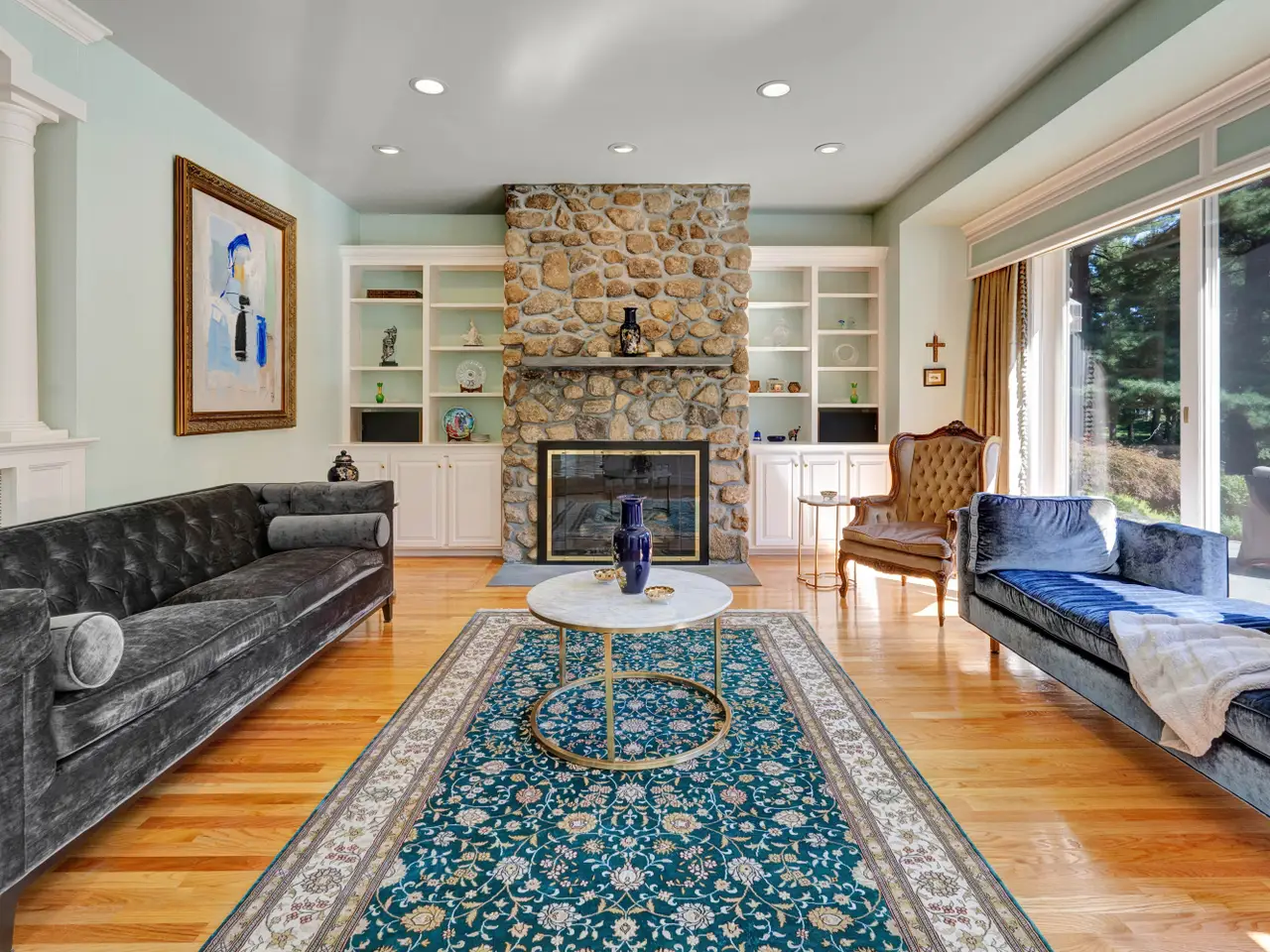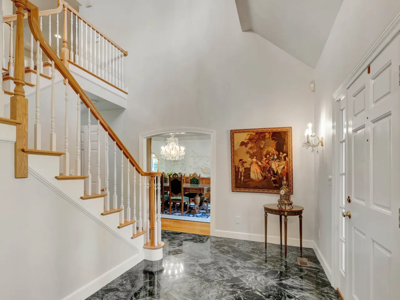 This is a truly spectacular estate nestled on a picturesque cul-de-sac lot abutting Hussey’s Pond. This meticulously crafted 5 bed, 6 bath home features custom built-ins, unique ceiling designs & high-end finishes. The sunken family room impresses w/a stone FP & floor-to-ceiling windows framing breathtaking water views. The fully applianced gourmet kitchen is a chef’s dream w/quartz counters, S/S appliances, skylights & a spacious layout. Enjoy the ease of 1st flr living w/a primary suite w/two walk-in closets & spa-like en-suite bath. The main level also includes a fireplaced living room, formal dining room, study, & laundry room. Upstairs, a large great room, 4 beds & 3 baths including a Jack+Jill provide comfort & flexibility. The finished LL is complete w/a gym, wet bar, 2nd kitchen, & sauna. Step outside to your own private resort, featuring a tennis court, heated pool, hot tub, outdoor kitchen, fire pit, patio w/retractable awning, & lushly landscaped grounds.