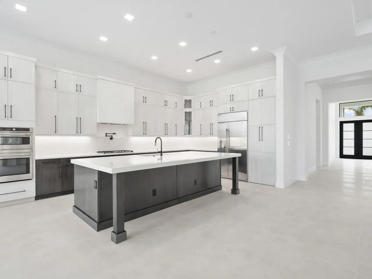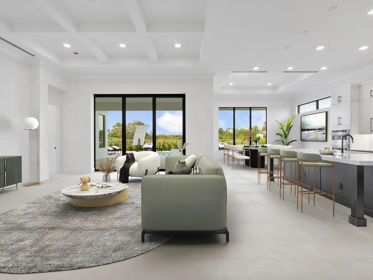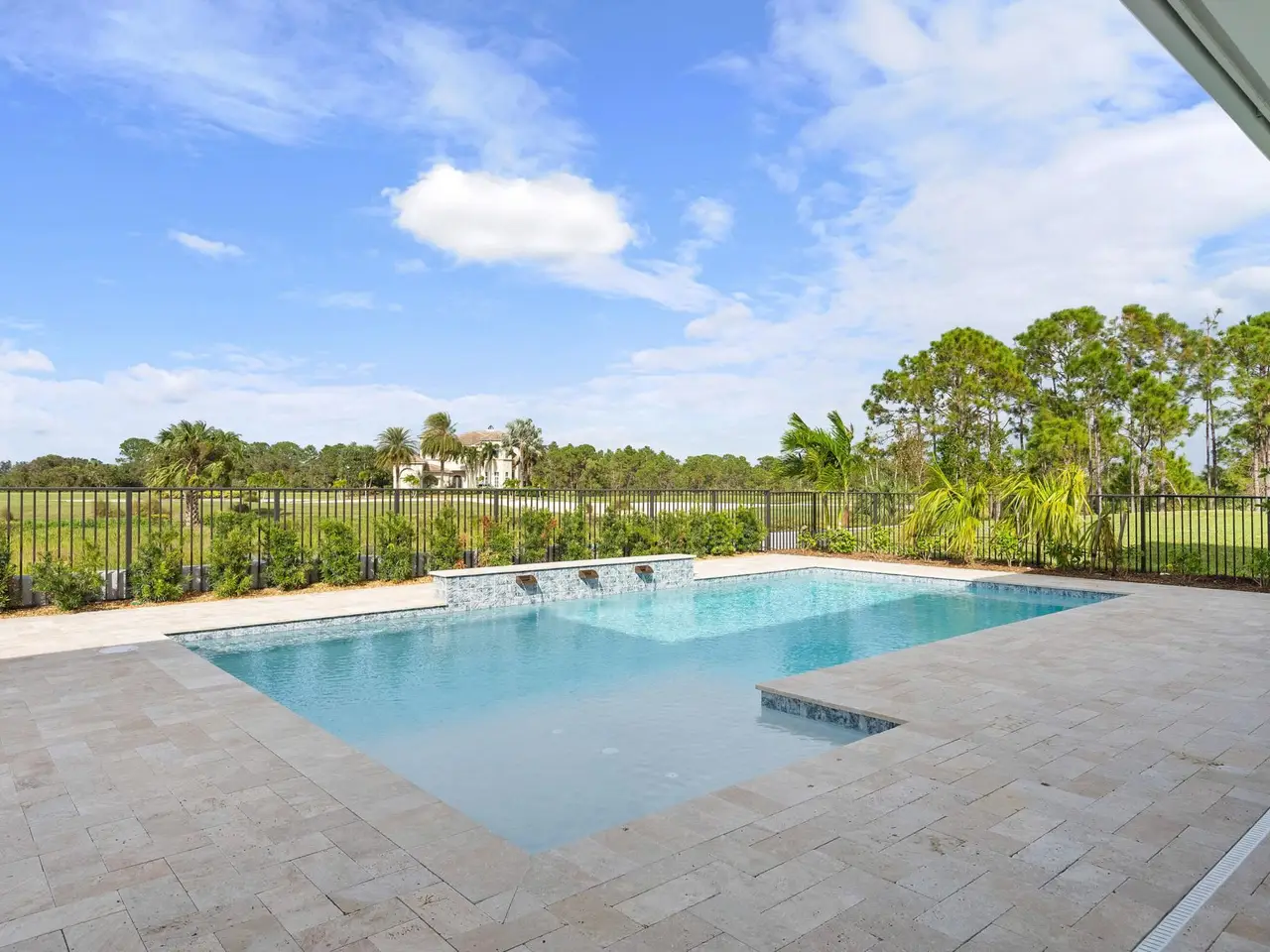 This home is located in the heart of Tesoro, the Treasure Coasts premier golf club. The Keenan presents the perfect design and layout that enhances that Florida lifestyle. Entertaining at its best with a large oversized back covered patio including travertine pavers and a professionally designed pool enhanced with sun shelf and a water feature. Other outstanding finishes include 12ft. volume ceilings, oversized club room with wet bar, spacious kitchen including butlers pantry, oversized center island, stacked cabinets, Cafe appliances including 42 built-in refrigerator, wall oven/microwave combo, washer & dryer and 32 x 32 tile flooring throughout. This home is located on a perfect lot in a premier golf club community of Tesoro, offering an impressive coastal-contemporary design