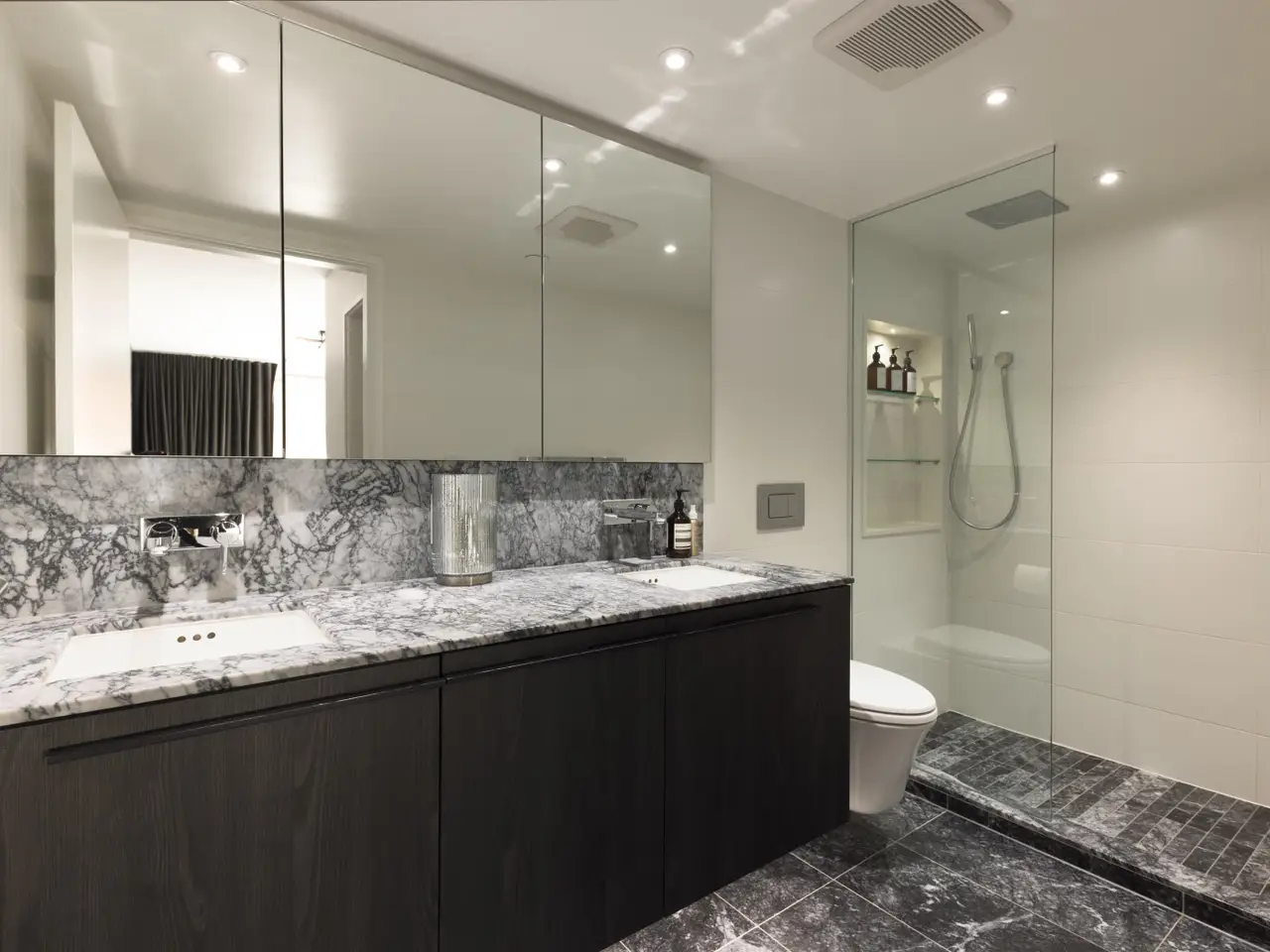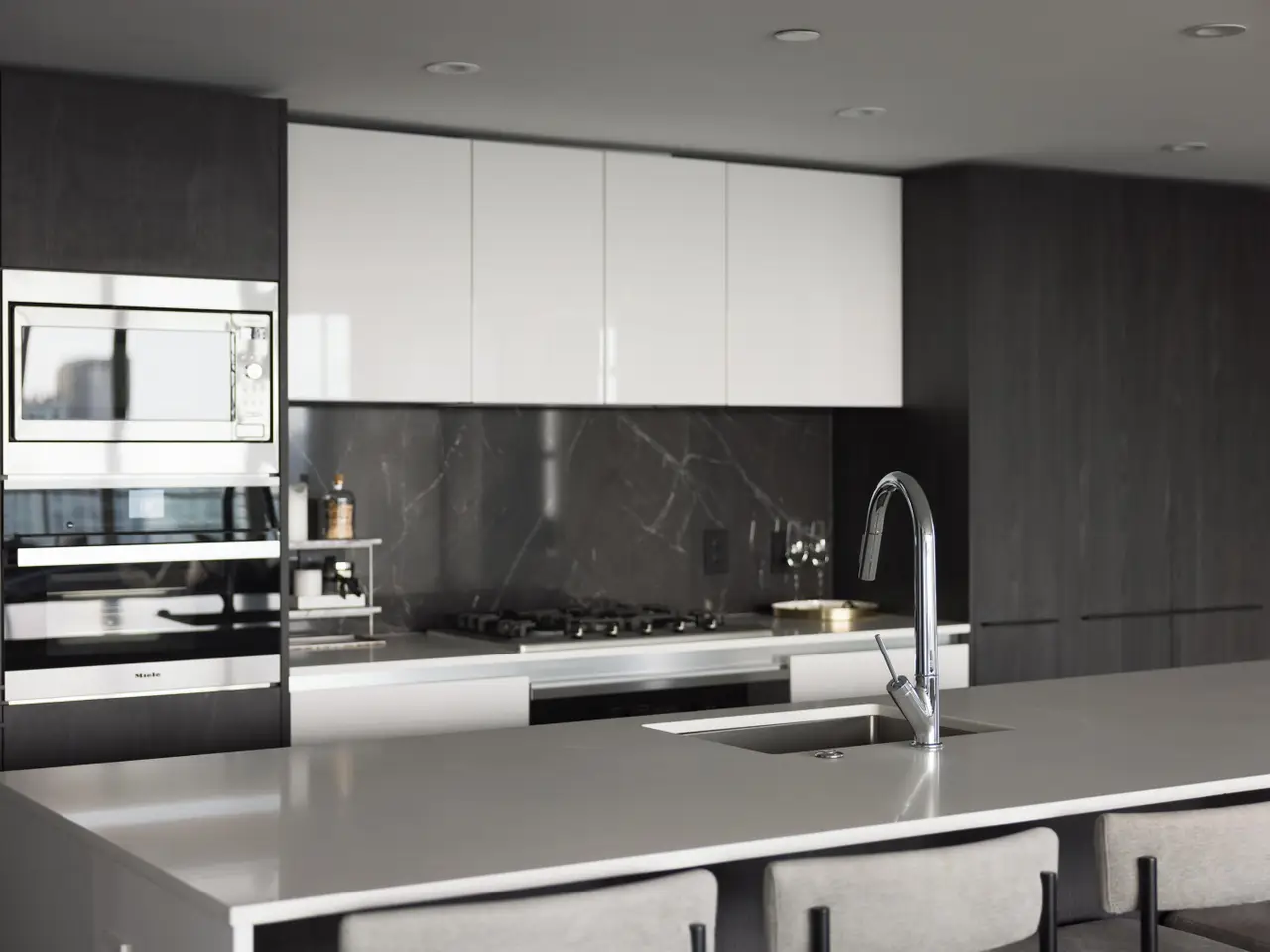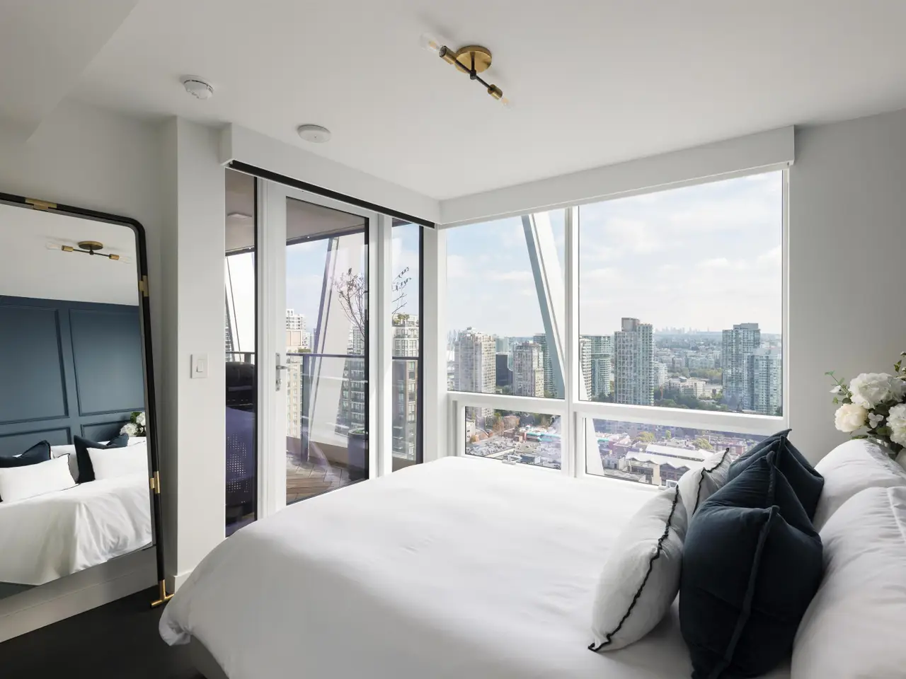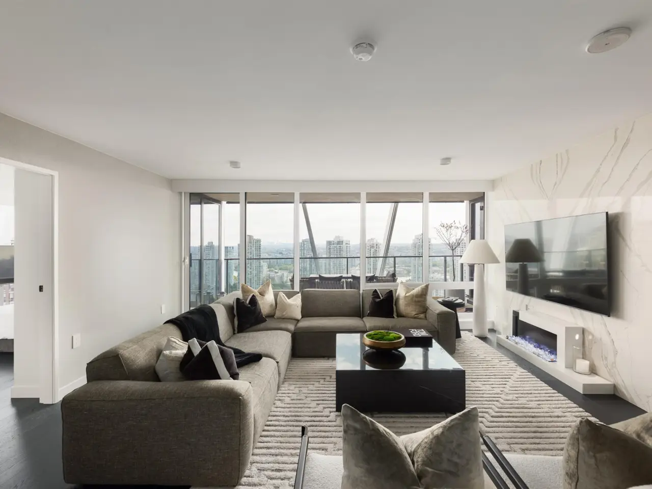 Elevated & updated corner home at 8X on the Park with panoramic views of False Creek, city, and mountains. This refined 3 bed, 2 bath residence features a 10ft natural stone island, integrated Miele appliances, custom millwork, powered blinds, and floor-to-ceiling windows. The open plan flows to an oversized covered patio with herringbone wood decking. Elegant bedrooms, a reimagined walk-in closet, engineered hardwood, natural tile, & A/C throughout complete the home. Includes 2 side-by-side parking, storage, and bike locker. Enjoy world-class amenities: concierge, fitness centre, and rooftop oasis. A rare, turnkey offering in one of Vancouver's premier buildings.