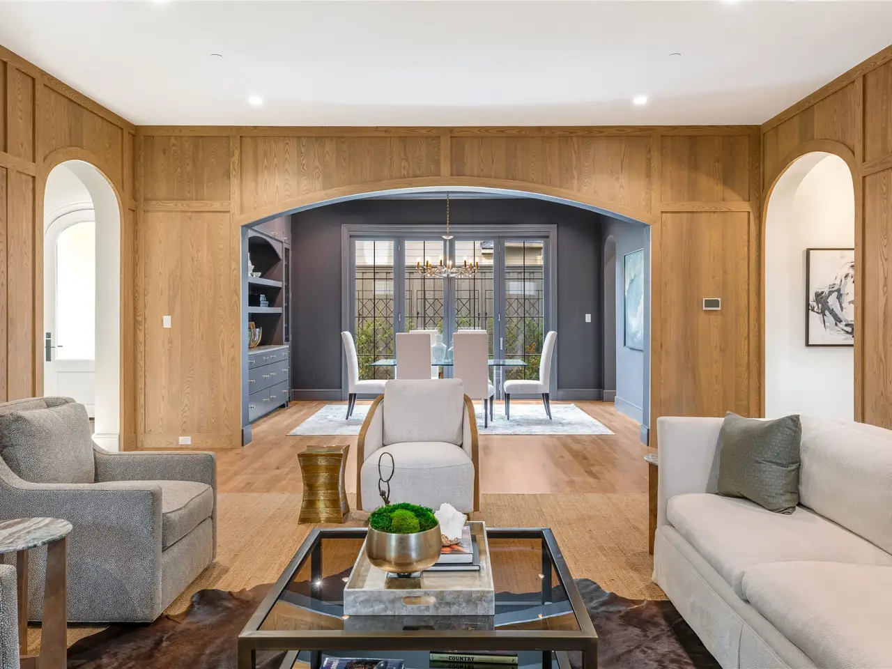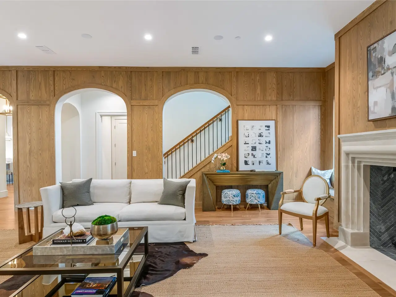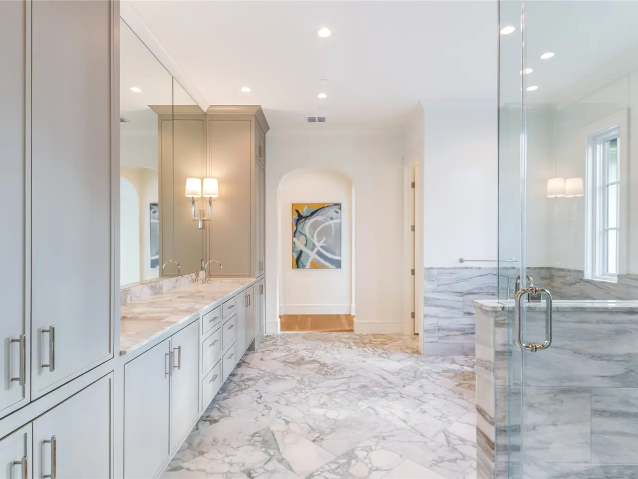 An exceptional new-construction estate located at 4104 Greenbrier Dr, University Park, TX 75225, is now available for purchase, with completion expected in late summer 2025 by Campbell Custom Homes. This transitional-style residence offers approximately 6,000 square feet of elegant living space, featuring 5 bedrooms and 5.2 baths. A striking covered entry corridor with a tranquil water fountain feature leads to the front door, creating a serene and memorable first impression. Inside, a light-filled foyer welcomes you, flanked by a formal living room with an adjoining office or library and a warm, wood-paneled family roomboth connected by a stylish walk-through bar. The home also includes a sophisticated dining room with a built-in buffet and china cabinet, seamlessly flowing into a chef’s kitchen outfitted with wolf & sub-zero appliances, a white oak island, oversized fireplace, adjacent scullery, and a beautifully finished walk-in pantry. Upstairs, the luxurious primary suite serves as a private retreat, complete with a cozy sitting area, spa-inspired bathroom, and a convenient coffee bar at the entry. Expansive nano doors open to a spacious backyard, perfect for indoor-outdoor living. Located within the highly sought-after Highland Park ISD and zoned to Hyer Elementary, this property offers luxury living, top-tier education access, walkability to Preston Centers shops and restaurants, and timeless design in the heart of University Park.