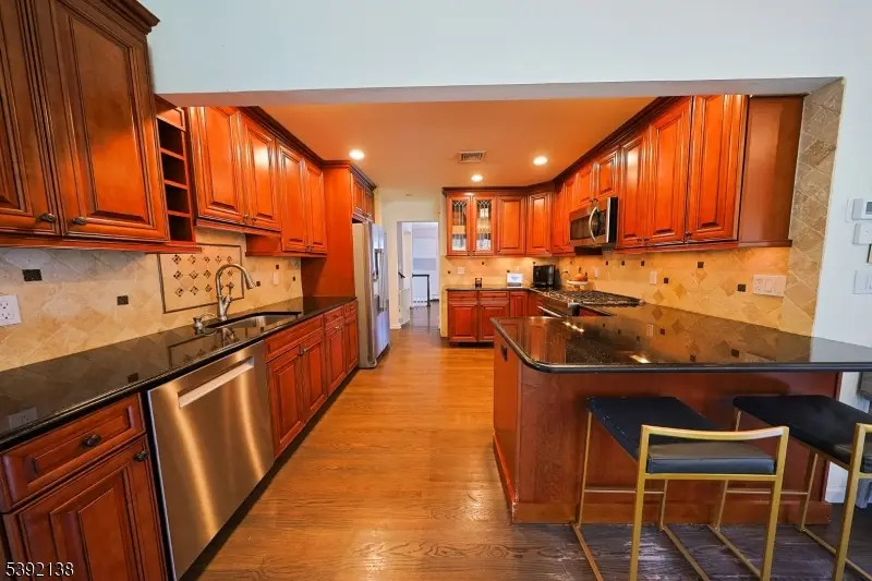 Welcome to this stunning residence boasting 4 spacious bedrooms and 2.1 beautifully appointed baths. Set on a flat park like lot in one of Florham Park's most sought after neighborhoods nestled on a quiet tree lined street. Enjoy a bright open floor plan ideal for modern living. This home greets you with an elegant foyer, with designer marble flooring leading into a sundrenched living room with fireplace and formal dining room with hardwood floors throughout. The updated kitchen offers custom cabinetry, stone countertops, new stainless steel appliances, and is open to the family room with a soaring cathedral ceiling, and a sunlit wall of windows, overlooking impressive yard. Direct access from family room to your own tranquil retreat with an expansive deck and a tree lined yard with no rear neighbors. The ultimate in privacy, relaxation and entertaining. The primary bedroom suite features a grand custom outfitted closet and a beautiful designer bath with double vanity and spa shower. Three more generous bedrooms on the same level, sharing a large full bath with double vanity and shower over tub. Two car attached garage walks into a large outfitted mudroom with custom built-in's, laundry room, and beautiful marble flooring. Spacious unfinished, lower level, which is perfect for recreation, exercise room, media room, or office. In close proximity to highly rated schools, as well as golf course, shopping, town, restaurants, and all major roads.