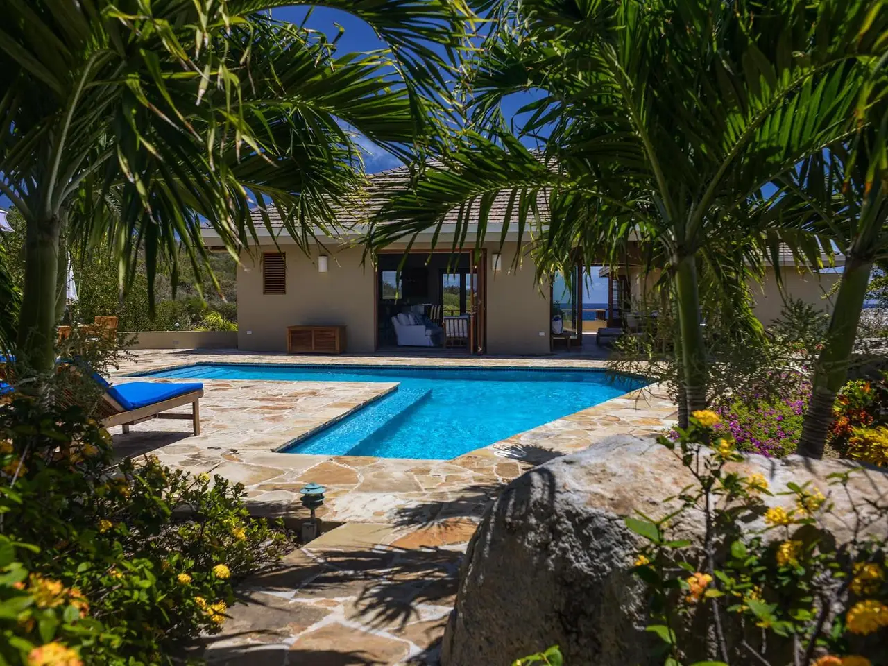 <iframe src="https://my.matterport.com/show/?m=CYJ1ds1XgV6" width="853" height="480" frameborder="0" allowfullscreen="allowfullscreen"></iframe><br /> <br /> <iframe src="https://my.matterport.com/show/?m=hQyUWGdqvtw" width="853" height="480" frameborder="0" allowfullscreen="allowfullscreen"></iframe><br /> <br /> ‘Calypso Villa’ is one of Virgin Gorda’s finest luxury villas; fully renovated in 2018. Quietly nestled among magnificent boulders and beautiful vegetation, the property is very private and welcoming. Built on a large land lot, the property is very private and peaceful.<br /> <br /> The house was designed and situated on the property to take advantage of prevailing trade winds and to maximize the panoramic views of the Caribbean Sea. Calypso’s thoughtful design provides numerous shaded porches where guests can escape the mid-day heat as well as a sun drenched pool deck that is the ideal spot for fun in the sun.<br /> <br /> Calypso’s living spaces feature walls of folding glass doors that allow for the very best in Caribbean indoor-outdoor living. Calypso’s outdoor spaces feature high quality teak furniture with plenty of seating options. As you soak up the sun or relax in the shade you will be surrounded by the villa’s mature tropical gardens filled with flowers, cacti, and fruit trees. A few hours spent chilling in Calypso’s pool is the perfect way to take in all this incredible property has to offer.<br /> <br /> Calypso Villa has a fully equipped chef’s kitchen with granite countertops and stainless steel appliances. You can also enjoy gas and charcoal BBQ grills on the pool deck. This house is particularly well equipped and as a result makes for a truly comfortable vacation experience.<br /> <br /> Calypso Villa is a 3-bedroom, 3½ bathroom house featuring large interiors and expansive outdoor decks and patios.<br /> Each bedroom has it’s own private bathroom and outdoor spaces feature high quality teak furniture with plenty of seating options.<br /> <br /> This house is great for sharing because each bedroom is like a master suite. Two of the bedrooms feature king-sized mattresses and two of the bathrooms have additional outdoor showers. The third bedroom has two queen-sized beds. This configuration offers lots of flexibility for families with children. All of the bedrooms are equipped with air conditioning and have flat panel televisions.<br /> <br /> Calypso Villa is a fenced and gated property located in the exclusive residential neighborhood of Crooks Bay near the Baths in Virgin Gorda. The house is a short walk to the beach at Crook’s Bay. This villa is ideally located within a 5 minutes drive from a dozen restaurants, the Virgin Gorda Yacht Harbor, all of the island’s grocery stores, and a ½ dozen world-class beaches including The Baths, Spring Bay, and Little Trunk Bay. The location is ideal for enjoying the very best of Virgin Gorda. We know you will love it at Calypso Villa!!