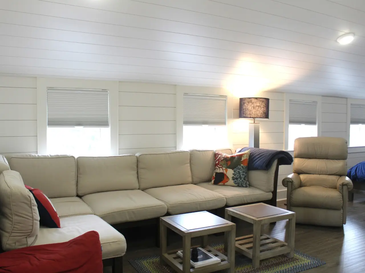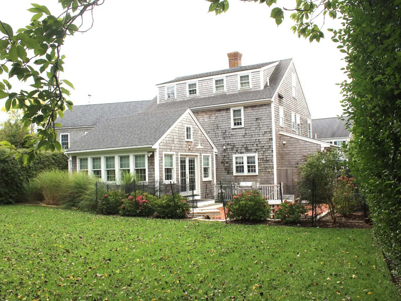 Welcome to this delightful four bedroom, two full and two half bath home nestled in the highly sought-after Naushop community of Nantucket. This residence offers an inviting blend of spacious living and comfort across three levels. As you enter, you're greeted by the front living room, complete with a cozy fireplace, offering a warm and welcoming space to unwind. The mudroom and laundry room are just off the beautifully appointed kitchen featuring white cabinetry and a breakfast bar, perfect for casual dining. The adjacent dining area boasts sliding glass barn doors that open into the expansive great room, showcasing a vaulted ceiling and access to the outdoor brick patio through French doors, ideal for entertaining or al fresco dining. The primary suite on the second floor is a true sanctuary, featuring his and her closets and a full bath with tub/shower combination. Two additional bedrooms share a hall bath (tub/shower), while an inviting staircase leads to the spacious third floor, currently utilized as a sitting room and extra bedroom, complete with its own half bath. This home is further enhanced by a large unfinished basement, offering ample storage and potential for customization. Outside, the step-down brick patio and outdoor shower create a perfect setting for "Apres beach" living, while the lush elevated lawn area backs up to 7 acres of private land owned by the Nantucket land bank. The Naushop Homeowners' Association provides membership to the community clubhouse. The neighborhood amenities include a newly renovated, heated pool for adults, a kiddie pool, synthetic turf tennis courts, a pickleball court, a Little Free Library, and a playground.