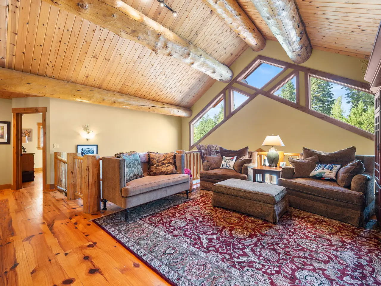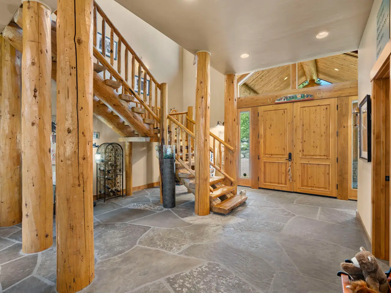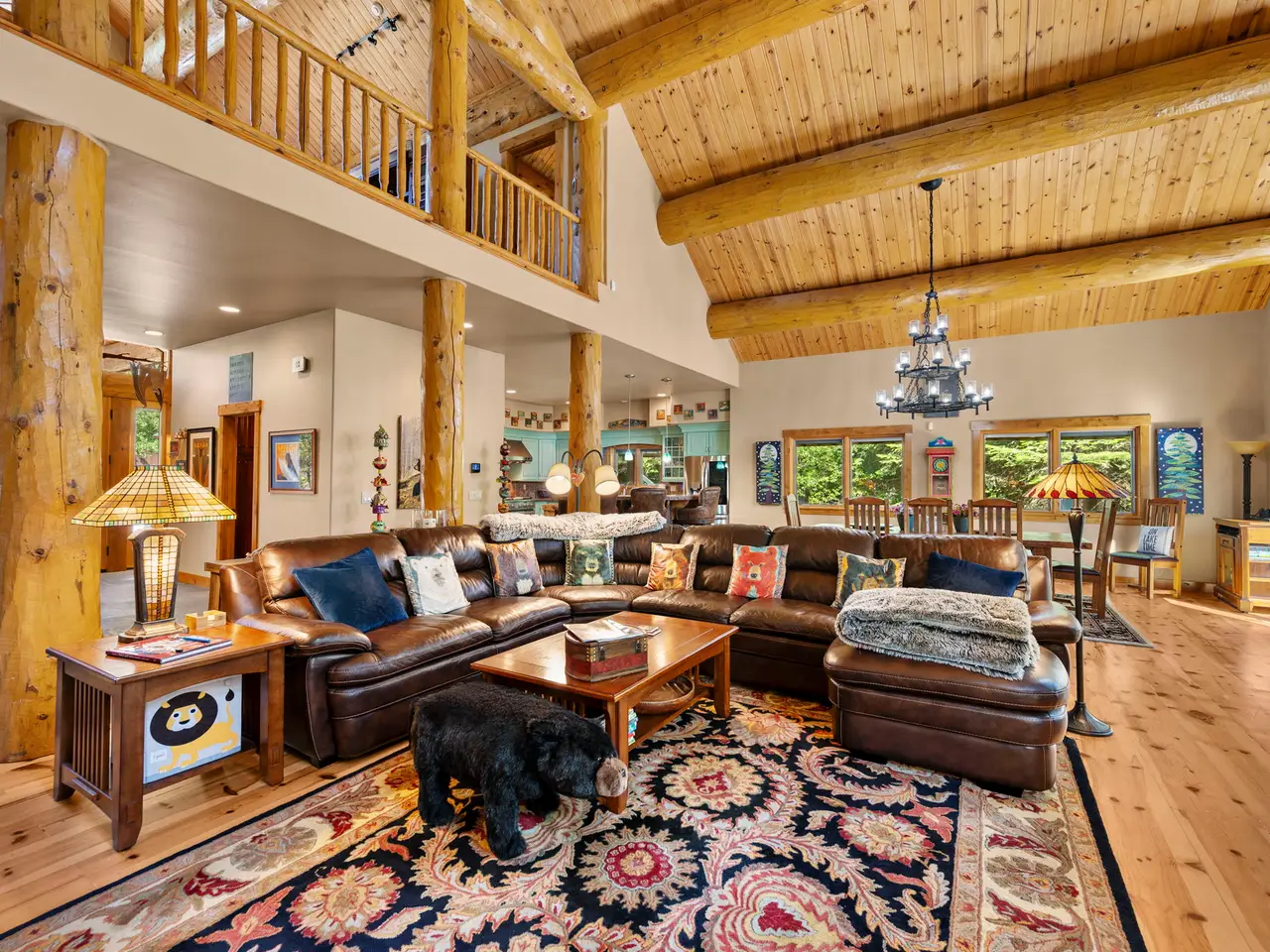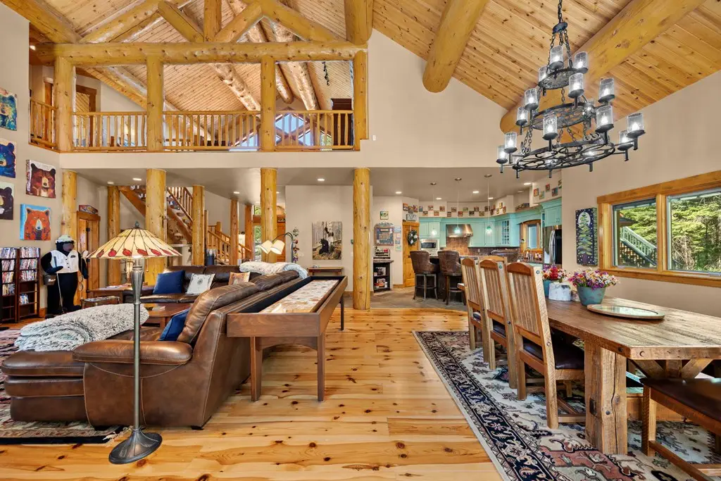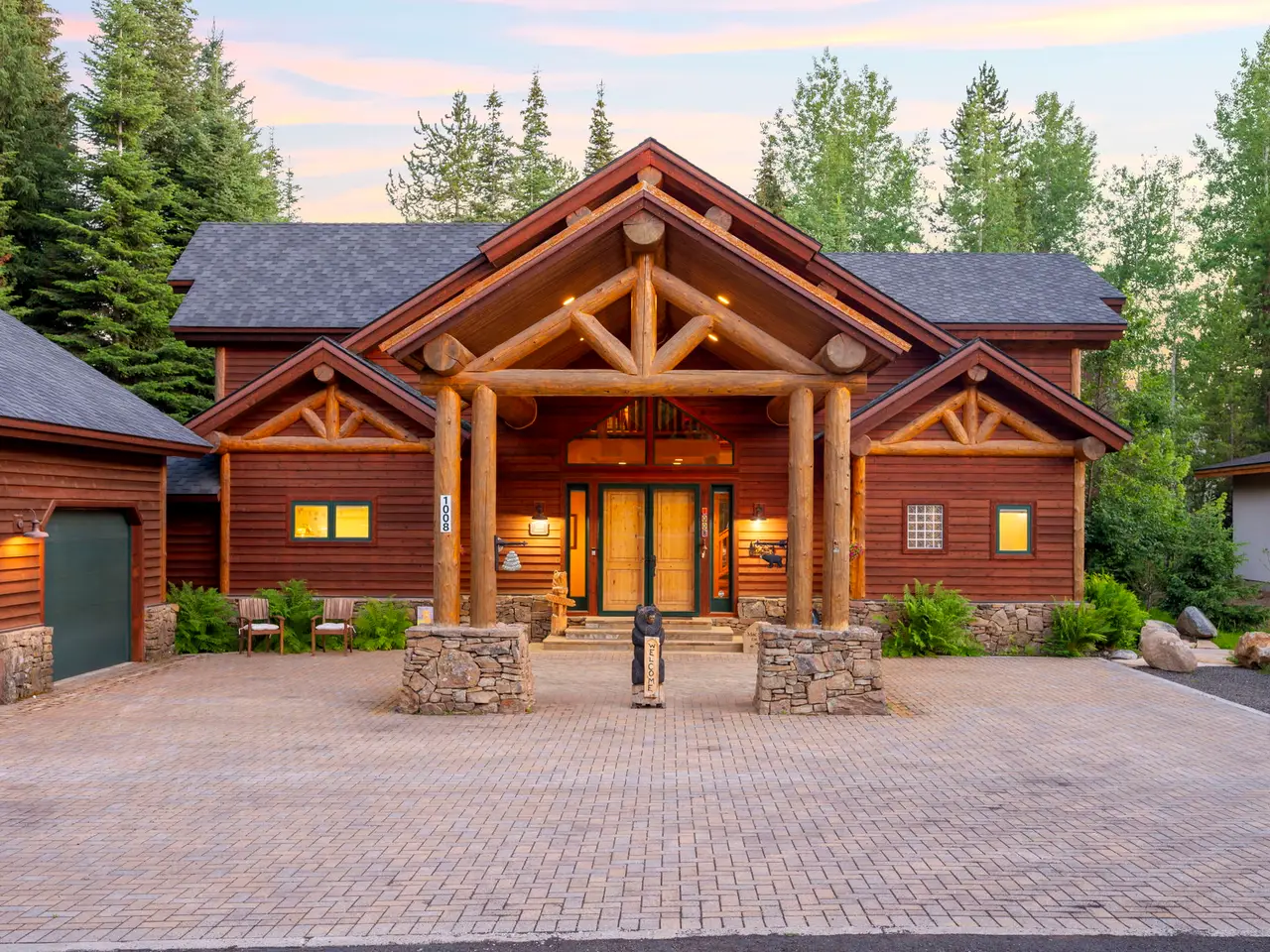 • Custom log architecture with impressive log beams