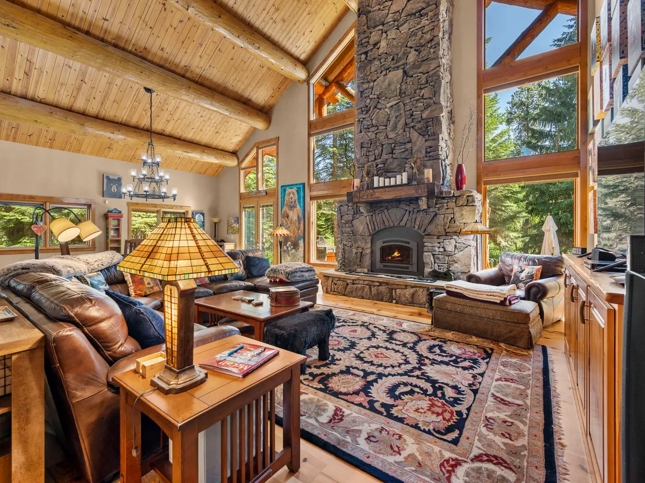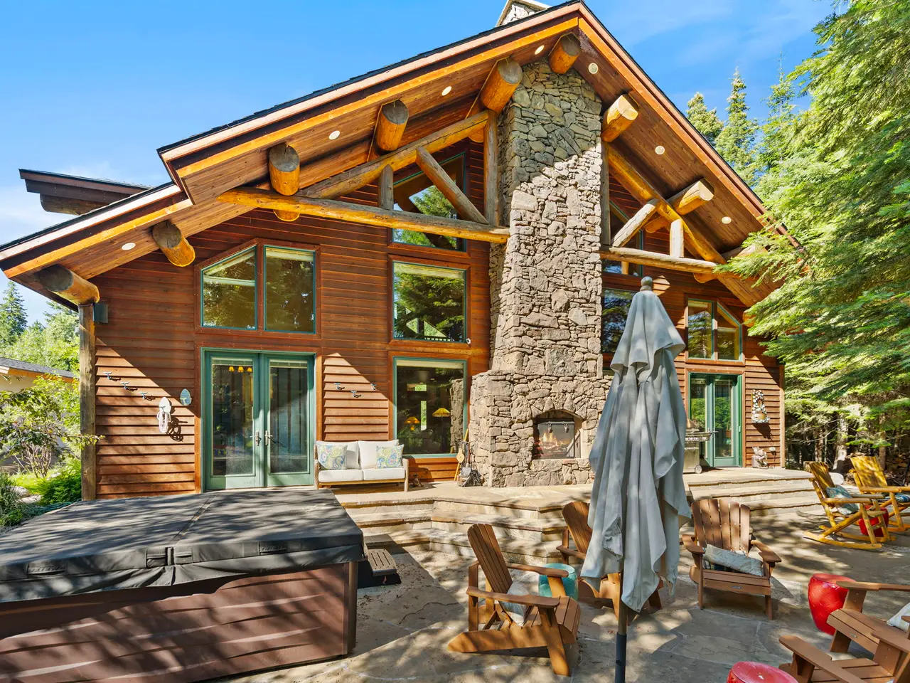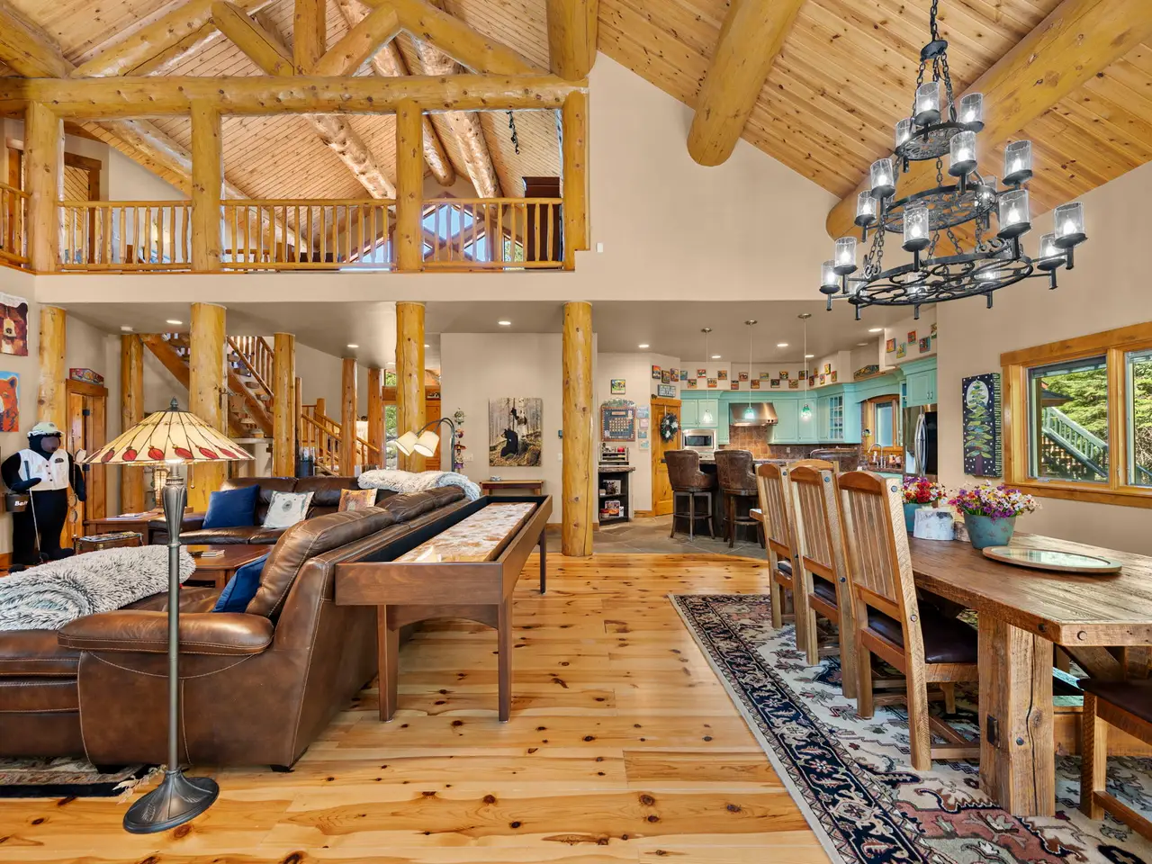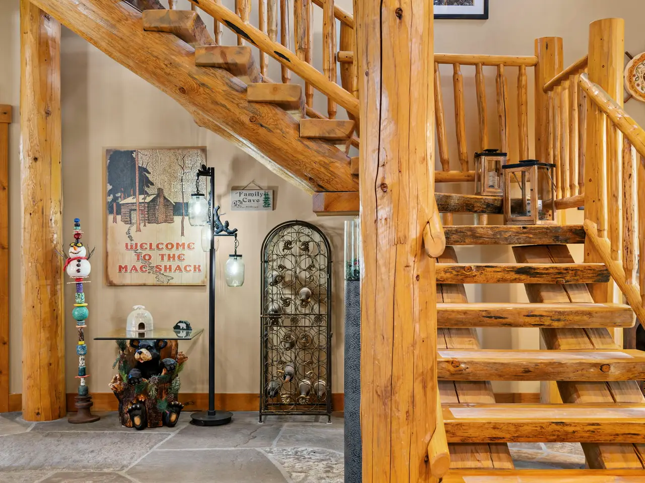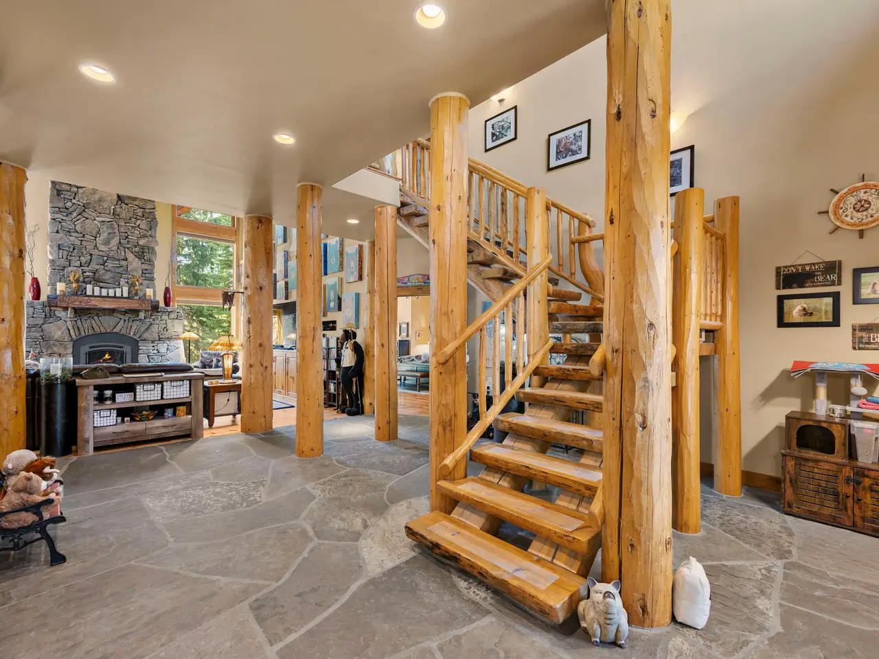 • Custom log architecture with impressive log beams