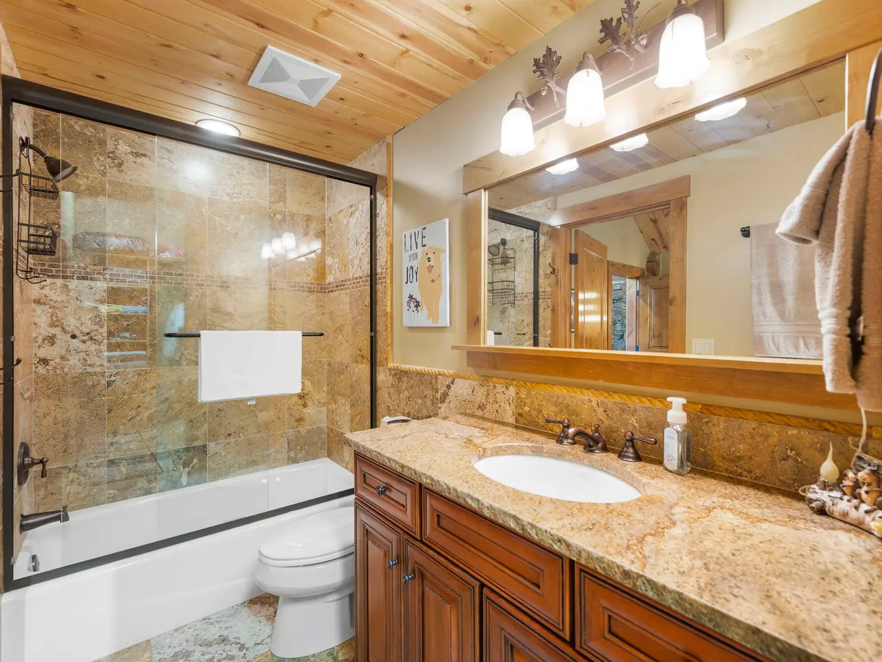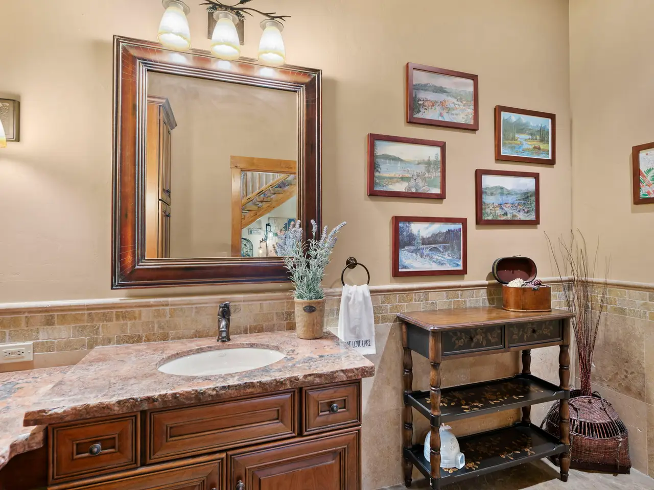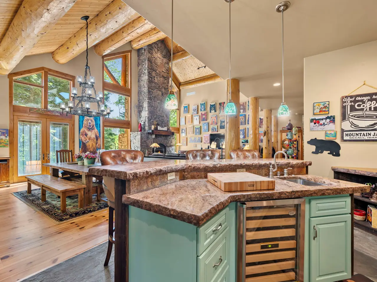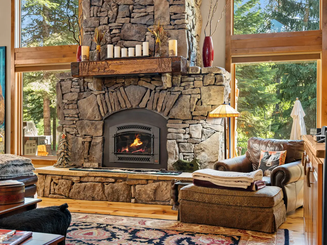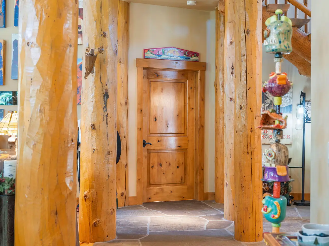 • Custom log architecture with impressive log beams