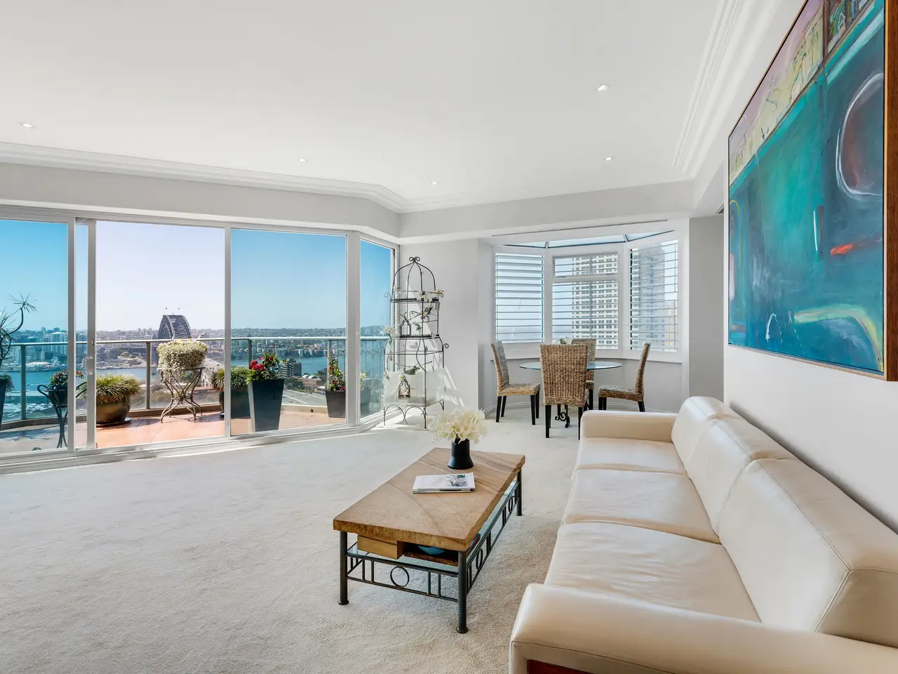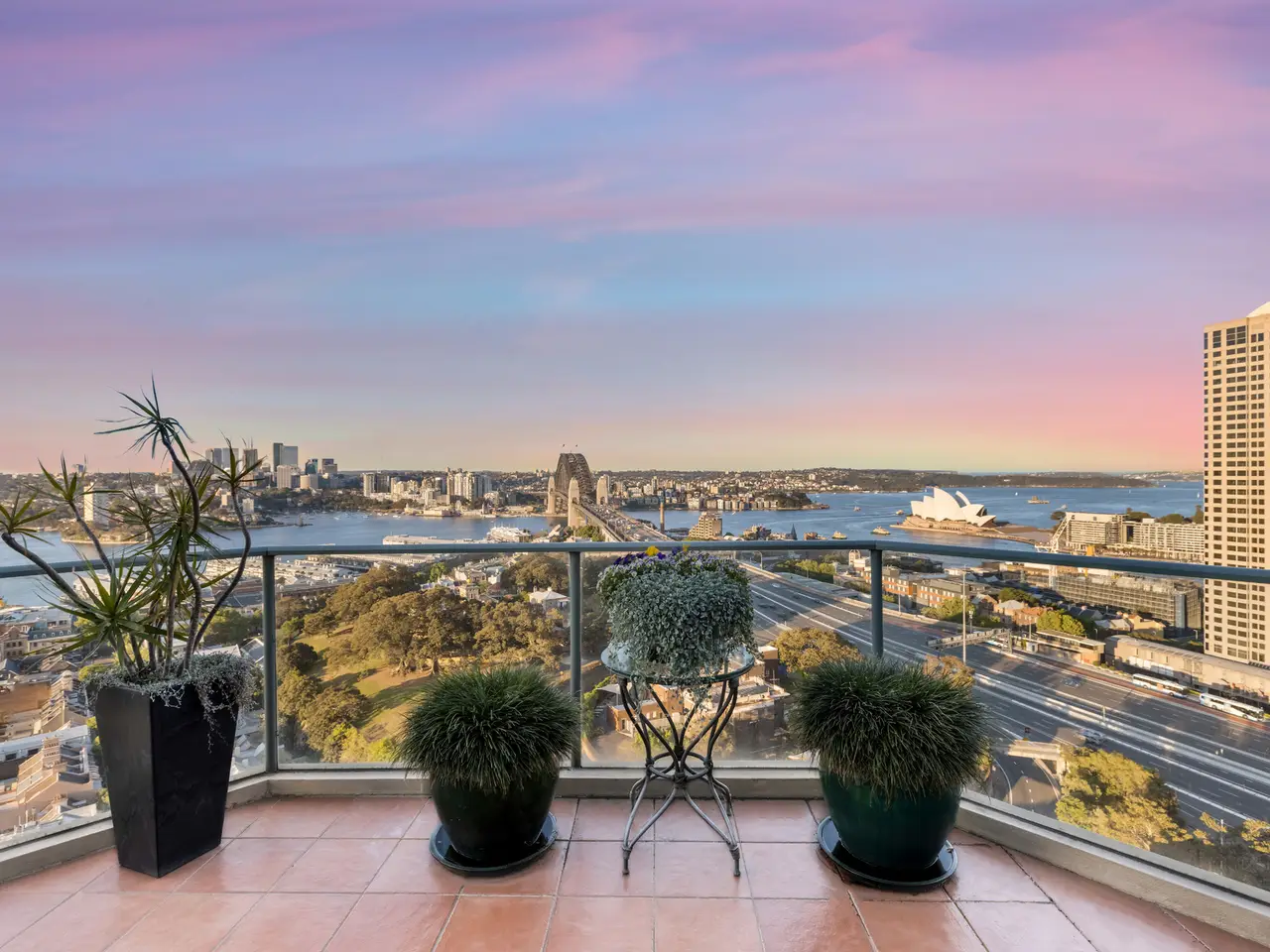 This stunning North East apartment is in one of Sydney's most impressive full-service residences, Highgate Apartments, located in Millers Point. The light-filled apartment has 180-degree soaring views from the Blue Mountains out to Sydney Heads with unparalleled visibility of Sydney Harbour's greatest assets, The Harbour Bridge and The Opera House. This gorgeous 3 bedroom residence is further amplified with the best amenities a building can offer - resort-style lap pool, sauna & spa, gym, an observatory and library, with two underground security parking. Uniquely positioned and on the 25th floor, Apartment 2502 has undoubtedly the most privacy within the building. Features of this property include: - Large, open plan living and dining with floor to ceiling windows - Entertaining-sized terrace spilling out from living areas - Great master suite with both a large en suite and walk-in robe - Two huge bedrooms with impressive CBD views & built-ins - Long galley-style kitchen flowing into a beautiful open study - Separate internal laundry & water closet to family bathroom - Cooling & Heating systems with great cross-ventilation - Underground security parking for two cars & storage unit - Walking distance to Barangaroo, Walsh Bay, The Rocks & Darling Harbour