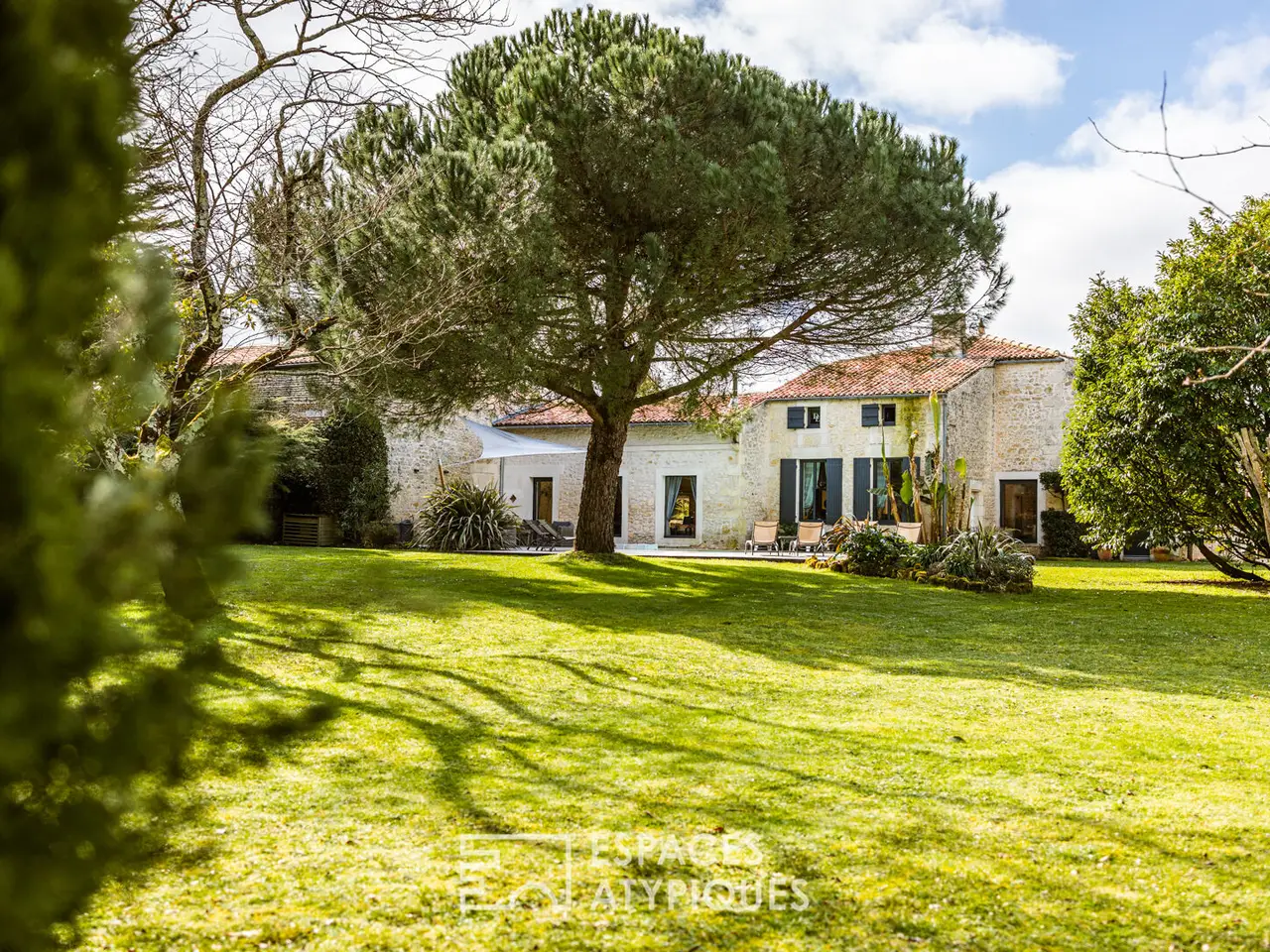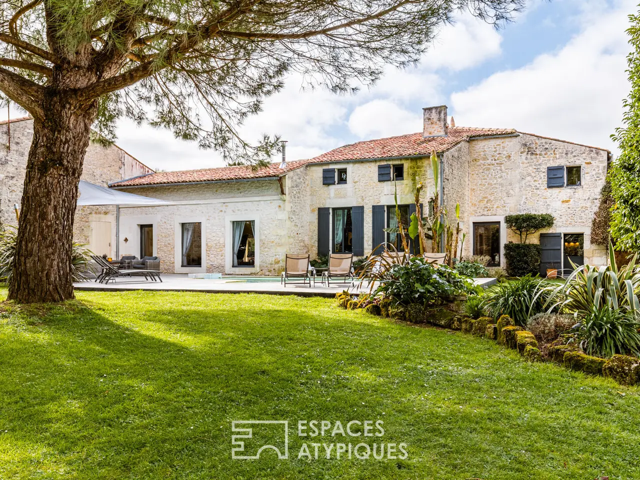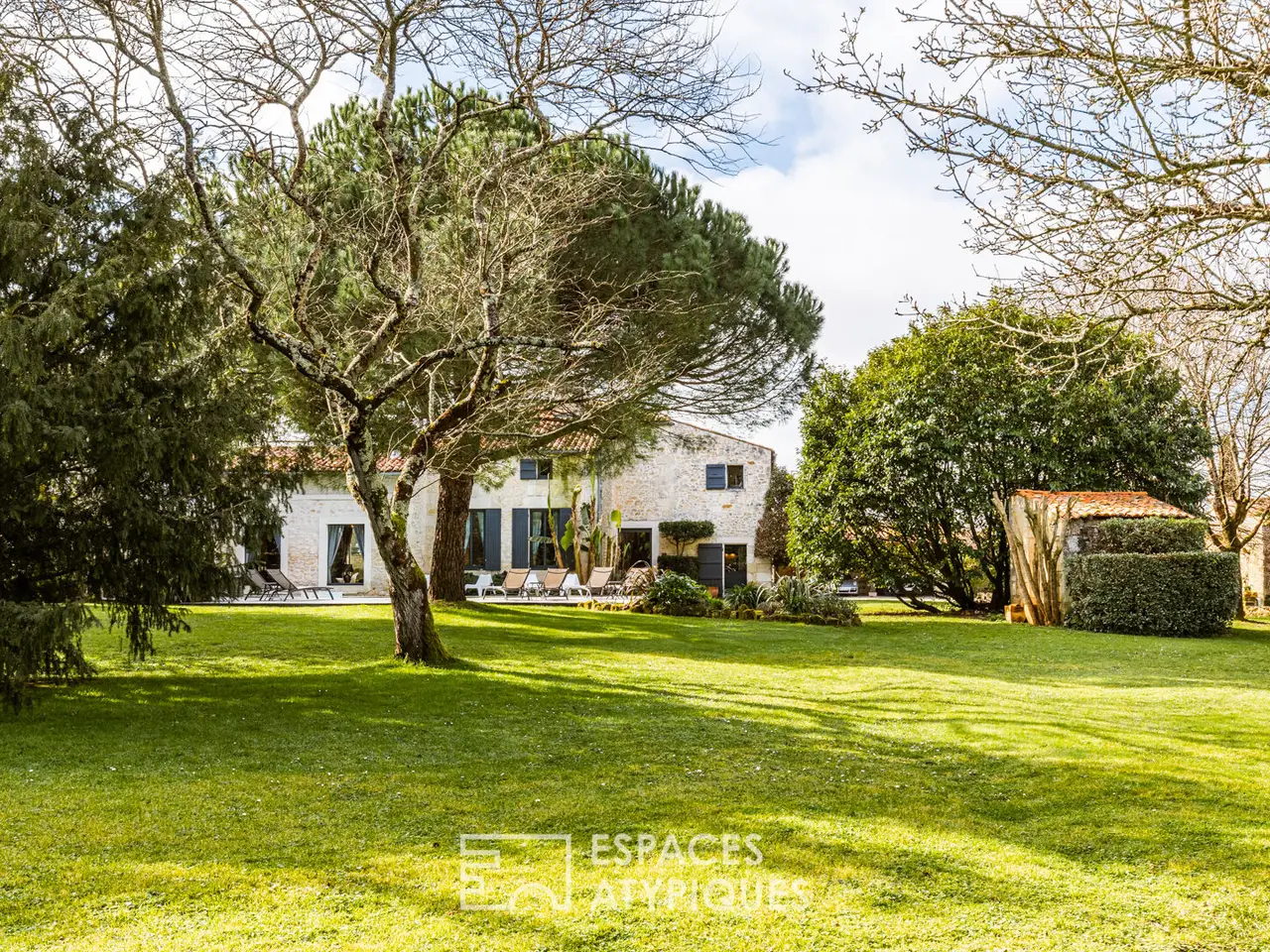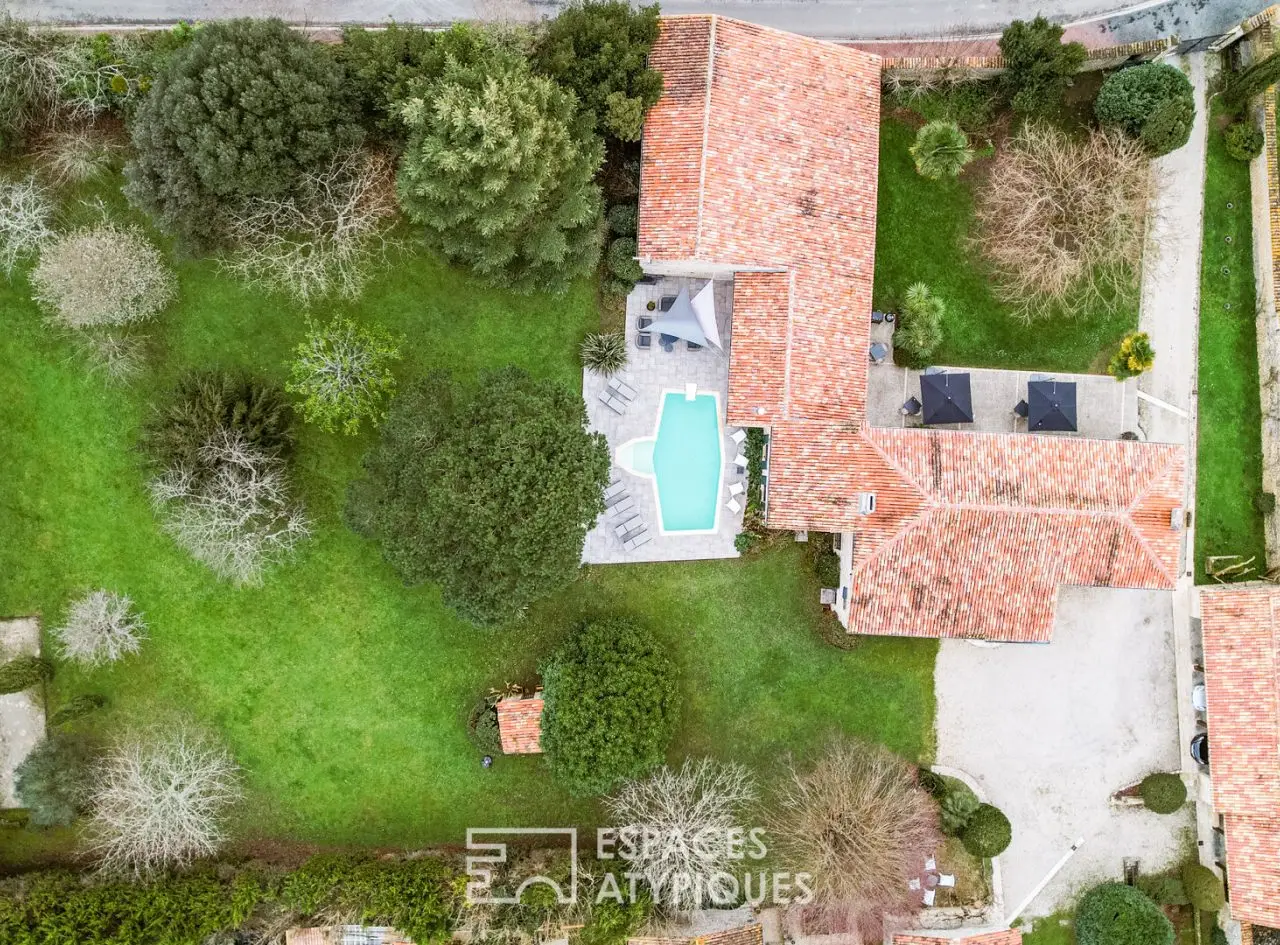Located in a hamlet between Saintes and Royan, central position 25 minutes from the beaches, this property with careful appointments hosts an authentic Saintongeaise house of approximately 400m2 and partly restored outbuildings.The place, ideal for a large family or for a professional operation, will seduce with its services and its environment, ensuring calm and serenity. It is in the heart of a superb landscaped park of more than 5000m2, planted with trees of multiple species that the building rises and reveals its quality renovation, carried out according to the rules of the Art.Here, the materials have been carefully selected for a timeless decoration combining modernity and authenticity. The entrance hall, with its terracotta floor, sets the tone. It reveals a beautiful height under ceiling and allows access on the one hand to a bright living room equipped with a fireplace, and on the other hand to the modern kitchen.This friendly space will delight epicureans with a passion for cooking, and hides beautiful original elements. It joins a bar area with cozy decoration where you can easily imagine sharing joyful moments with friends or family. These living spaces extend onto a terrace which allows meals to be taken outside, enhanced by the surrounding vegetation. The other wing of the house benefits from a friendly library lounge, bright in every season thanks to its large openings offering a view of the swimming pool and the garden. A first sleeping area has three magnificent suites, each of which has a private bathroom.Upstairs, the central landing distributes four comfortable bedrooms as well as an office. Two of them have a private bathroom, the other two share a bathroom and separate WC.A 60 m2 room dedicated to leisure currently accommodates a gym and sauna, but may be suitable for artists looking for space. Another building, today dedicated to wine tasting, benefits from a real cellar, which will appeal to all wine lovers. Adjoining a double garage and a laundry room. Finally, an old 12th century chapel still has potential awaiting a new project.The garden turns out to be a real cocoon where everyone can go about their activities: read a book near the wisteria, cultivate their vegetable garden in the priest's garden, soak up the sun on the terrace around the swimming pool, without forgetting the grounds petanque!A decidedly unique property, a perfect marriage between the charm of the past and the comfort of modern living, just 25 minutes from the seaside, the ideal place for a family refuge or even a professional project.ENERGY CLASS: C / CLIMATE CLASS: C - Estimated average amount of annual energy expenditure for standard use, established based on energy prices for the year 2021: between EUR3,870 and EUR5,300.REF. EALR1999Additional information* 13 rooms* 7 bedrooms* 1 bathroom* 6 shower rooms* Floor : 1* 1 floor in the building* Outdoor space : 5075 SQM* Parking : 6 parking spaces* Property tax : 1 895 €Energy Performance CertificatePrimary energy consumptionc : 164 kWh/m2.yearHigh performance housing*A*B*164kWh/m2.year24*kg CO2/m2.yearC*D*E*F*GExtremely poor housing performance* Of which greenhouse gas emissionsc : 24 kg CO2/m2.yearLow CO2 emissions*A*B*24kg CO2/m2.yearC*D*E*F*GVery high CO2 emissionsEstimated average amount of annual energy expenditure for standard use, established from energy prices for the year 2021 : between 3870 € and 5300 €Agency feesThe fees include VAT and are p