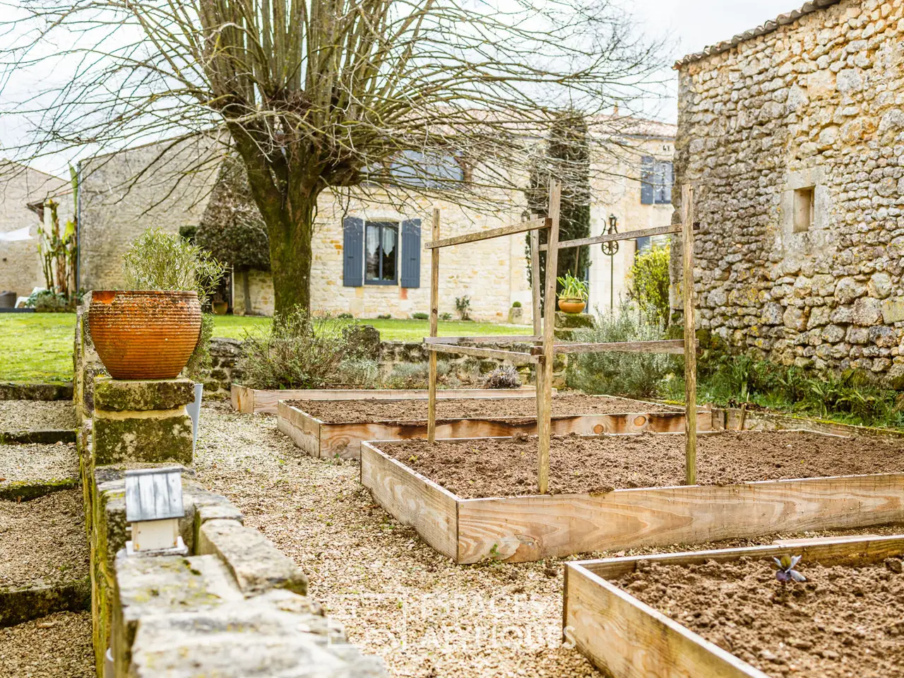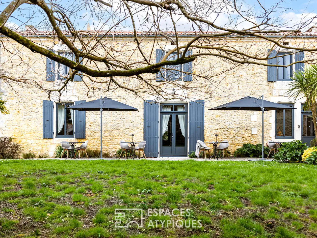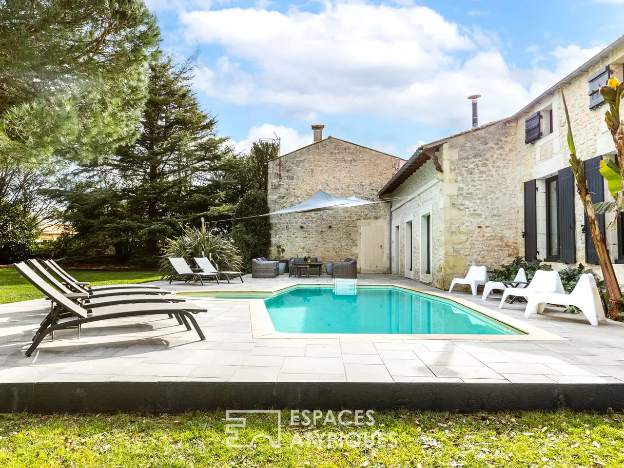 Located in a hamlet between Saintes and Royan, central position 25 minutes from the beaches, this property with careful appointments hosts an authentic Saintongeaise house of approximately 400m2 and partly restored outbuildings.The place, ideal for a large family or for a professional operation, will seduce with its services and its environment, ensuring calm and serenity. It is in the heart of a superb landscaped park of more than 5000m2, planted with trees of multiple species that the building rises and reveals its quality renovation, carried out according to the rules of the Art.Here, the materials have been carefully selected for a timeless decoration combining modernity and authenticity. The entrance hall, with its terracotta floor, sets the tone. It reveals a beautiful height under ceiling and allows access on the one hand to a bright living room equipped with a fireplace, and on the other hand to the modern kitchen.This friendly space will delight epicureans with a passion for cooking, and hides beautiful original elements. It joins a bar area with cozy decoration where you can easily imagine sharing joyful moments with friends or family. These living spaces extend onto a terrace which allows meals to be taken outside, enhanced by the surrounding vegetation. The other wing of the house benefits from a friendly library lounge, bright in every season thanks to its large openings offering a view of the swimming pool and the garden. A first sleeping area has three magnificent suites, each of which has a private bathroom.Upstairs, the central landing distributes four comfortable bedrooms as well as an office. Two of them have a private bathroom, the other two share a bathroom and separate WC.A 60 m2 room dedicated to leisure currently accommodates a gym and sauna, but may be suitable for artists looking for space. Another building, today dedicated to wine tasting, benefits from a real cellar, which will appeal to all wine lovers. Adjoining a double garage and a laundry room. Finally, an old 12th century chapel still has potential awaiting a new project.The garden turns out to be a real cocoon where everyone can go about their activities: read a book near the wisteria, cultivate their vegetable garden in the priest's garden, soak up the sun on the terrace around the swimming pool, without forgetting the grounds petanque!A decidedly unique property, a perfect marriage between the charm of the past and the comfort of modern living, just 25 minutes from the seaside, the ideal place for a family refuge or even a professional project.ENERGY CLASS: C / CLIMATE CLASS: C - Estimated average amount of annual energy expenditure for standard use, established based on energy prices for the year 2021: between EUR3,870 and EUR5,300.REF. EALR1999Additional information* 13 rooms* 7 bedrooms* 1 bathroom* 6 shower rooms* Floor : 1* 1 floor in the building* Outdoor space : 5075 SQM* Parking : 6 parking spaces* Property tax : 1 895 €Energy Performance CertificatePrimary energy consumptionc : 164 kWh/m2.yearHigh performance housing*A*B*164kWh/m2.year24*kg CO2/m2.yearC*D*E*F*GExtremely poor housing performance* Of which greenhouse gas emissionsc : 24 kg CO2/m2.yearLow CO2 emissions*A*B*24kg CO2/m2.yearC*D*E*F*GVery high CO2 emissionsEstimated average amount of annual energy expenditure for standard use, established from energy prices for the year 2021 : between 3870 € and 5300 €Agency feesThe fees include VAT and are p