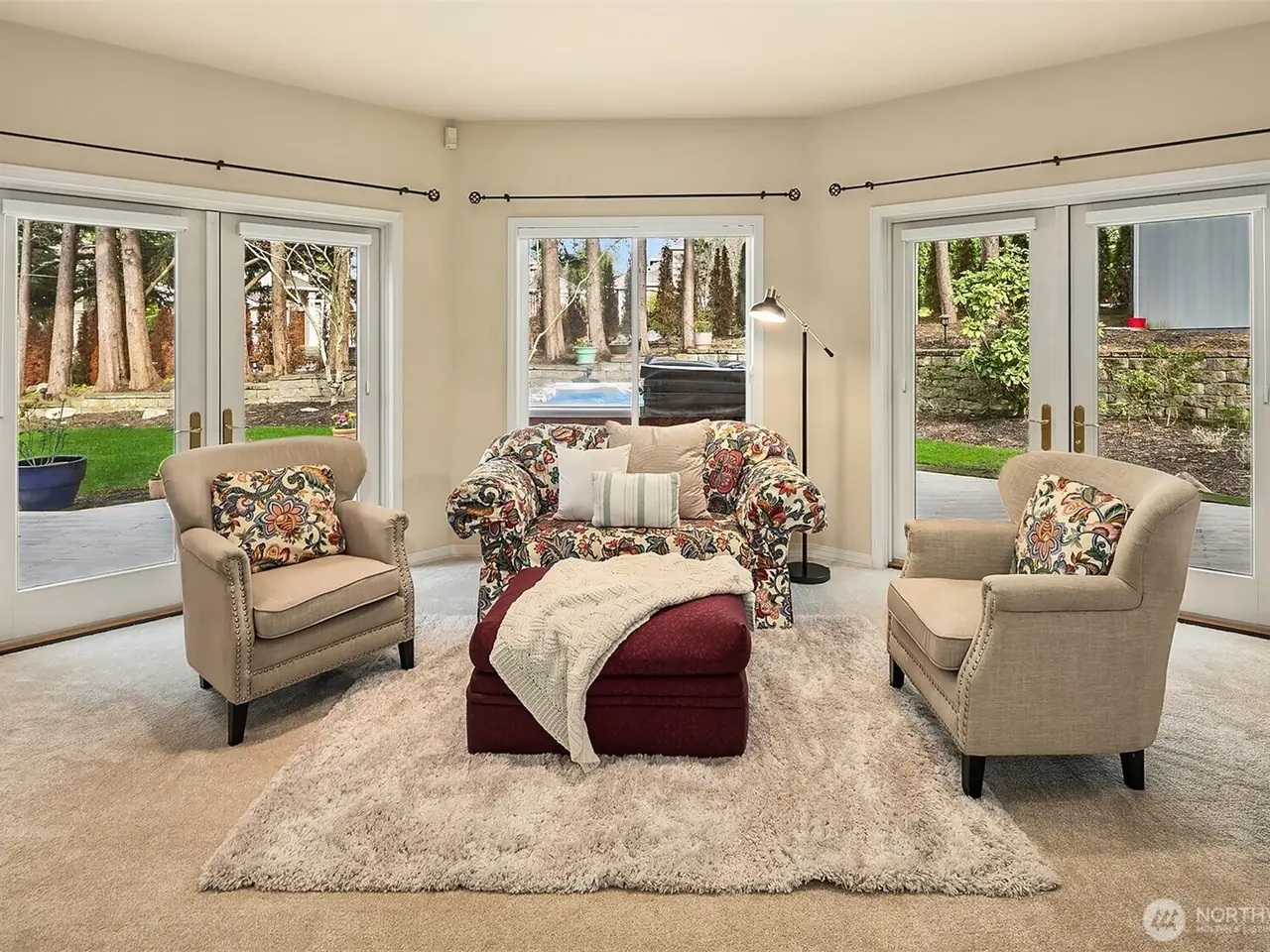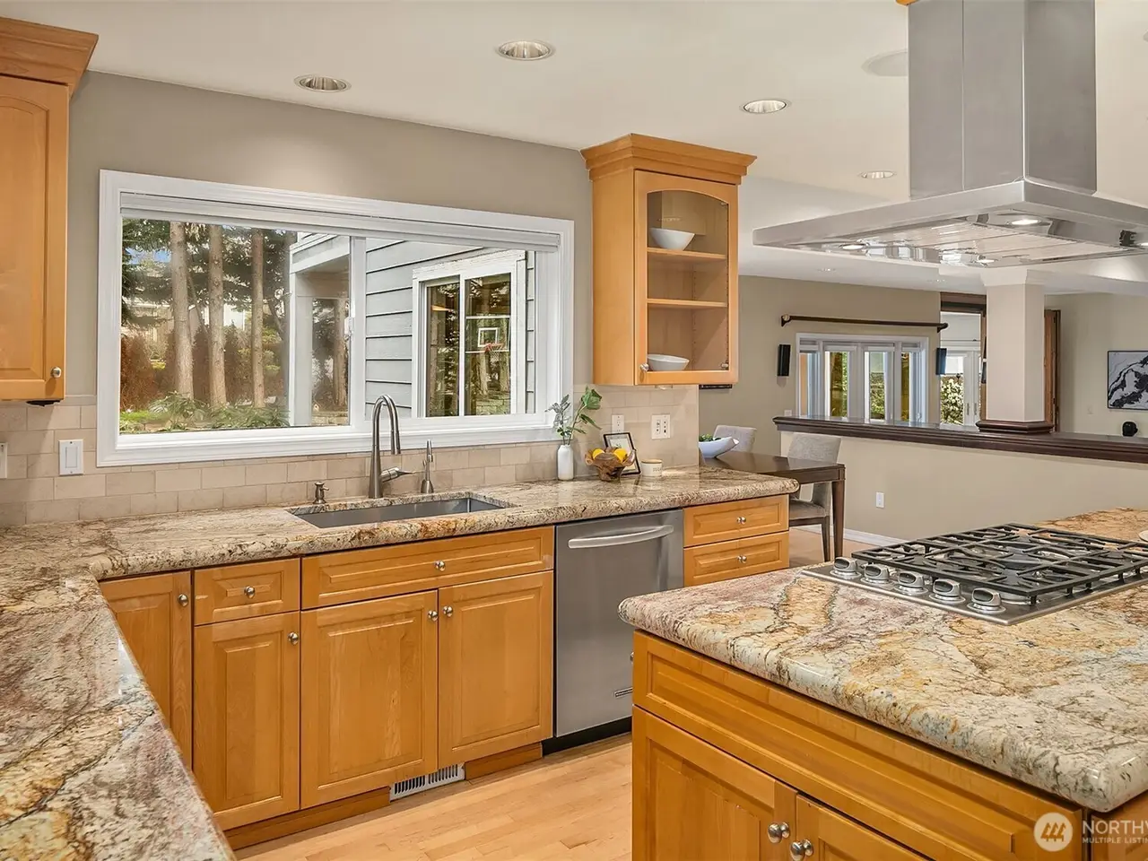 This expansive home includes a private ADU w/ full kitchen, living room w/gas FP, bedroom & spa-inspired bath. Perfect for guests, multi-generational living, or income potential. Enjoy shared beach access & possible boat moorage on Lake Sammamish. Formal living room boasts vaulted ceilings, a bay window, & a custom concrete gas FP. The chef's kitchen features custom maple cabinetry, slab granite, DCS gas cooktop, Sub-Zero fridge & freezer & walk-in pantry. Large family room w/marble-trimmed gas FP. Primary suite w/sitting area, FP, private deck, & 5-piece bath. Bonus room w/entertainment center & wet bar, new carpet throughout & dual AC units. Backyard w/Trex deck, sports court, & hot tub. Mins to Lk Wash schools, dining, shopping & 520.