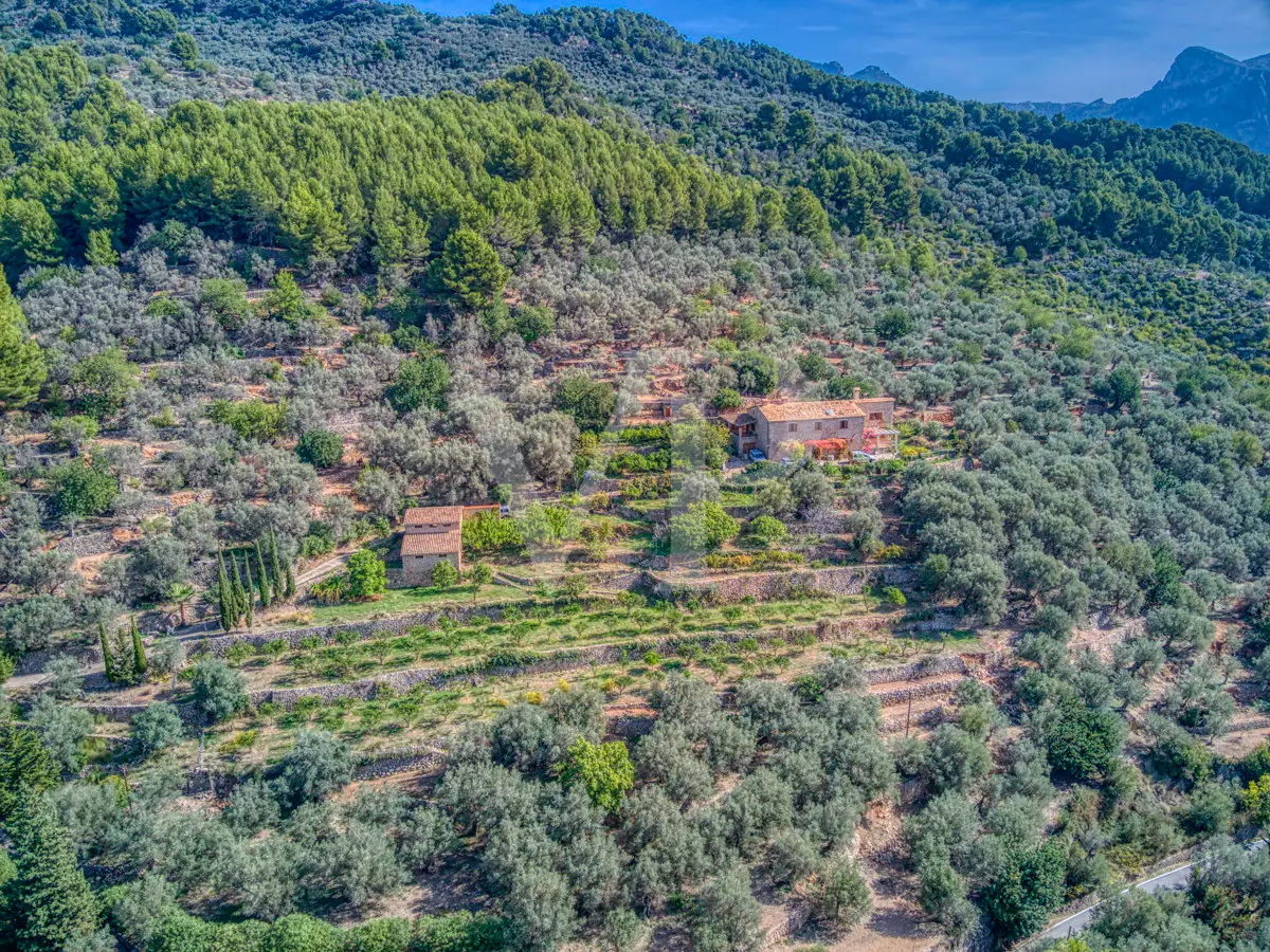 Situated on a fantastic hill at approximately 180 meters altitude, this spectacular property of almost eight hectares with a renovated eighteenth century house is for sale in Soller. A spacious and beautiful hall leads to this interesting property, a spacious living room with fireplace, a large room with a total of about 70 square meters. With direct access to a pleasant terrace of about 30 square meters. Fantastic rustic fitted kitchen open to the dining room with a slight slope and access to a covered terrace of approx. 60 meters with a built-in barbecue, as well as a pantry and cellar. On the upper floor there are five slightly sloping bedrooms and two large bathrooms, one of which is en suite. On the lower floor is the sixth bedroom suite. It also has a large office connected to the hall. In the basement floors it still retains its two old oil tanks with the possibility of reusing or reusing it for a cellar, the engine room as well as a warehouse and a cellar. One car garage in main building, plus large separate garage with space for four cars. Extensive olive grove in production, fruit trees such as 145 orange trees of the Valencia Late variety with drip irrigation, grape vines, apricots, medlars, lemon trees, kiwis, pomegranates... It has solar energy for sanitary water, city lights, oil central heating. With a large "safereig" water tank of 120,000 liters, two own unused water wells thanks to its two water sources that provide the necessary water all year round. Mallorcan shutters made of iron and wood in very good condition. A property that with just a few updates and improvements can become an exclusive property. There is also the possibility to build a swimming pool, thanks to its large plot. The property is in excellent condition and in an excellent location.