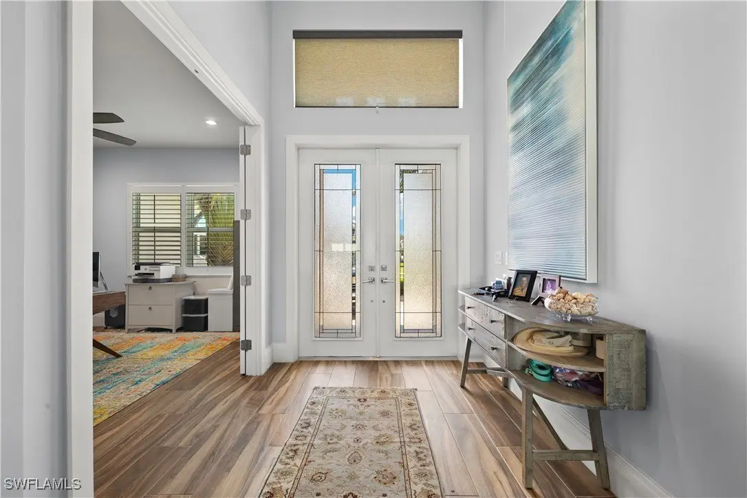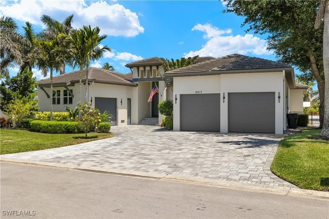 Luxurious waterfront living in one of Southwest Florida’s premier boating communities — located on one of the most desirable streets within the Town & River subdivision. This 2020-built concrete residence was thoughtfully designed to impress, offering a spacious and functional layout paired with high-end custom finishes throughout. Inside, enjoy soaring tray ceilings, zero corner sliders, linear diffuser cooling vents, recessed lighting, level 5 interior drywall finishes, and 1¾ solid core interior doors that speak to the quality of construction. The gourmet kitchen is outfitted with premium Thermador appliances and includes a dedicated ice maker capable of producing up to 400 lbs of ice per day — ideal for entertaining or prepping for a day on the water. The home is also equipped with Icynene foam insulation, enhancing energy efficiency and year-round comfort. The generously sized bedrooms include a luxurious VIP suite with serene views of the pool and canal, along with a spa-inspired bath featuring a soaking tub and large walk-in shower. Additional interior highlights include spacious guest suites, a versatile den/flex area, a full-house water filtration system, and a water softener for added comfort. Outside, enjoy breathtaking wide water views from the negative edge pool and expansive outdoor living area. The fully fenced backyard is beautifully landscaped and features a private outdoor kitchen with gas grill, fridge, and bar. Boaters will appreciate the covered dock with a 15,000 lb boat lift and 40' cover, offering deep water access and a wide canal perfect for maneuvering larger vessels. The home also features sealed stucco soffits, adding both durability and aesthetic appeal. With modern construction, Gulf access, and a curated list of luxury upgrades, this home delivers true Florida waterfront living at its finest — designed for comfort, style, and effortless coastal entertaining.
