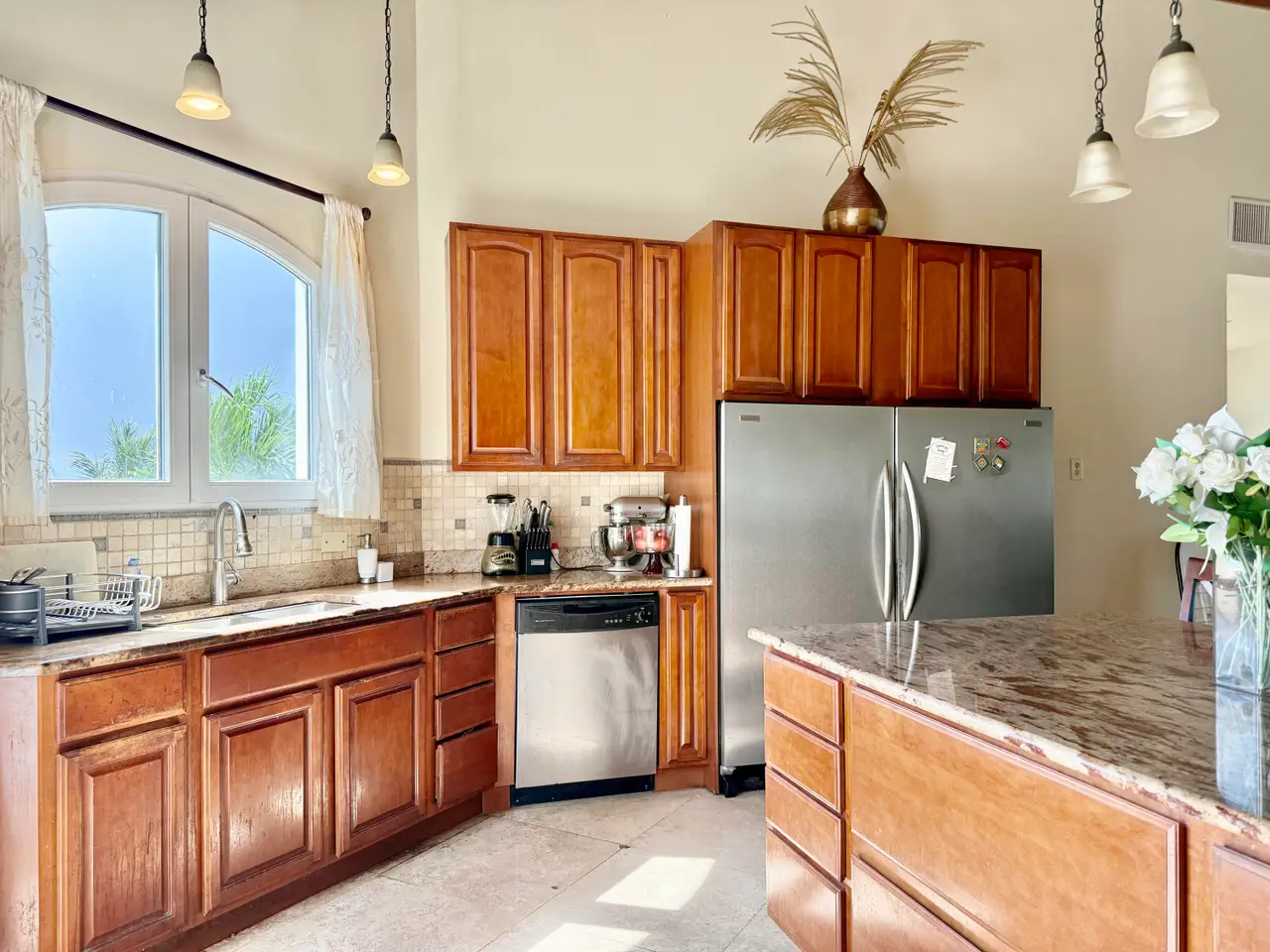 Magnificent Views, Terrific Location!Discover this exclusive East End St. Thomas villa featuring a 5-bedroom main home and a 2-bedroom apartment. Elegantly designed with custom furnishings, this villa showcases exceptional craftsmanship and attention to detail throughout. Built with exceptional structural integrity, this solid concrete home combines durability with architectural charm. Featuring a stunning open-air stained ceiling and elegant arched windows, the home is as beautiful as it is well-built. For added peace of mind, a standby generator ensures reliable power whenever needed. Enjoy breathtaking sunset views over Secret Harbor and the Caribbean Sea, complemented by lush, professionally landscaped grounds featuring vibrant tropical trees and plants.Nestled at the end of a private road, this villa offers tranquil seclusion while remaining just minutes from some of the island's most desirable amenities. Enjoy easy access to Secret Harbour's pristine white sand beach, the vibrant restaurants and shopping of Red Hook, boating adventures to stunning St. John and the British Virgin Islands, as well as nearby attractions like The Yacht Club and the Ritz-Carlton.