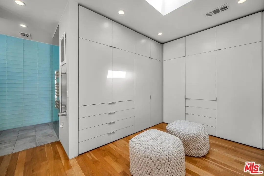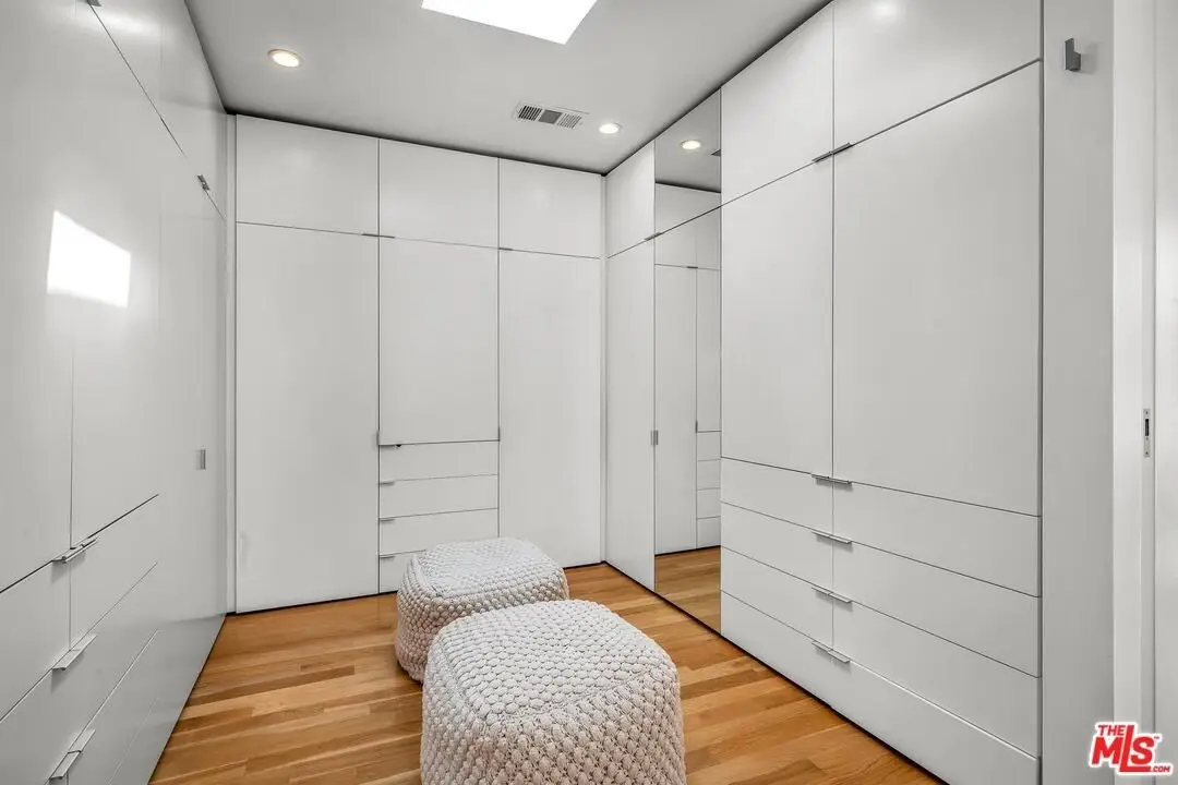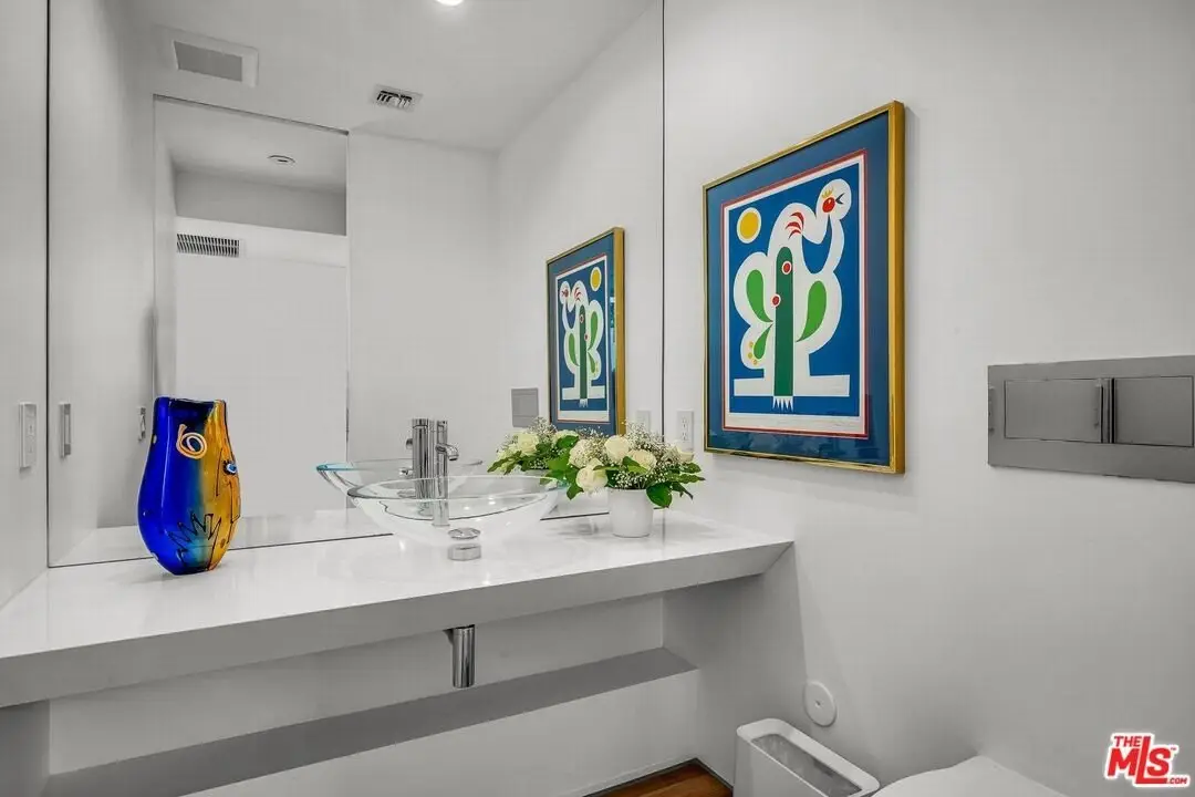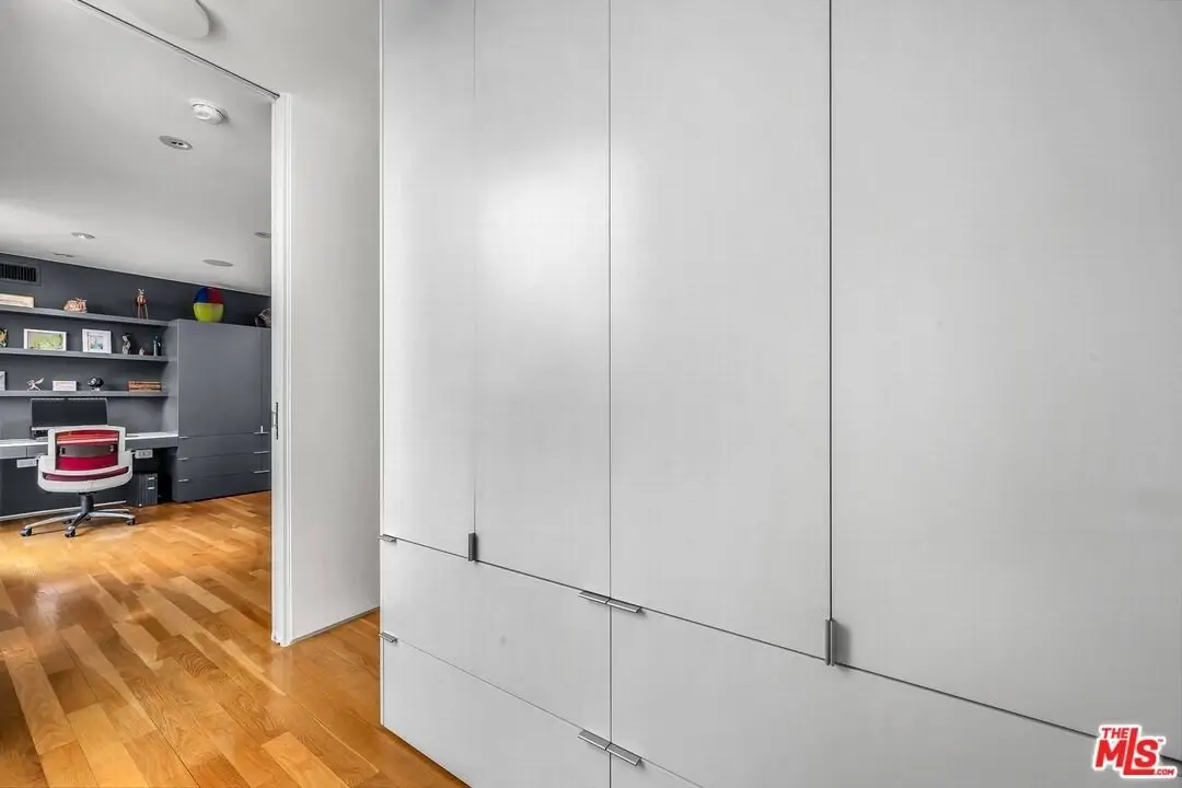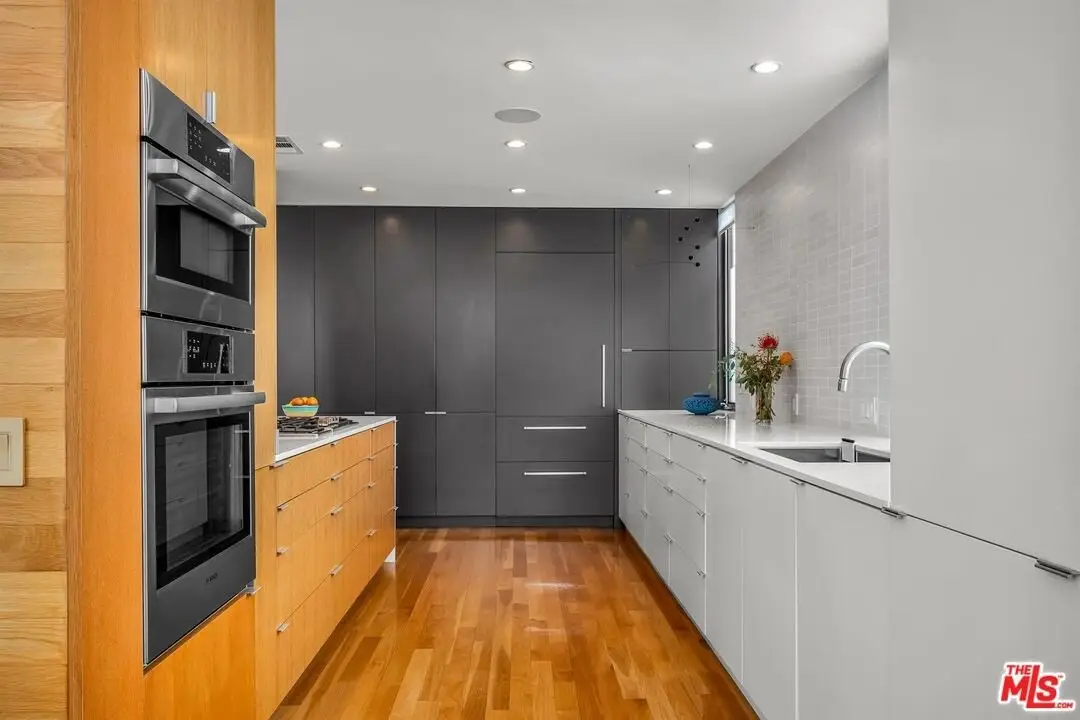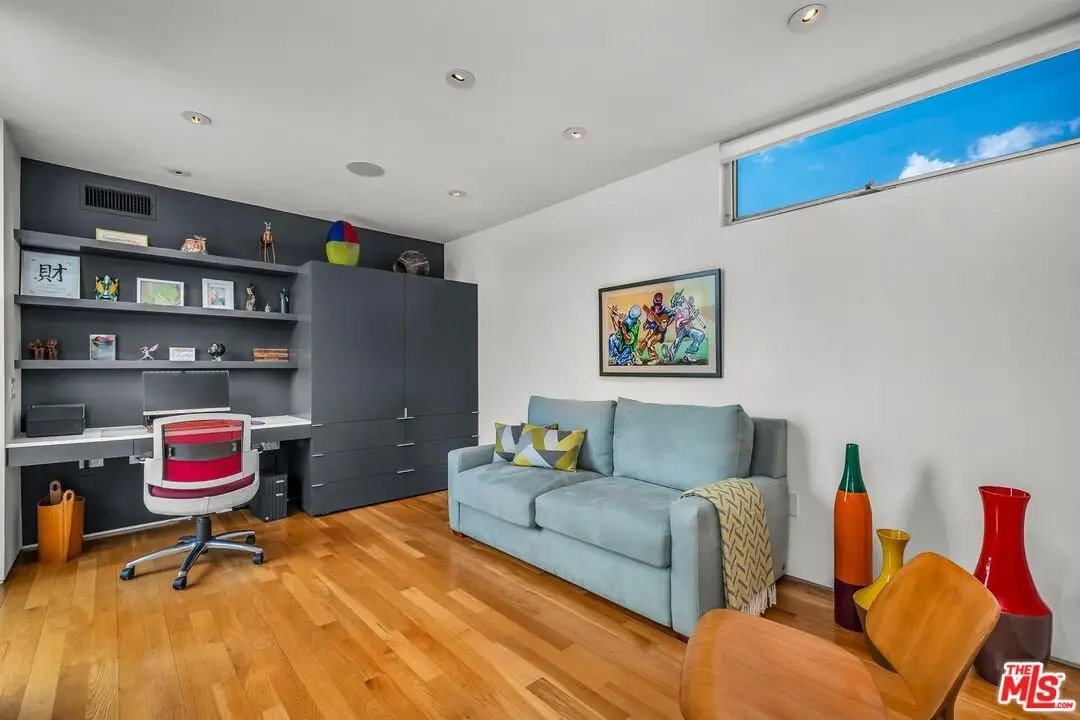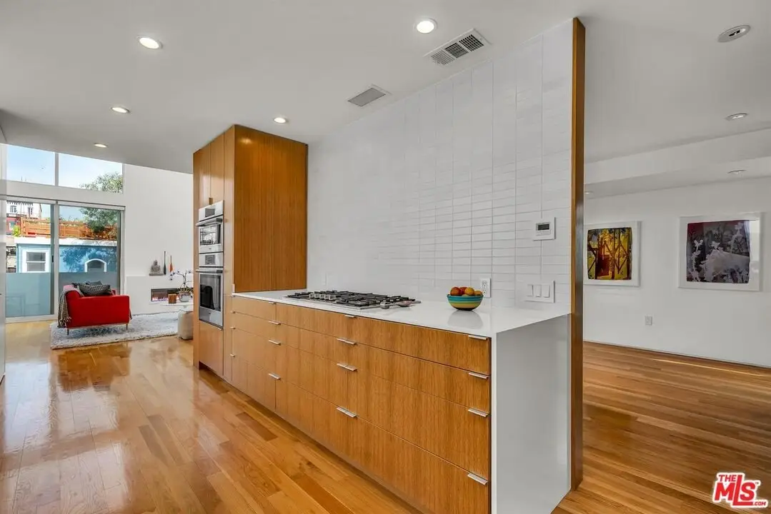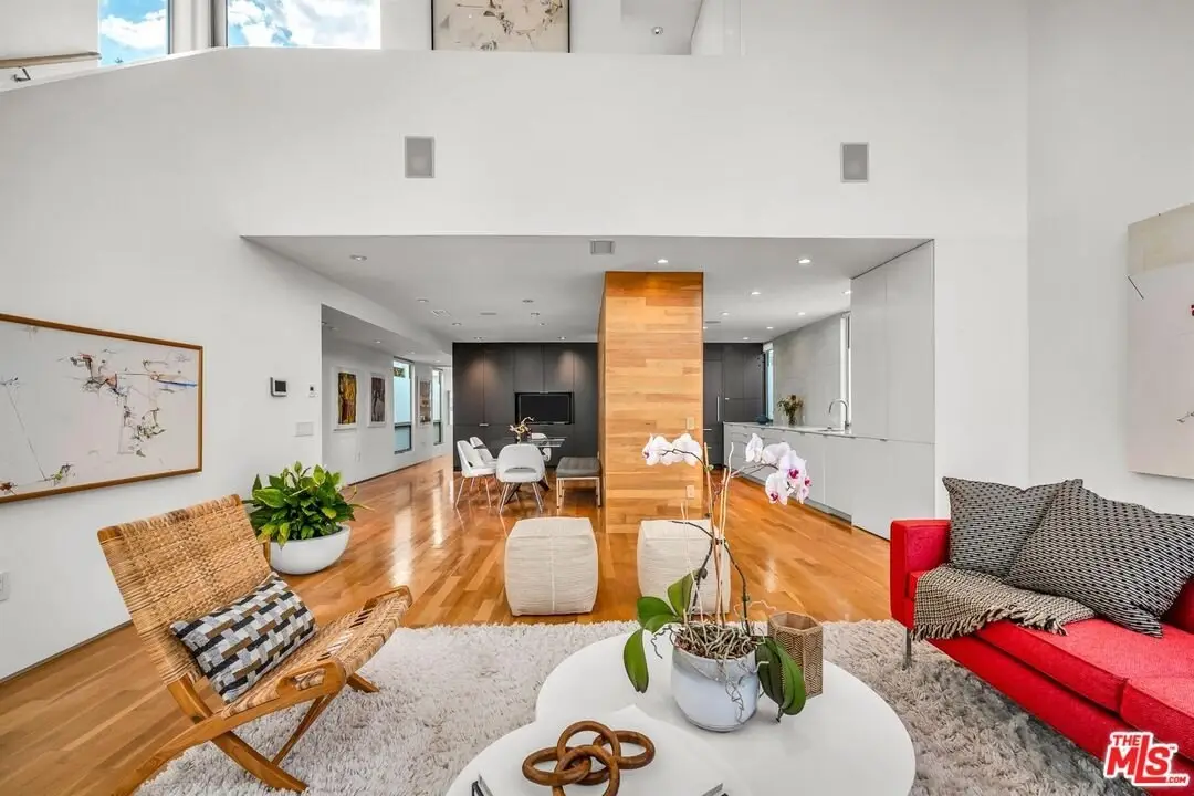Architectural coastal home just moments to the sand, beautifully reimagined timeless design. This light-filled home balances soaring double-story ceilings with sleek, modern design for a tranquil, minimalist retreat. An open-concept floor plan and seamless indoor-outdoor flow make it perfect for entertaining or live-work loft living. It's an upper unit with no shared walls. Designer touches include a linear electric fireplace, surround sound speakers, Lutron programmable lighting, double-height windows, and top-of-the-line Arcadia sliding doors opening to a private terrace with city lights views. The custom kitchen is a chef's dream with Bosch appliances, integrated Sub-Zero refrigerator, quartz countertops, and abundant storage. The primary suite offers black-out shades, a custom walk-in closet, and a spa-like bath with dual sinks, a zero-threshold shower, and heated towel rack. Upstairs, the lofted second bedroom with built-ins is ideal for a home office or guest suite with its own full bath. Over $100,000 was spent just in custom cabinets throughout. Additional upgrades include electric Aero shades, LifeSource water filtration, tankless water heater, oak wood floors, ADT security with 3 outdoor cameras, EV charging outlet, newer HVAC, new main sewer line, and rare parking for 3 cars a true luxury by the beach. Low HOA dues. Perfectly positioned near Abbot Kinney, Main Street, and Venice Blvd, this stunning home offers the best of coastal living with world-class dining, boutiques, and the ocean just outside your door.