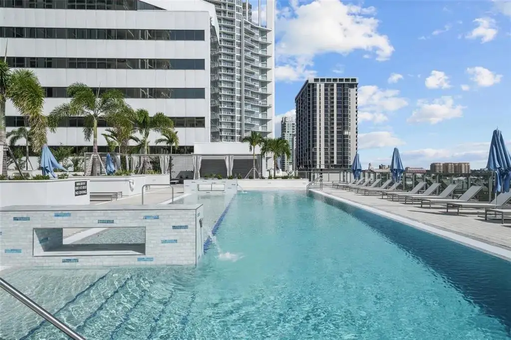 Welcome to Saltaire in downtown St. Petersburg. This 8th-floor residence offers over 2,712 square feet with 3 bedrooms, 4 bathrooms, and a den, providing both comfort and flexibility. One of the highlights is the expansive private terrace—among the largest in the building—where you can enjoy a view of the pool, the St Petersburg Marina, the waterfront and city skyline. Designed with indoor-outdoor living in mind, it’s a space well-suited for relaxing or entertaining. Inside, the open floor plan features floor-to-ceiling windows with motorized shades and a well-appointed kitchen with JennAir appliances, including a paneled refrigerator and dishwasher. Each bedroom has its own en-suite bath, and the den offers options for an office, media room, or workout space. Conveniently located just above the amenities level, the home provides easy access to Saltaire’s pool, fitness center, lounges, dog park, and more. The building also includes a welcoming lobby, conference room, concierge services, two assigned parking spaces, and additional storage. Living at Saltaire means being steps from downtown’s best—restaurants, shops, the Saturday Morning Market, and cultural landmarks like the Dali Museum and Mahaffey Theater. Travel is also simple, with quick connections to both Tampa International and St. Pete-Clearwater airports. This residence offers a balance of space, comfort, and city convenience in one of downtown’s premier buildings. Schedule your preview today! Live in Saltaire tomorrow!