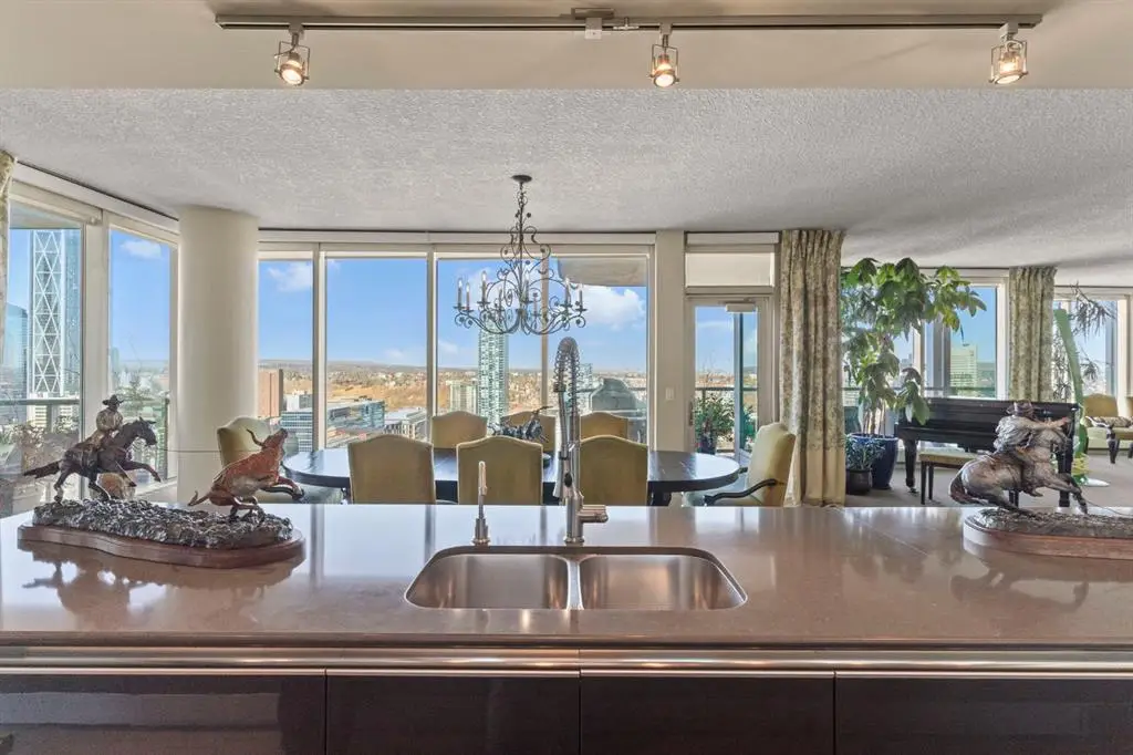 Experience luxury living in this MASSIVE residence in the highly sought after Arriva building. Enjoy complete exclusivity with your own private high-speed elevator. Floor-to-ceiling windows draw in natural light and provide panoramic views of the city and Bow river. This executive home with a sprawling floor plan makes it ideal for entertaining and hosting gatherings. The state-of-the- art kitchen features a full Miele luxury appliance package, and an expansive island that seamlessly opens to the dining room with direct access to one of three balconies where you can take in the iconic views of downtown. Adjacent to the kitchen is an intimate family room with built in cabinetry a warm fireplace and another private balcony. On the opposite side of the kitchen and dining is generous living room providing ample space for gathering and more spectacular views! A private office with built in storage and a powder room are tucked in and away. The primary is a true sanctuary with unmatched views, a balcony overlooking the serene river, an expansive walk-in closet with built ins. This is complete with a spa inspired 5PC ensuite and access to your own home gym, or space for a private dressing room or yoga space. The secondary bedroom has a custom murphy bed, walk in closet, and its own 4PC ensuite providing a private retreat for family or guests. Experience this perfect blend of luxury and privacy. The Arriva building offers 24-hour security and concierge services, two guest suites, a rooftop garden, an owner’s lounge, central A/C, and secure access. Exceptional executive living located in the vibrant Beltline area, steps from Stampede grounds, the new rink, river pathways, restaurants, cafés, central library and LRT access. View the virtual tour or schedule your private showing today!