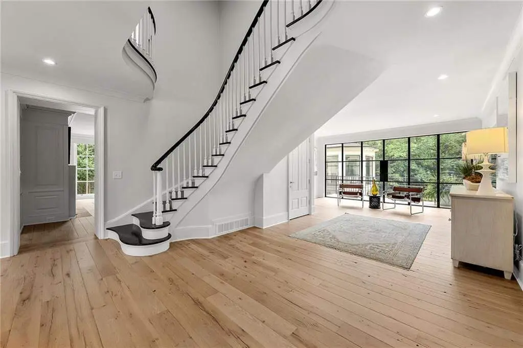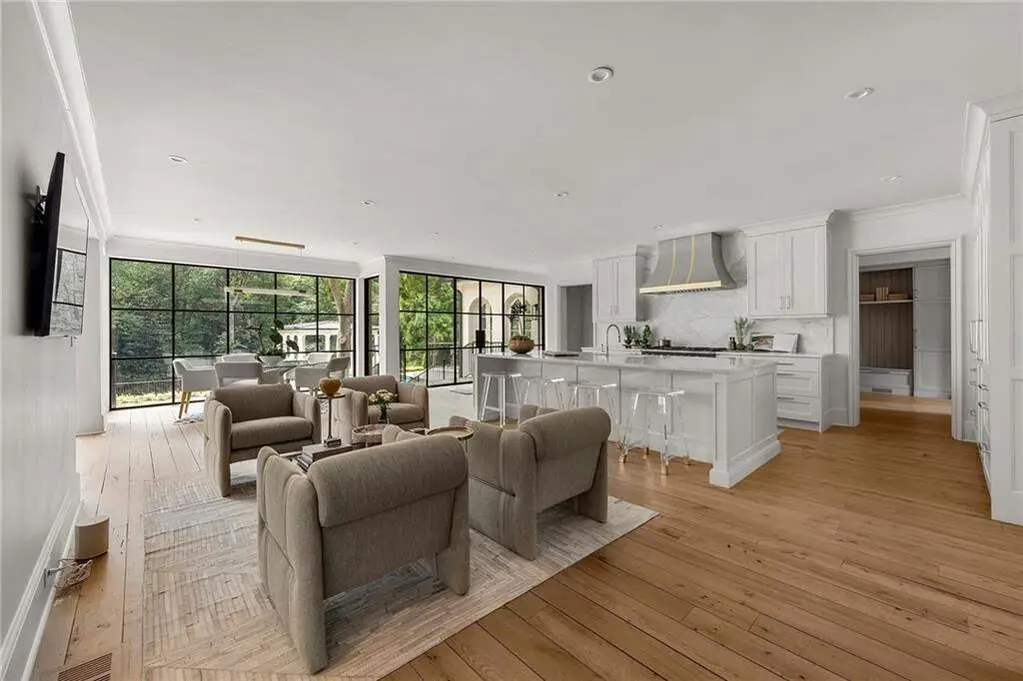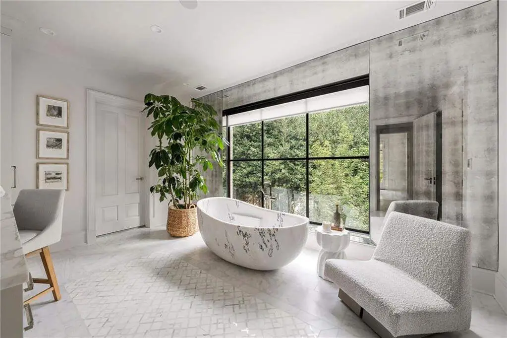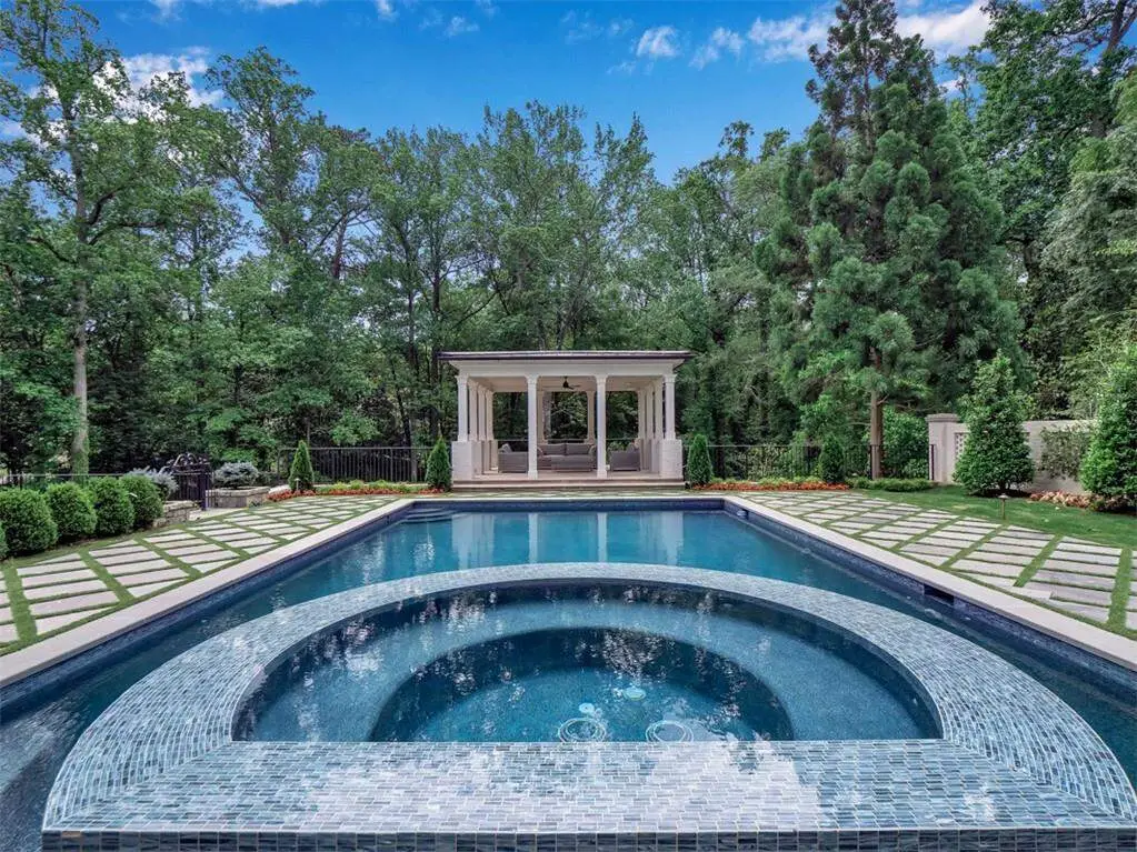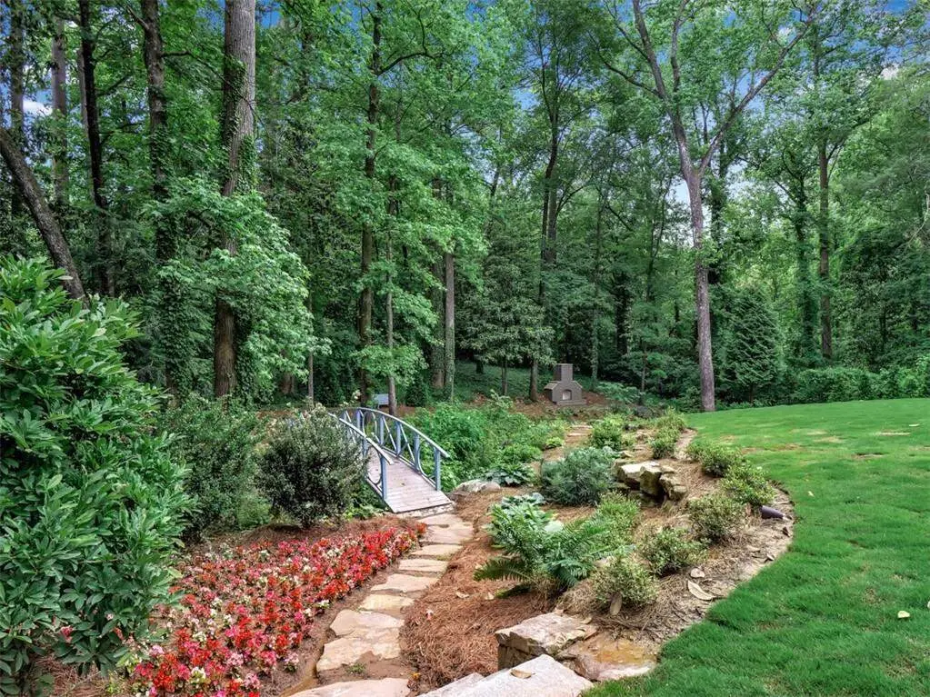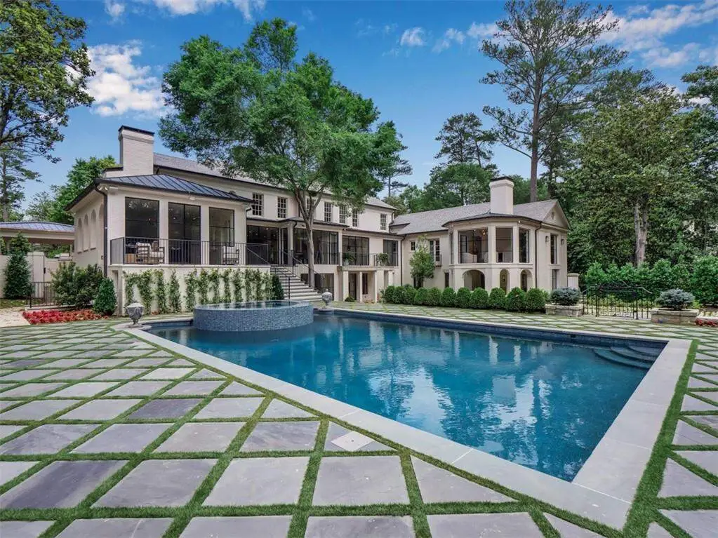 Introducing a grand Buckhead classic, brilliantly reimagined by Buckhead Development and Tish Mills Interiors. With an eye toward honoring its history and stateliness, the design-build team fused architectural pedigree with modernization to effectively create a home that lives like brand new. Built in 1955, this fabulous estate is happy and bright, shining more beautifully than ever. Every detail reflects a masterful renovation, starting with the original front door, restored and fitted with replated decorative knobs. Inside, natural light plays a starring role-spaces have been opened dramatically, with new massive walls of steel windows and doors washing the interiors with sunlight. Removal of walls now allows the curves of the foyer's staircase to make an elegant statement, leading the eye up to the striking leaded-glass skylight. Reclaimed wide-plank white oak flooring spans the main level, with a contemporary mitered chevron pattern in the foyer to set a tone of refined craftsmanship. Simplified moldings and chic trimwork offer a lighter, more modern aesthetic, while the six gas fireplaces received sleek mantle upgrades. The formal dining room now opens to its own courtyard and kitchen garden, and the main level study is both sophisticated and comfortable. The kitchen is a masterpiece by Design Galleria, centered around a Peacock Blue La Cornue CornuFe Series range beneath a custom hood. Enjoy beauty and function with marble countertops, Baldwin hardware, Miele refrigerator/freezer, wine storage, and adjacent scullery with two additional ovens, ice maker, and prep sink. The main floor is ideal for hosting on a grand scale, with a spacious keeping room and breakfast area, plus new steps from the kitchen leading directly to the pool. The accordion-style steel doors open to a balcony overlooking the garden and pool, a perfect spot to set a bar for a party. The primary suite on the main level is a dream for two-enter from a dramatic vestibule, and immediately notice the new barrel-vaulted ceiling. Dual bathrooms and closets are on either side of the hall, both exquisitely outfitted to rival any spa-in one, find an antique mirrored wall and one-of-a-kind tub sourced from Europe and carved from a single block of marble (the only piece of art you need in that space!). Both are all marble, featuring mosaic marble rugs and spacious showers. Within the primary suite, find a cozy sitting room with fireplace, and a sun-drenched conservatory-style space with motorized shades and dynamic views of the pool and lush grounds. Upstairs, all bedrooms feature smartly reconfigured closets and marble en-suite baths, and the gracefully opened hallway leads to a main laundry room with double washer and dryer. The terrace level offers every amenity: a private guest suite with fireplace and outdoor access, morning bar, recreation room, wine cellar, and large gym finished with nickel gap paneling and gym flooring-all just steps from the pool and spa. The 1.72+- acre grounds of this home are quite spectacular. The English gardens are tailored, while a new, flat grass yard is the ultimate play space. The pool is surrounded by turf and bluestone pavers, and has been re-pebbled and redesigned with an updated spa. The gazebo has been transformed into an entertaining porch, also perfect for birdwatching. A new outdoor kitchen and restored fireplaces, plus new sophisticated landscaping touches throughout, create a uniquely tasteful and functional outdoor space. Beneath the beauty, the home is effectively new: spray foam insulation throughout, all new plumbing and electrical, tankless water heaters, new HVAC systems, and a modern alarm system. Parking is plentiful, with a brand new carport (easily enclosed, if preferred), a single-car garage with EV charger (near the guest suite for a private entrance), a two-car garage with an organized tool room, discreet service entrance via a cul-de-sac, and dedicated bike storage area.