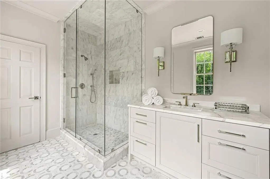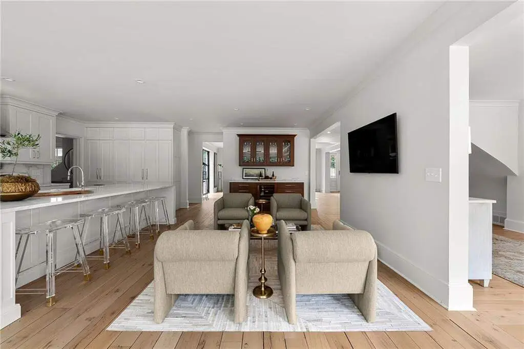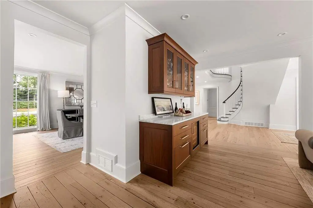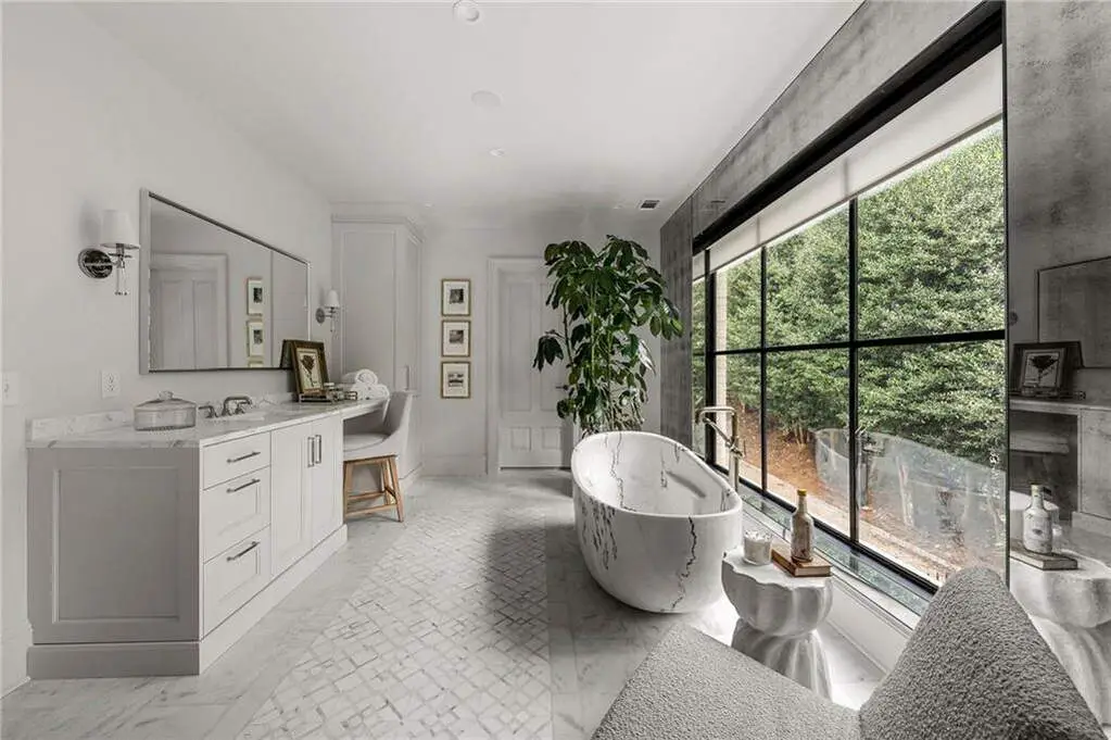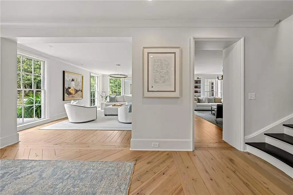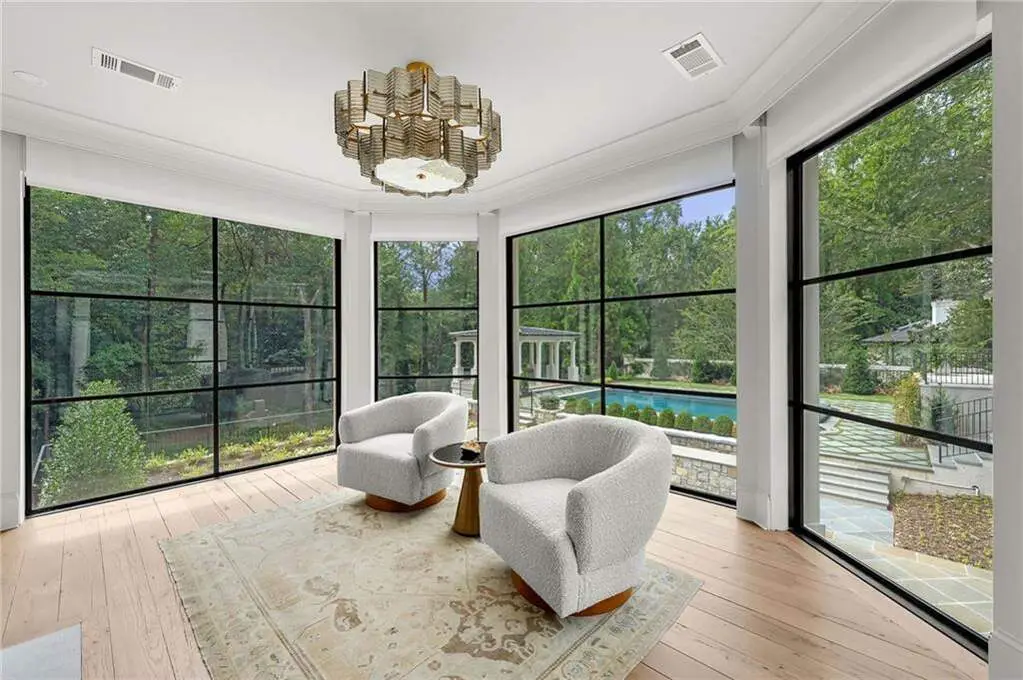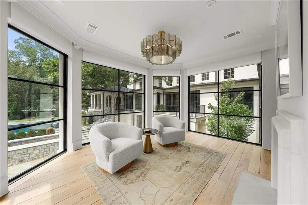 Introducing a grand Buckhead classic, brilliantly reimagined by Buckhead Development and Tish Mills Interiors. With an eye toward honoring its history and stateliness, the design-build team fused architectural pedigree with modernization to effectively create a home that lives like brand new. Built in 1955, this fabulous estate is happy and bright, shining more beautifully than ever. Every detail reflects a masterful renovation, starting with the original front door, restored and fitted with replated decorative knobs. Inside, natural light plays a starring role-spaces have been opened dramatically, with new massive walls of steel windows and doors washing the interiors with sunlight. Removal of walls now allows the curves of the foyer's staircase to make an elegant statement, leading the eye up to the striking leaded-glass skylight. Reclaimed wide-plank white oak flooring spans the main level, with a contemporary mitered chevron pattern in the foyer to set a tone of refined craftsmanship. Simplified moldings and chic trimwork offer a lighter, more modern aesthetic, while the six gas fireplaces received sleek mantle upgrades. The formal dining room now opens to its own courtyard and kitchen garden, and the main level study is both sophisticated and comfortable. The kitchen is a masterpiece by Design Galleria, centered around a Peacock Blue La Cornue CornuFe Series range beneath a custom hood. Enjoy beauty and function with marble countertops, Baldwin hardware, Miele refrigerator/freezer, wine storage, and adjacent scullery with two additional ovens, ice maker, and prep sink. The main floor is ideal for hosting on a grand scale, with a spacious keeping room and breakfast area, plus new steps from the kitchen leading directly to the pool. The accordion-style steel doors open to a balcony overlooking the garden and pool, a perfect spot to set a bar for a party. The primary suite on the main level is a dream for two-enter from a dramatic vestibule, and immediately notice the new barrel-vaulted ceiling. Dual bathrooms and closets are on either side of the hall, both exquisitely outfitted to rival any spa-in one, find an antique mirrored wall and one-of-a-kind tub sourced from Europe and carved from a single block of marble (the only piece of art you need in that space!). Both are all marble, featuring mosaic marble rugs and spacious showers. Within the primary suite, find a cozy sitting room with fireplace, and a sun-drenched conservatory-style space with motorized shades and dynamic views of the pool and lush grounds. Upstairs, all bedrooms feature smartly reconfigured closets and marble en-suite baths, and the gracefully opened hallway leads to a main laundry room with double washer and dryer. The terrace level offers every amenity: a private guest suite with fireplace and outdoor access, morning bar, recreation room, wine cellar, and large gym finished with nickel gap paneling and gym flooring-all just steps from the pool and spa. The 1.72+- acre grounds of this home are quite spectacular. The English gardens are tailored, while a new, flat grass yard is the ultimate play space. The pool is surrounded by turf and bluestone pavers, and has been re-pebbled and redesigned with an updated spa. The gazebo has been transformed into an entertaining porch, also perfect for birdwatching. A new outdoor kitchen and restored fireplaces, plus new sophisticated landscaping touches throughout, create a uniquely tasteful and functional outdoor space. Beneath the beauty, the home is effectively new: spray foam insulation throughout, all new plumbing and electrical, tankless water heaters, new HVAC systems, and a modern alarm system. Parking is plentiful, with a brand new carport (easily enclosed, if preferred), a single-car garage with EV charger (near the guest suite for a private entrance), a two-car garage with an organized tool room, discreet service entrance via a cul-de-sac, and dedicated bike storage area.