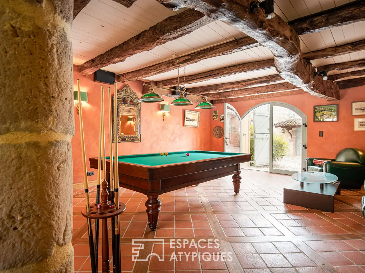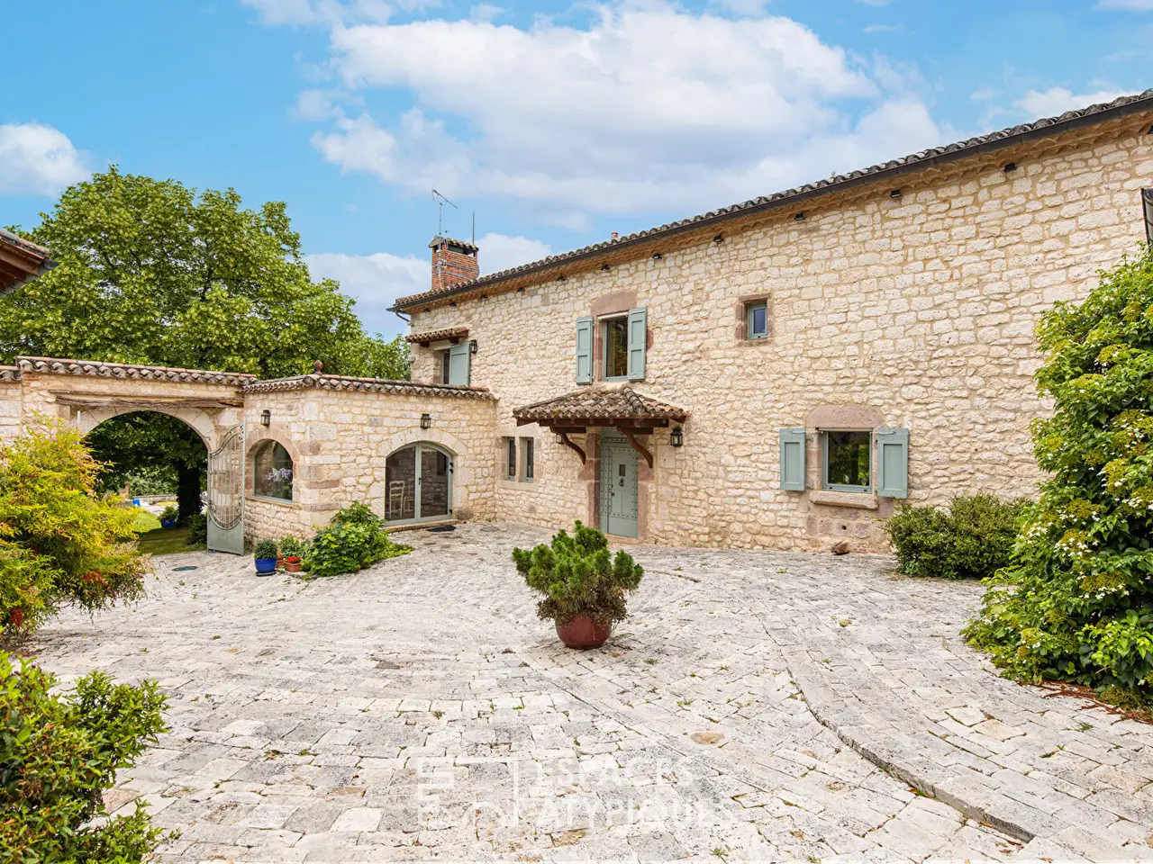 Magnificent estate located in the heart of a natural setting between Gaillac and Cordes-Sur-Ciel, offering perfect harmony between old charm and modern comfort. The estate is built around a courtyard paved with Lot stone, offering an authentic and welcoming atmosphere. It is divided into several dwellings and outbuildings. The main house of 220sqm on two levels, consists on the ground floor of a kitchen with period charm with open fireplace and exposed stonework, preserving the historic character of the place. Then comes a large living room with an imposing central fireplace and a Virac stone staircase, the real centerpiece of this space. The floor is split in two: on one side is the parental space with a bedroom, a dressing room and a bathroom. On the other side of this floor, two additional bedrooms with a connecting bathroom, one of which has access to a private terrace. Opposite the main residence is a second dwelling of more than 70 sqm, ideal for welcoming guests or for rental use. This house consists, on the first level, of a beautiful living room with a large fireplace, a separate kitchen, a bathroom and a bedroom. Upstairs, a large attic floor, where space has been created for two children's bedrooms, which also has a bathroom. Adjoining this home, a room of more than 60sqm on the ground floor, which could be suitable for a cinema room or a meeting room. Above the latter, there is a space of more than 70sqm, currently used as an office with a water point. Ideal for people developing their professional activity from home. Multiple outbuildings complete this exceptional place, such as a garage that can accommodate six cars, a veranda, with a room of 12sqm. The park is not to be outdone with more than five hectares, made up of orchards, truffle oaks, meadows and woods, as well as the swimming pool nestled in the heart of this bucolic environment. Many spaces can be reorganized according to your projects, whether it involves family reunion or the development of tourist activities. Cordes Sur Ciel: 14 min Gaillac: 20 min Toulouse: 50 min 12 x 6 swimming pool, salt, liner Underfloor heating, air/water heat pump radiator fireplace Double glazing electric shutter ENERGY CLASS: C / CLIMATE CLASS: A Estimated average amount of expenses annual energy costs for standard use, based on energy prices for the year 2021: between 1,910 euros and 2,650 euros REF. 6229 Additional information * 11 rooms * 7 bedrooms * 4 bathrooms * Outdoor space : 50000 SQM * Property tax : 2 146 €