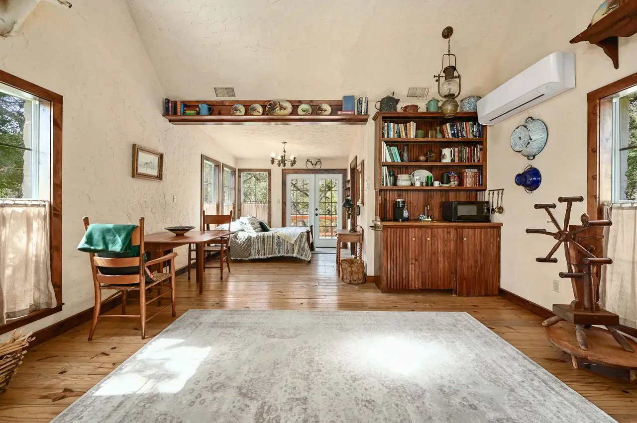 Rustic Residence on an Iconic Austin Street 2525 Pearce Road exudes rustic charm with a welcoming blend of warmth and character on a serene and shaded, 1.57-acre lot. The two-bedroom main house offers an inviting open-concept living space centered around a cozy fireplace, perfect for gathering with family and friends. Two dining areas provide flexibility for both intimate meals and entertaining, while the one-bedroom guest casita offers a private retreat for visitors outfitted with a flexible living space and private deck. The primary suite extends the home's connection to nature with an additional private deck, ideal for sipping morning coffee or unwinding with an evening cocktail. The true highlight of this property lies in its outdoor amenities, designed for simple relaxation and enjoyment. The gently sloped and private yard sets the stage for a resort-like experience with a pool and spa, surrounded by mature trees that provide natural shade and tranquility. A stone courtyard with an outdoor fireplace invites cozy evenings under the stars, perfect for making s’mores and lasting memories. Completing the property is a convenient 2-car attached garage, ensuring both practicality and comfort in this charming retreat on a iconic street in Austin.