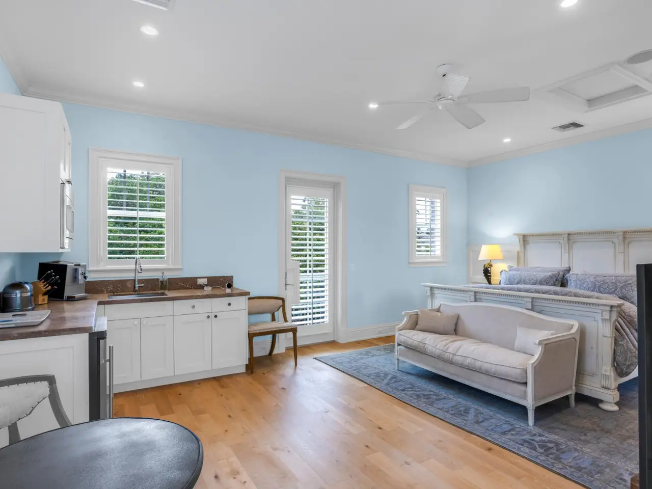 Brand-New island-inspired gem in an exclusive 4-estate enclave offering a wonderful lifestyle, only a block from both the ocean and Atlantic Avenue. Casual elegance pairs with master craftsmanship in the collaboration of GE Architecture and Seaside Builders. The atmosphere is fresh, light and inviting with crisp white millwork set off by the natural beauty of American oak floors. Spacious open great room. Romantic peaked-ceiling master suite. Separate guest apartment. Lushly landscaped pool patio