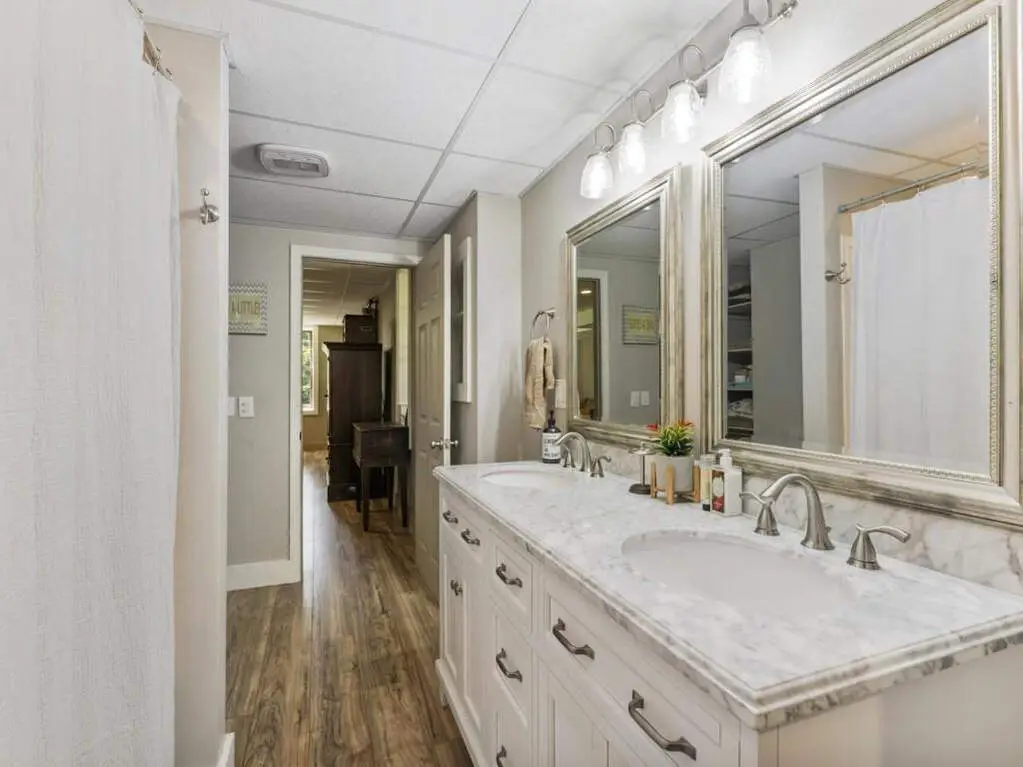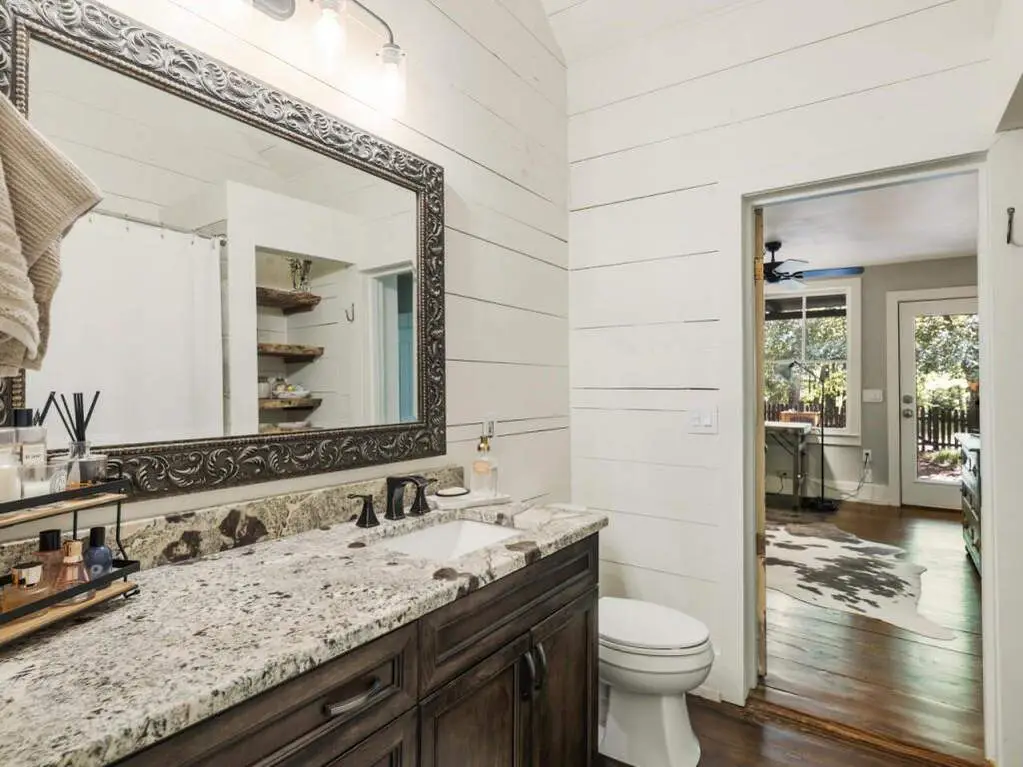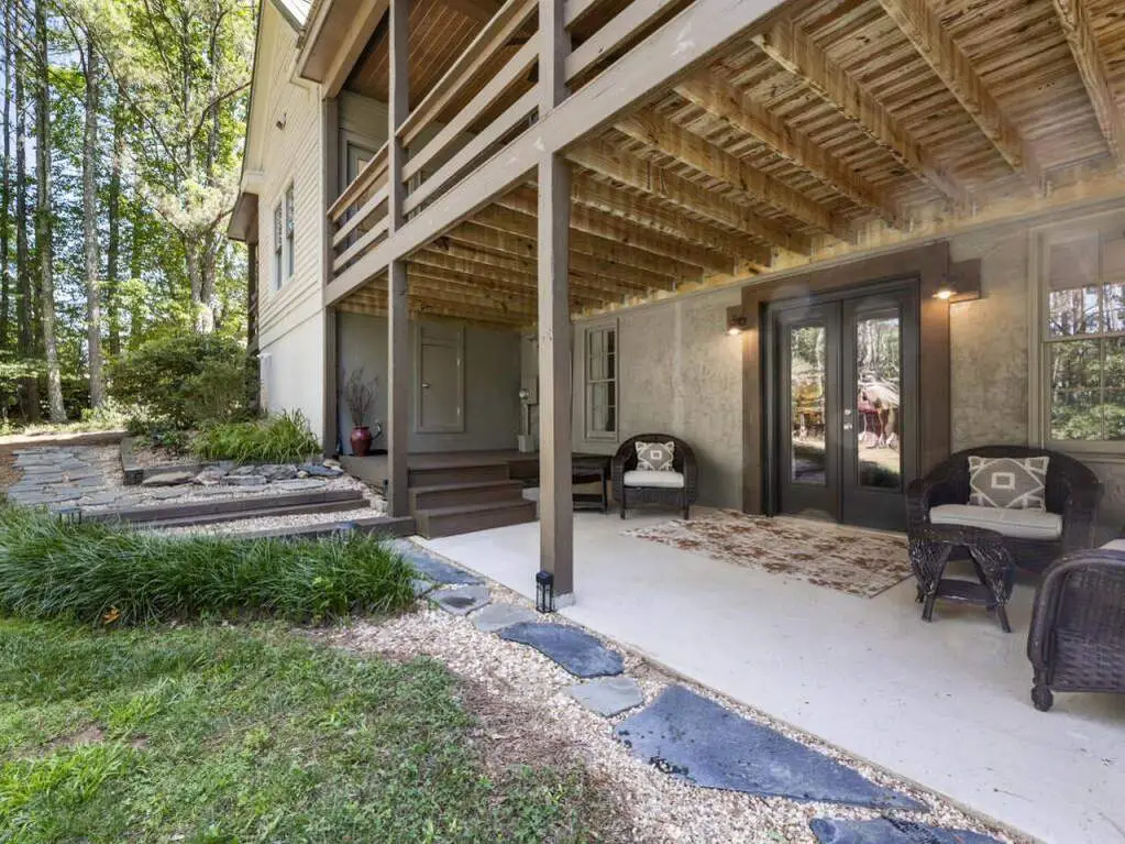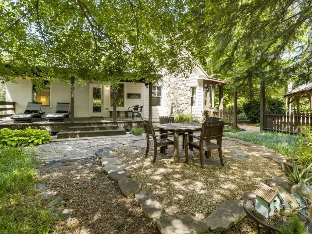 Perfectly situated a sprawling and private 3.36+/- acres, this special home is true to Milton's equestrian heritage and its 1880's character, but has been thoughtfully renovated and completely updated to cater to the needs of modern living. The private approach via the newly paved wrap-around driveway leads you to a peaceful and idyllic setting amongst landscaped and maintained grounds. The large covered front porch is just one of several outdoor spaces you can enjoy for coffee, cocktails, gathering and entertaining, or to simply relax and soak up the beautiful surroundings. A secret garden, patio and outdoor dining space off the front porch serves as an additional private outdoor retreat. Upon entering the double set of front doors, character abounds in the completely updated space. The interior is beautifully appointed with expansive 10+ foot ceilings, original shiplap, original pine floors, an original fireplace gracing the living room, and custom built-ins. The open kitchen boasts an oversized eat-in island with a large farmhouse sink, custom floor-to-ceiling cabinetry, and Thermador range and range hood. A spacious breakfast area off the kitchen is warm and welcoming for everyday dining. From the kitchen you can access several more outdoor spaces, including a covered deck and a separate patio that serves as a grilling area. The primary suite has been entirely reconfigured with a walk-in closet and true ensuite bathroom with dual vanities and luxurious frameless shower. An additional two bedrooms, full bathroom and laundry room complete the main level. The terrace level has been finished with an entire additional living space, complete with a bedroom, full bathroom, kitchen, and laundry room. The terrace level also boasts direct access to the outdoors with yet another covered patio space to enjoy. Outside, you will find two storage shed/workshop spaces and two-car portico amongst plenty of space for a hobby farm if desired. Don't miss the chance to enjoy the idy