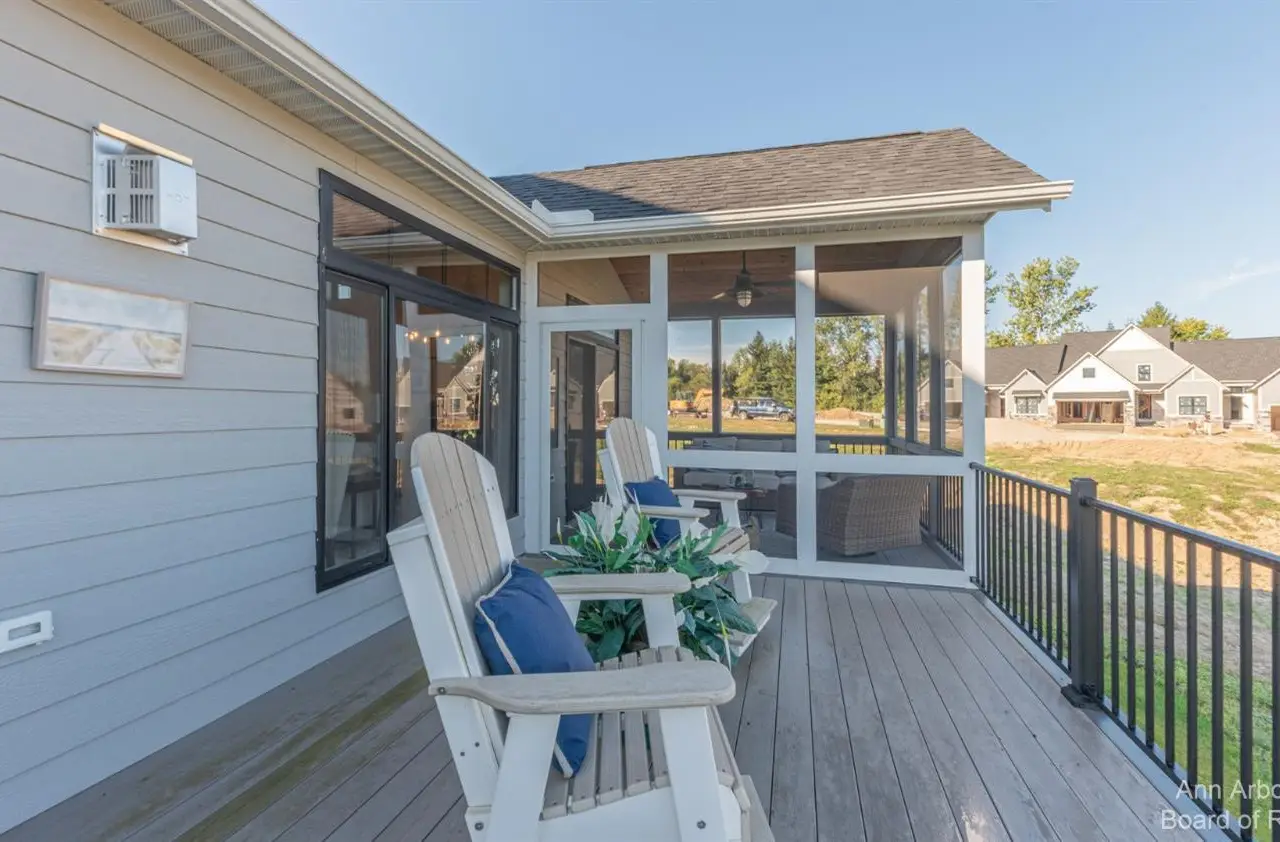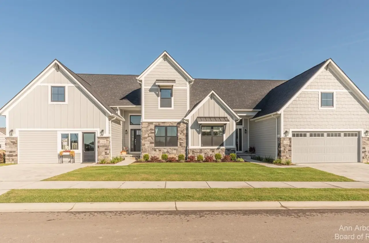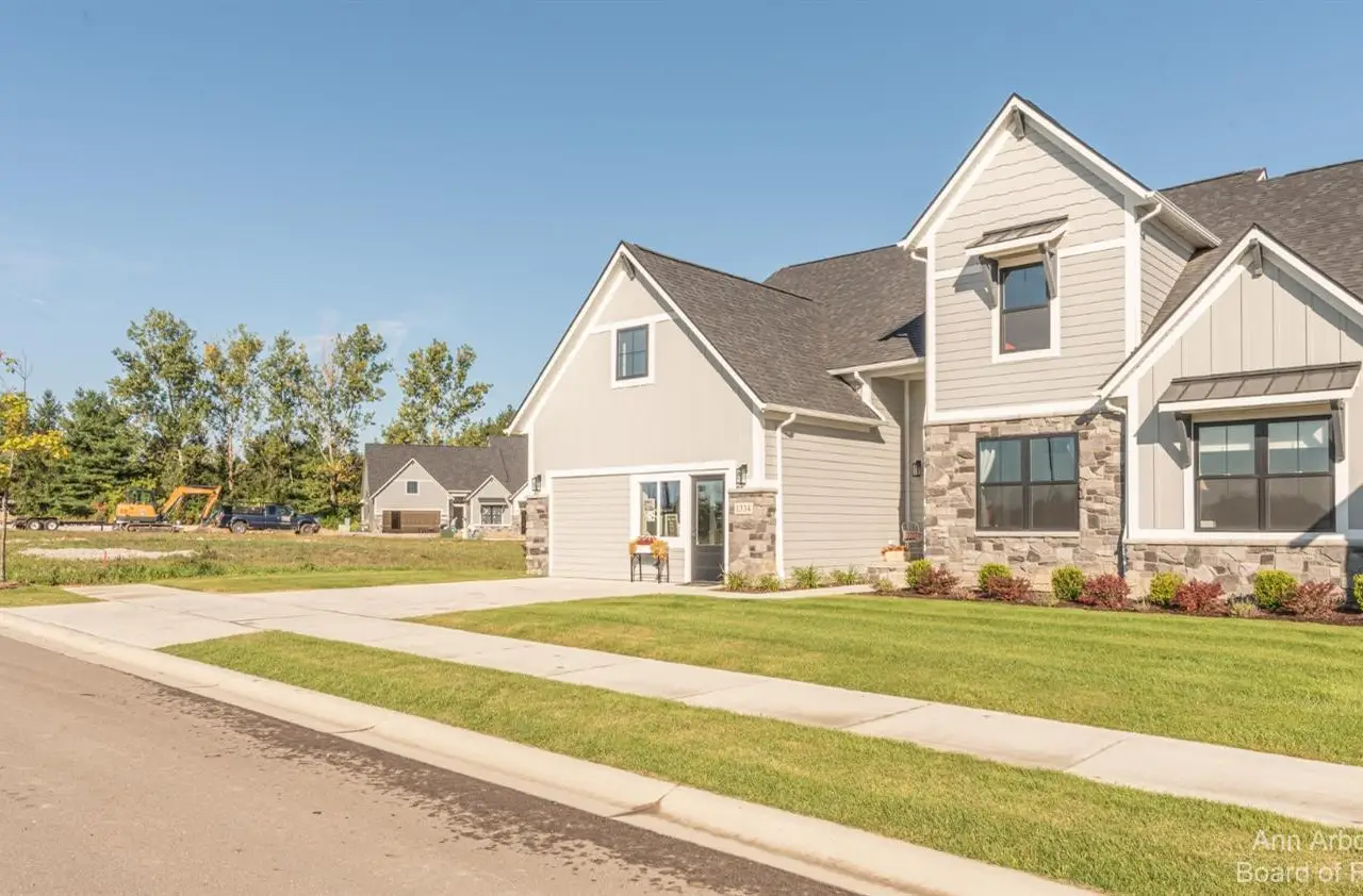 There is still time to customize this gorgeous Belford model on one of the neighborhood's premium walkout sites looking out to nature, grassy meadows, and a stream! This luxurious 4 Bed/3 1/2 bath condominium has a bright and open floor plan to include a gourmet kitchen with Kraftmaid cabinetry, a large pantry, and a huge 9.9'x3.4' center island overlooking the showstopping great room with vaulted ceiling, walls of windows, a gas fireplace, and a door off of the dining area leading out to the screened Azek deck with infrared heating and an 12x12 Azek deck--beautiful! The 1st floor primary bedroom suite has a private bathroom with granite countertops, dual sinks, a linen closet, a walk in closet, and a spa sized fully tiled shower with bench and glass Euro door. Additional main floor features include a half bath with pedestal sink, a laundry room with sink and tile flooring, a bench off of the family entry from the attached 2 car garage, and a nicely sized study/flex room. Upstairs you a greeted with a loft looking down to the great room, two additional bedrooms, a full bathroom with bath/tub combo and tile flooring, and a media room. The finished walkout lower level (657 sq.ft. is still unfinished for incredible storage space) has a recreation room with impressive kitchenette with an island--great for entertaining, the 4th bedroom, and a full bathroom with tile flooring and shower. Gallery Pointe is a community like none other...luxurious, fully customized (no two homes are alike on the inside), each building has a unique color with special touches to it's design, and the location can't be beat--close to both Downtown Saline and Ann Arbor but with low township taxes. Walk to school or bike over to the Border to Border Trail which is nearby. Sidewalks, streetlights, and even a charming raised garden bed and dog play areas that are fully fenced.