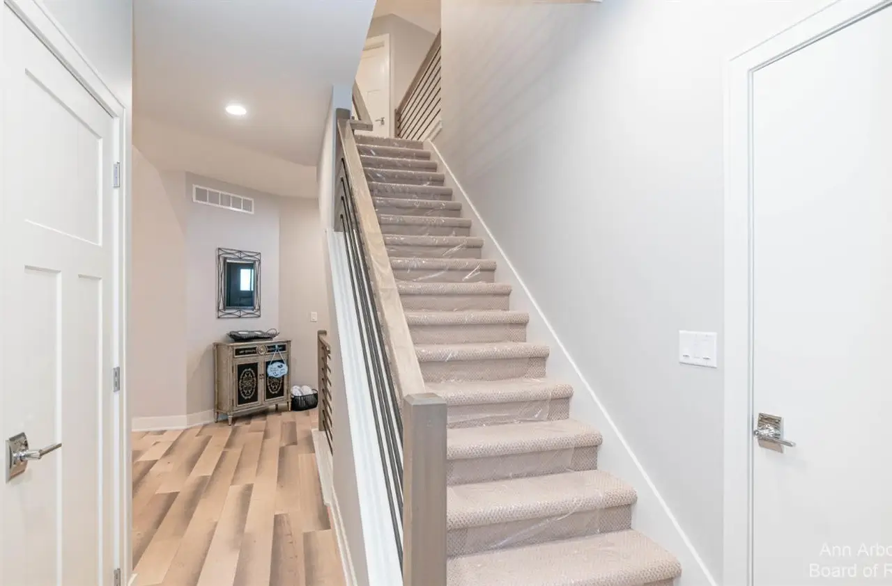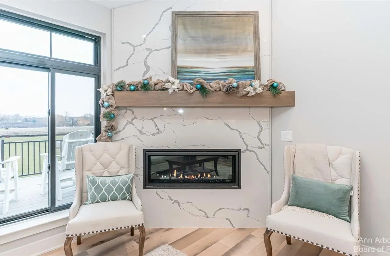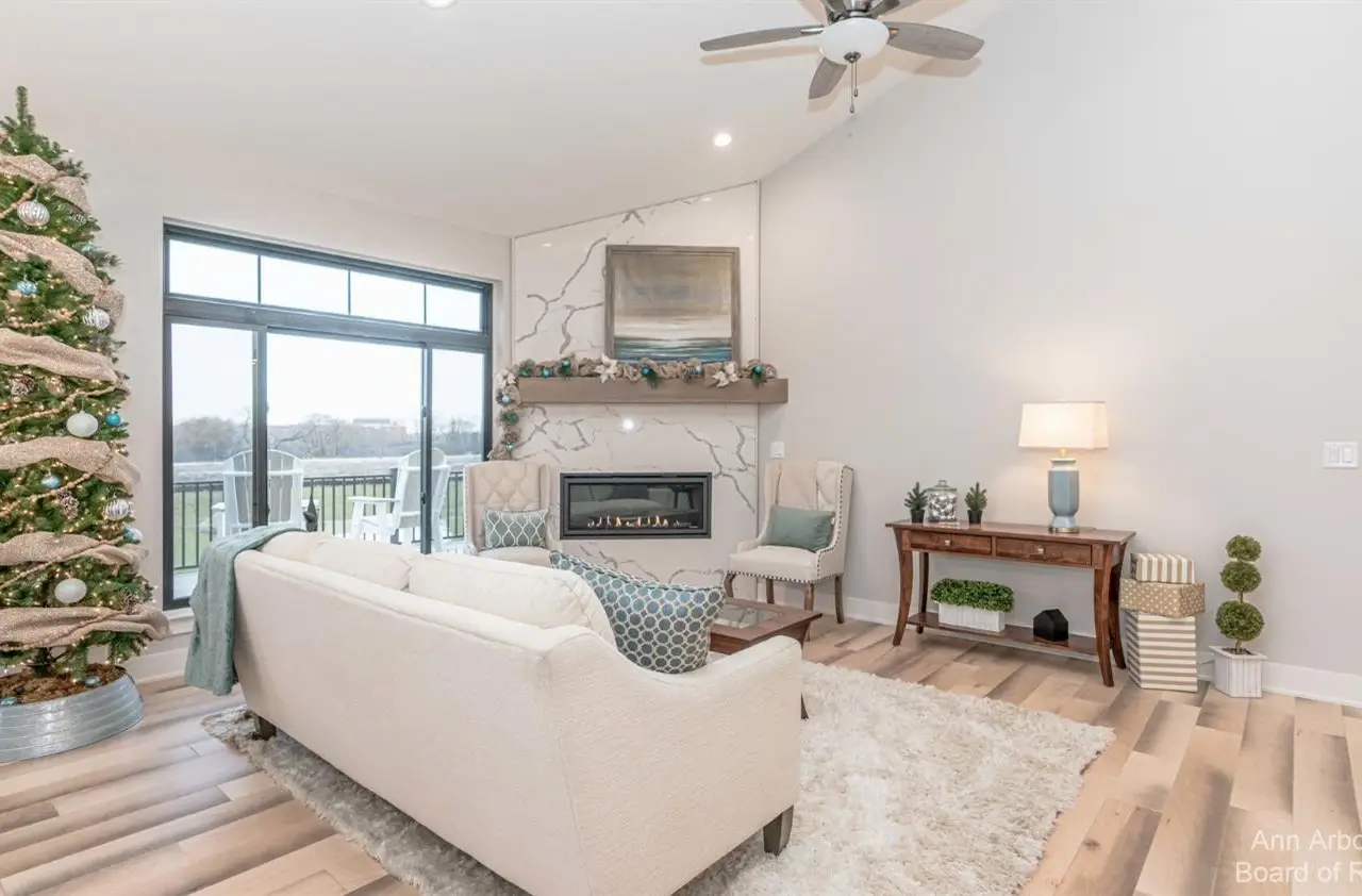 There is still time to customize this gorgeous Belford model on one of the neighborhood's premium walkout sites looking out to nature, grassy meadows, and a stream! This luxurious 4 Bed/3 1/2 bath condominium has a bright and open floor plan to include a gourmet kitchen with Kraftmaid cabinetry, a large pantry, and a huge 9.9'x3.4' center island overlooking the showstopping great room with vaulted ceiling, walls of windows, a gas fireplace, and a door off of the dining area leading out to the screened Azek deck with infrared heating and an 12x12 Azek deck--beautiful! The 1st floor primary bedroom suite has a private bathroom with granite countertops, dual sinks, a linen closet, a walk in closet, and a spa sized fully tiled shower with bench and glass Euro door. Additional main floor features include a half bath with pedestal sink, a laundry room with sink and tile flooring, a bench off of the family entry from the attached 2 car garage, and a nicely sized study/flex room. Upstairs you a greeted with a loft looking down to the great room, two additional bedrooms, a full bathroom with bath/tub combo and tile flooring, and a media room. The finished walkout lower level (657 sq.ft. is still unfinished for incredible storage space) has a recreation room with impressive kitchenette with an island--great for entertaining, the 4th bedroom, and a full bathroom with tile flooring and shower. Gallery Pointe is a community like none other...luxurious, fully customized (no two homes are alike on the inside), each building has a unique color with special touches to it's design, and the location can't be beat--close to both Downtown Saline and Ann Arbor but with low township taxes. Walk to school or bike over to the Border to Border Trail which is nearby. Sidewalks, streetlights, and even a charming raised garden bed and dog play areas that are fully fenced.